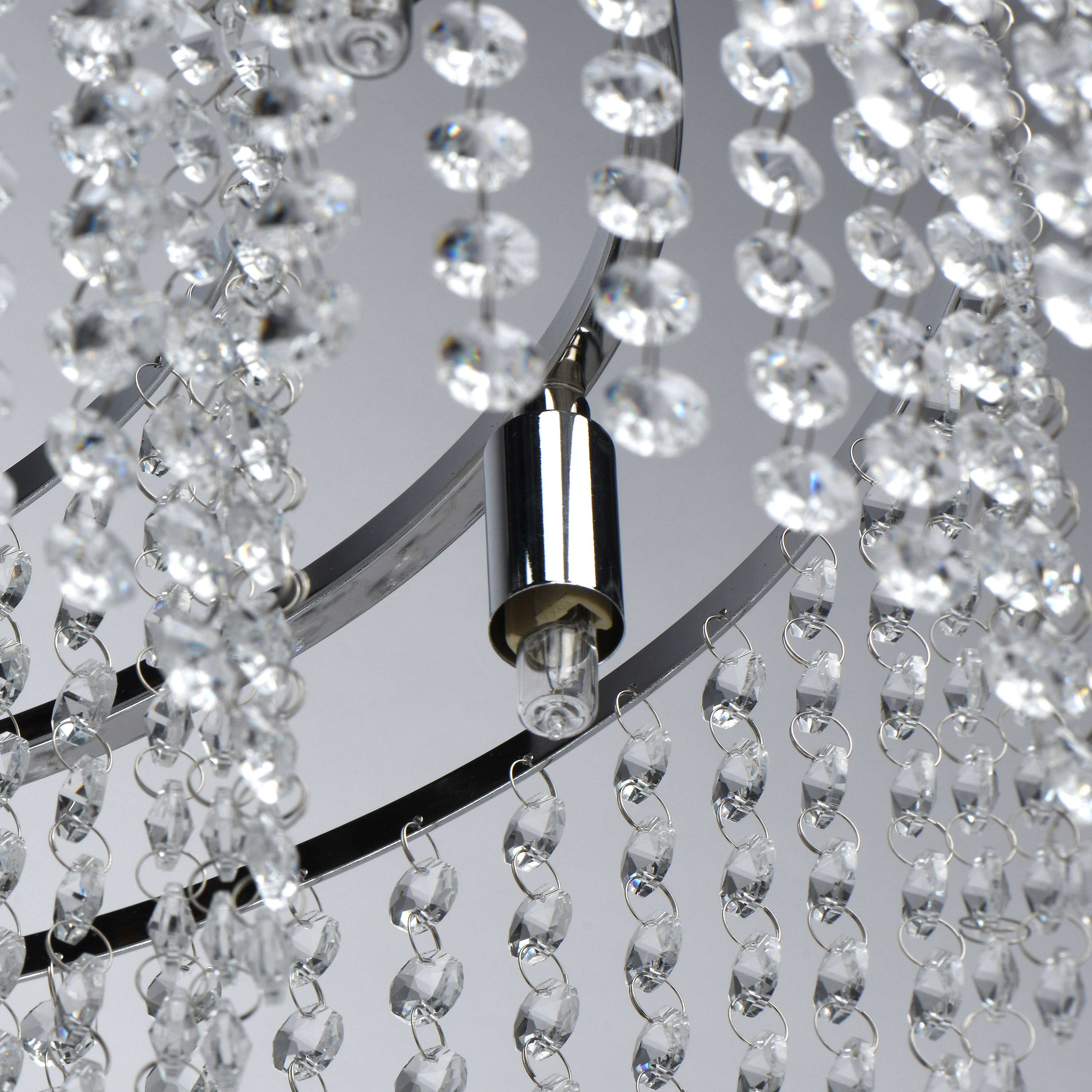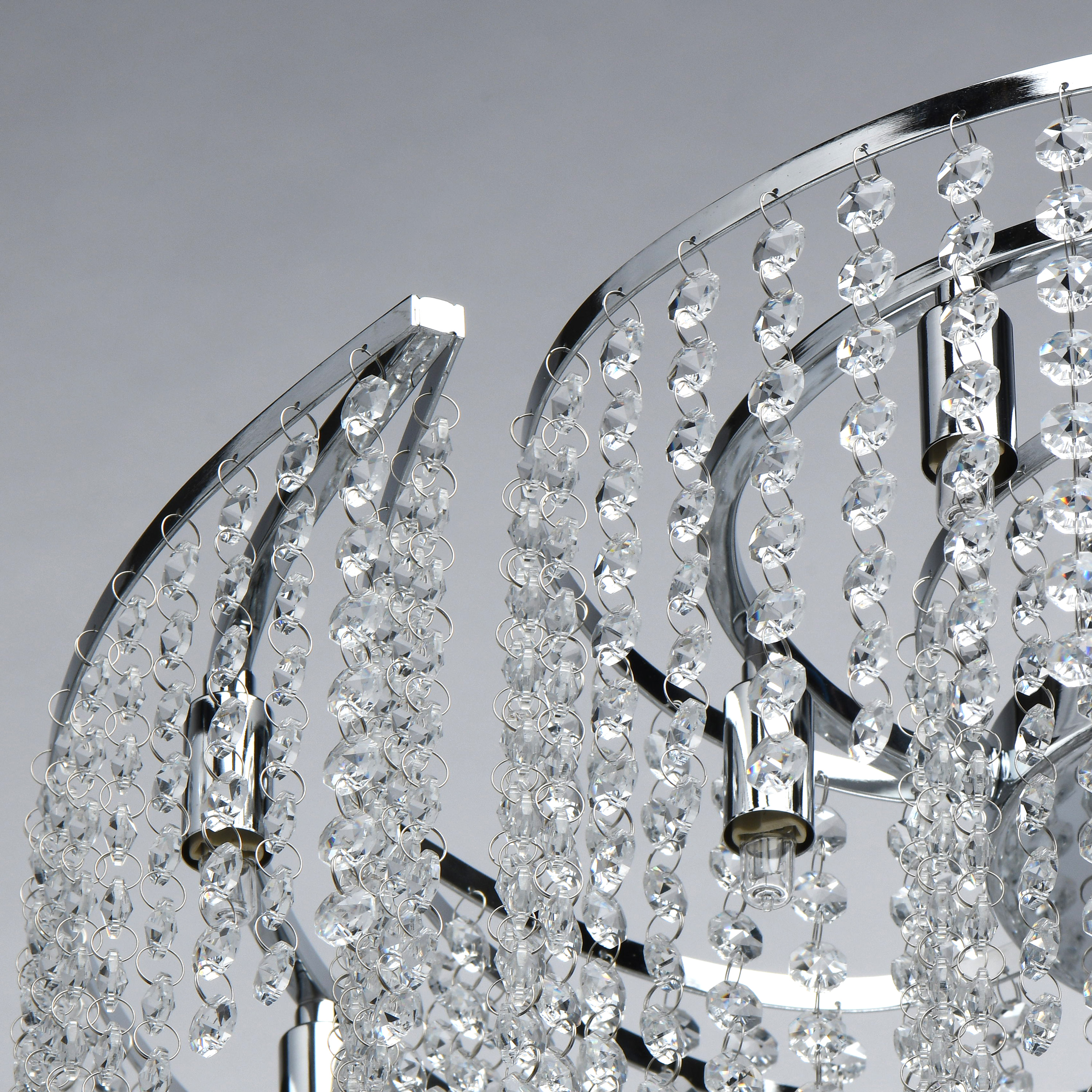 Трендовый дизайн люстры с богатым декором добавляет шика в интерьер. Компактная высота светильника идеальна для стандартной высоты потолка. Хрустальный декор искусно декорирует источники света и создает эффектные узоры на стенах. Различные варианты цветового решения облегчают выбор.Стилевые решения интерьера