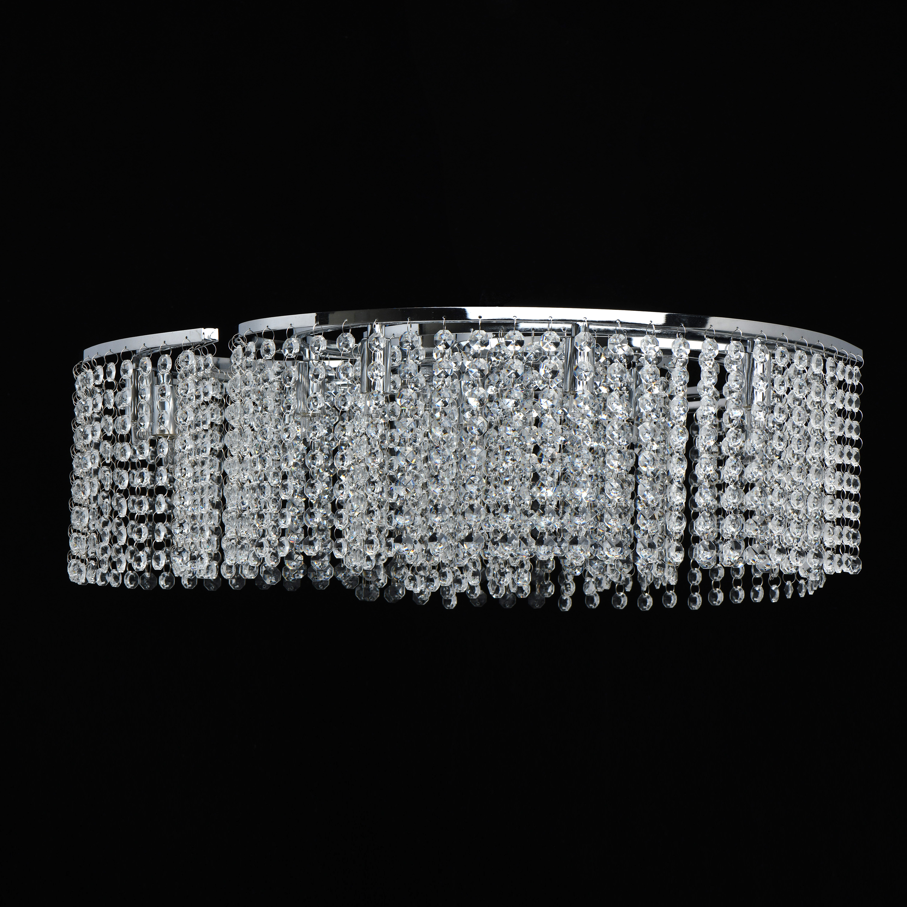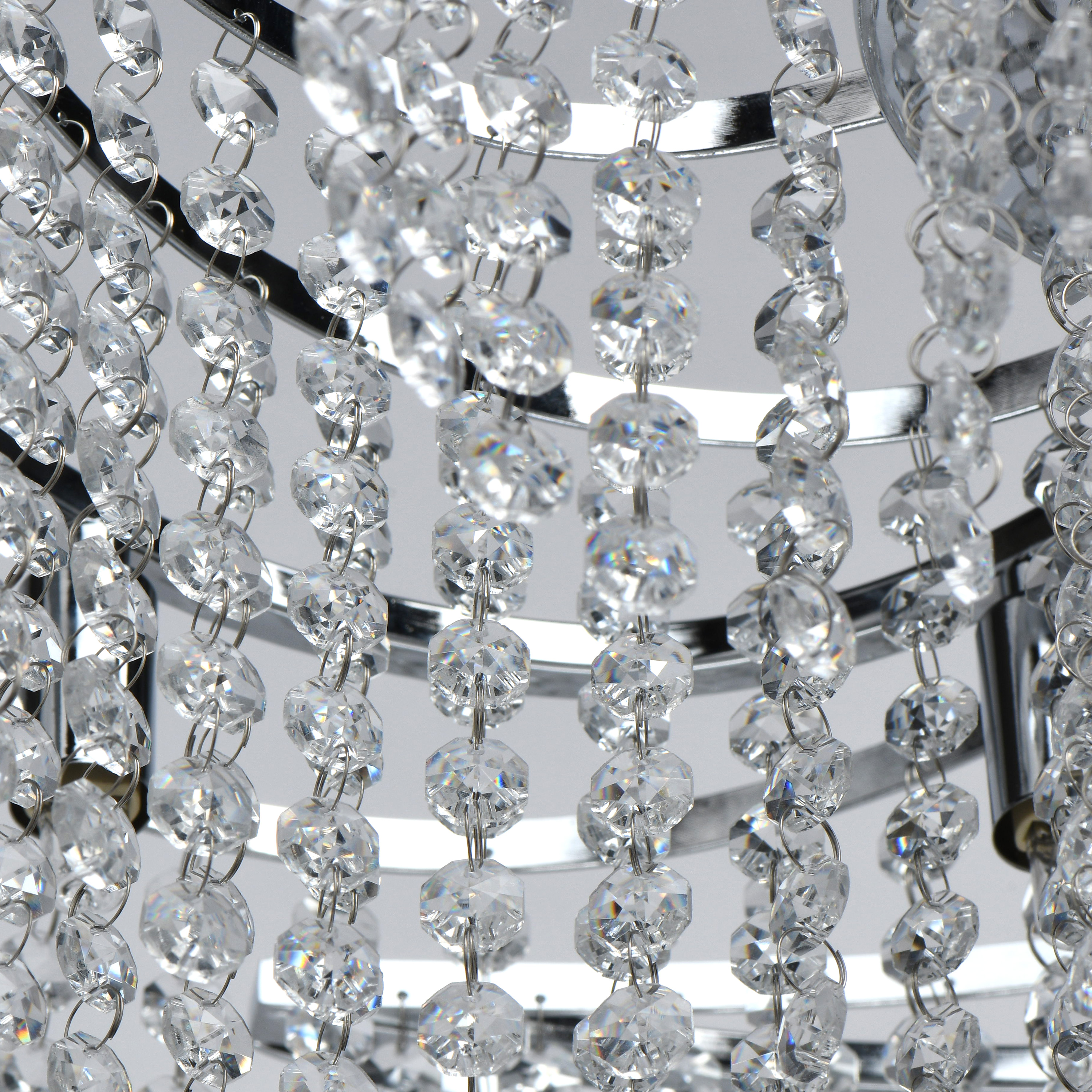 Основание светильника выполнено из металла и гальванизировано в цвет хрома. Светильник декорирован прозрачным хрусталем формы октагон.Тип помещения