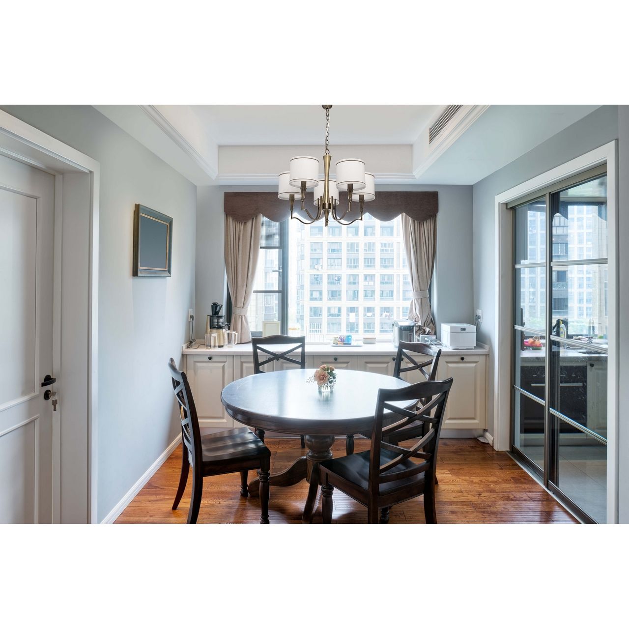 Люстра выполнена в современном классическом стиле. Основание бронзового цвета и тканевые абажуры универсального сливочного оттенка позволяют разместить люстру в интерьер, выполненный в любой цветовой гамме. 2 варианта использования люстры : без абажуров и с ними, дает возможность создавать как яркое освещение так и мягкое рассеяное. Большая семья дает возможность освещать смежные помещения в односм стиле.Стилевые решения интерьера