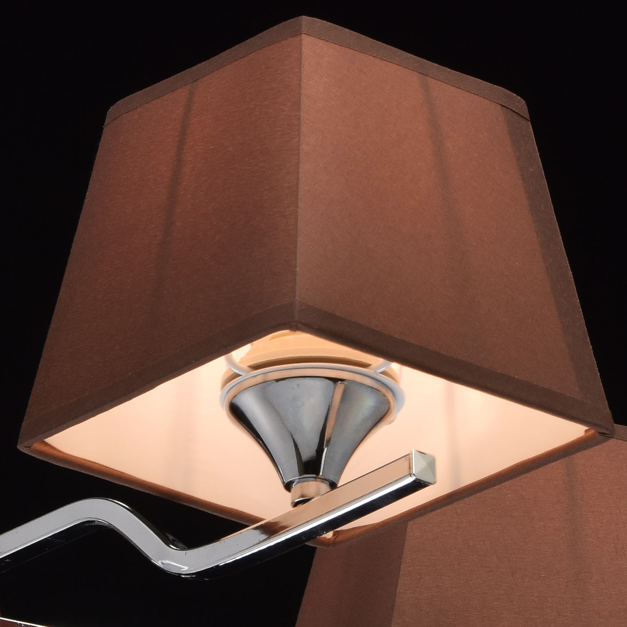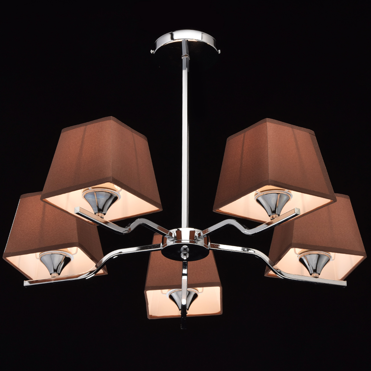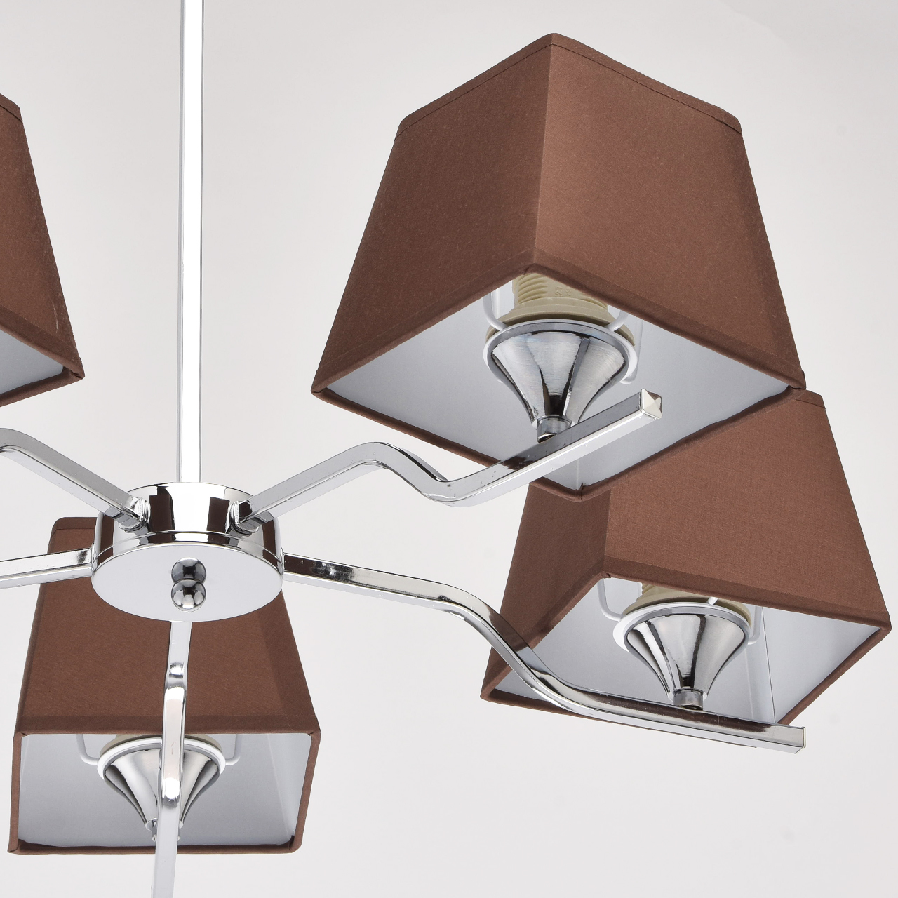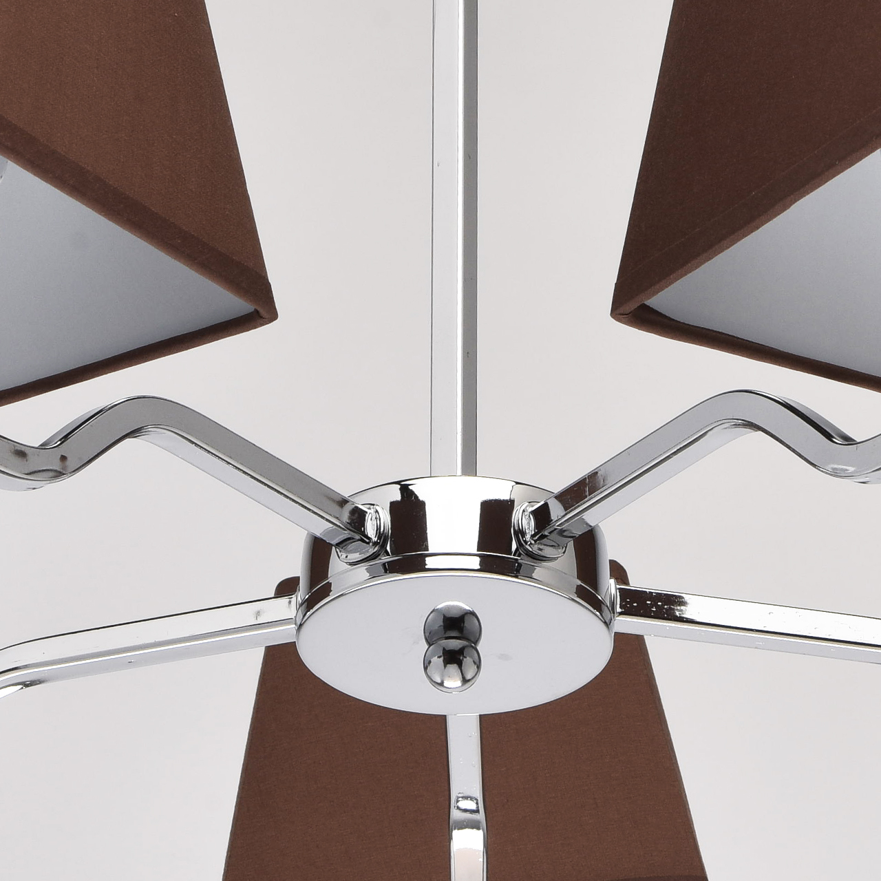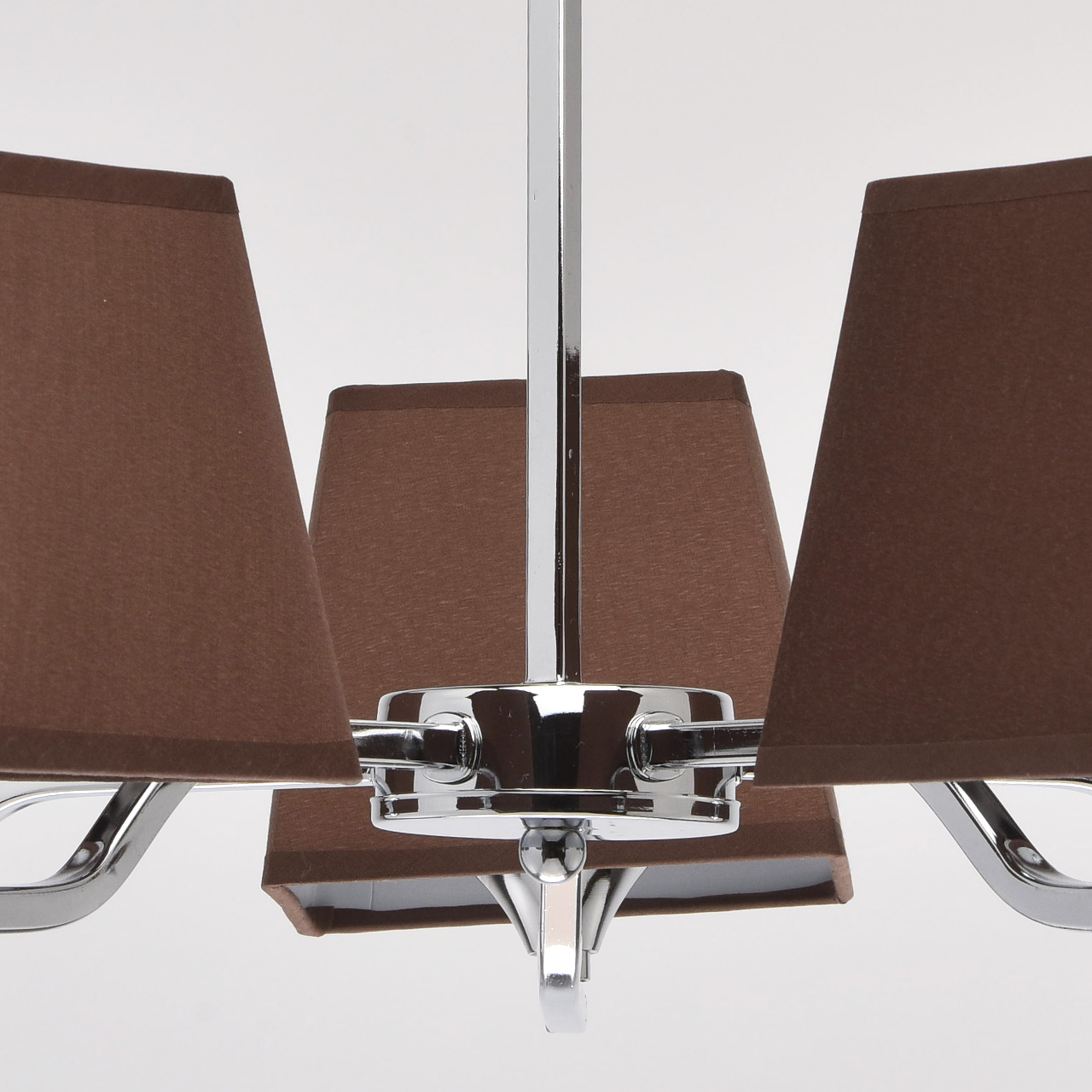 Стиль, красота и элегантность отличают этот необычный светильник из коллекции «Конрад». Строгое металлическое основание цвета хрома дополнено оригинальными тканевыми абажурами. Их нестандартная форма и насыщенный темно-коричневый оттенок делают люстру по-настоящему эффектной, достойной украсить стильный современный интерьер.Преимущества модели