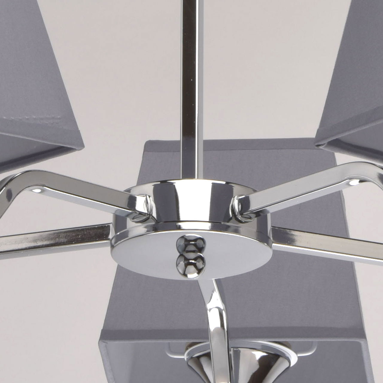 Стиль, красота и элегантность отличают этот необычный светильник из коллекции «Конрад». Строгое металлическое основание цвета хрома дополнено оригинальными тканевыми абажурами. Их нестандартная форма и насыщенный графитовый оттенок делают люстру по-настоящему эффектной, достойной украсить стильный современный интерьер.Преимущества модели