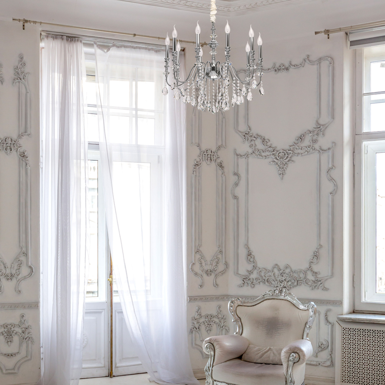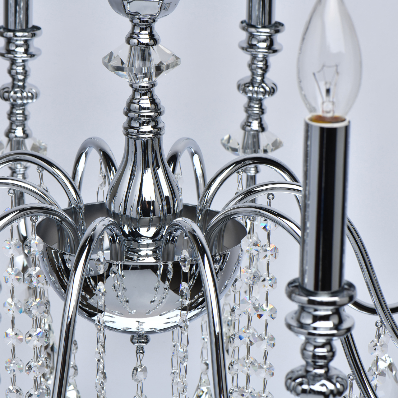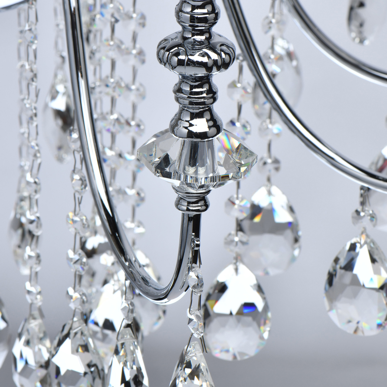 Основание светильника выполнено из металла и гальванизировано в цвет хрома. Светильник декорирован прозрачным хрусталем.Тип помещения