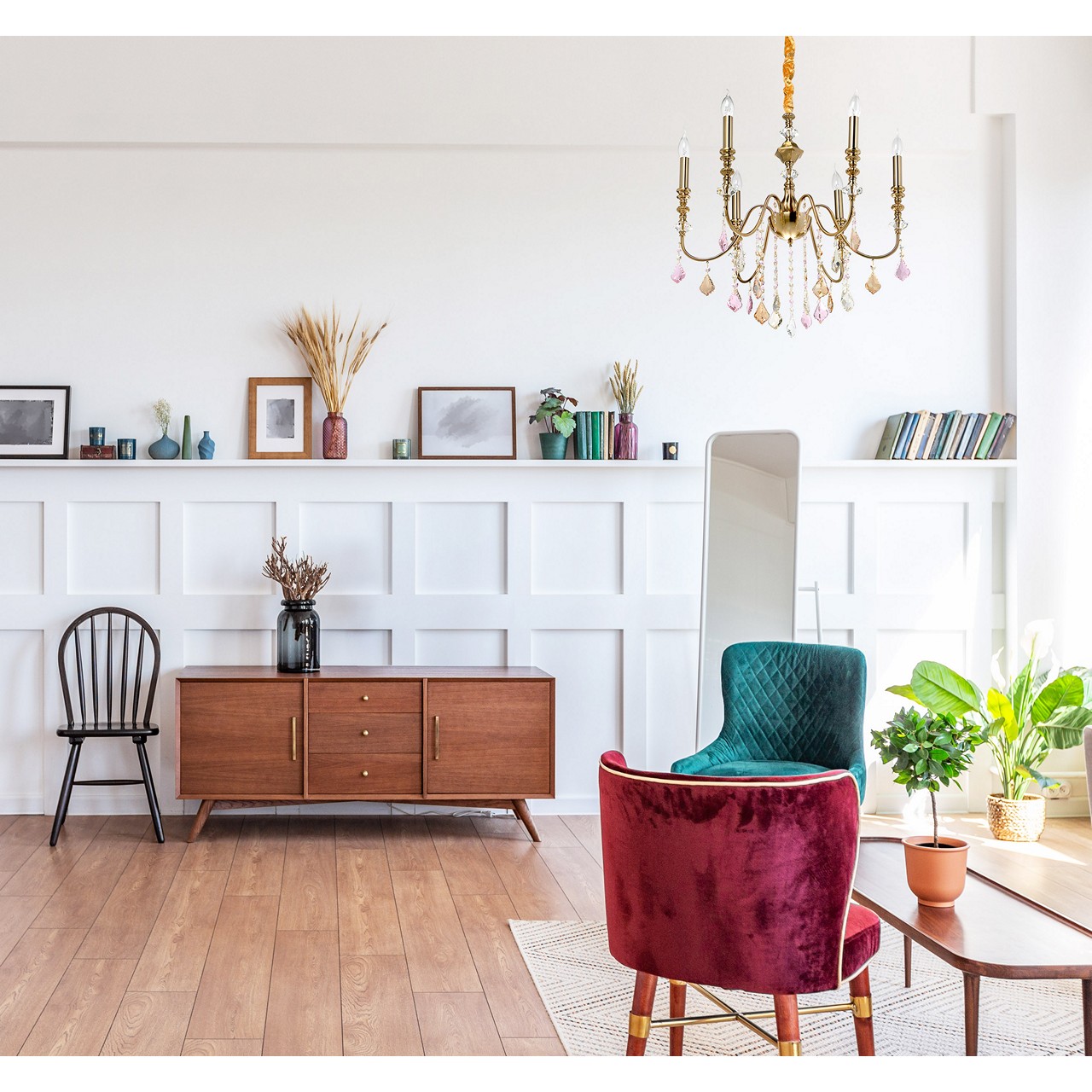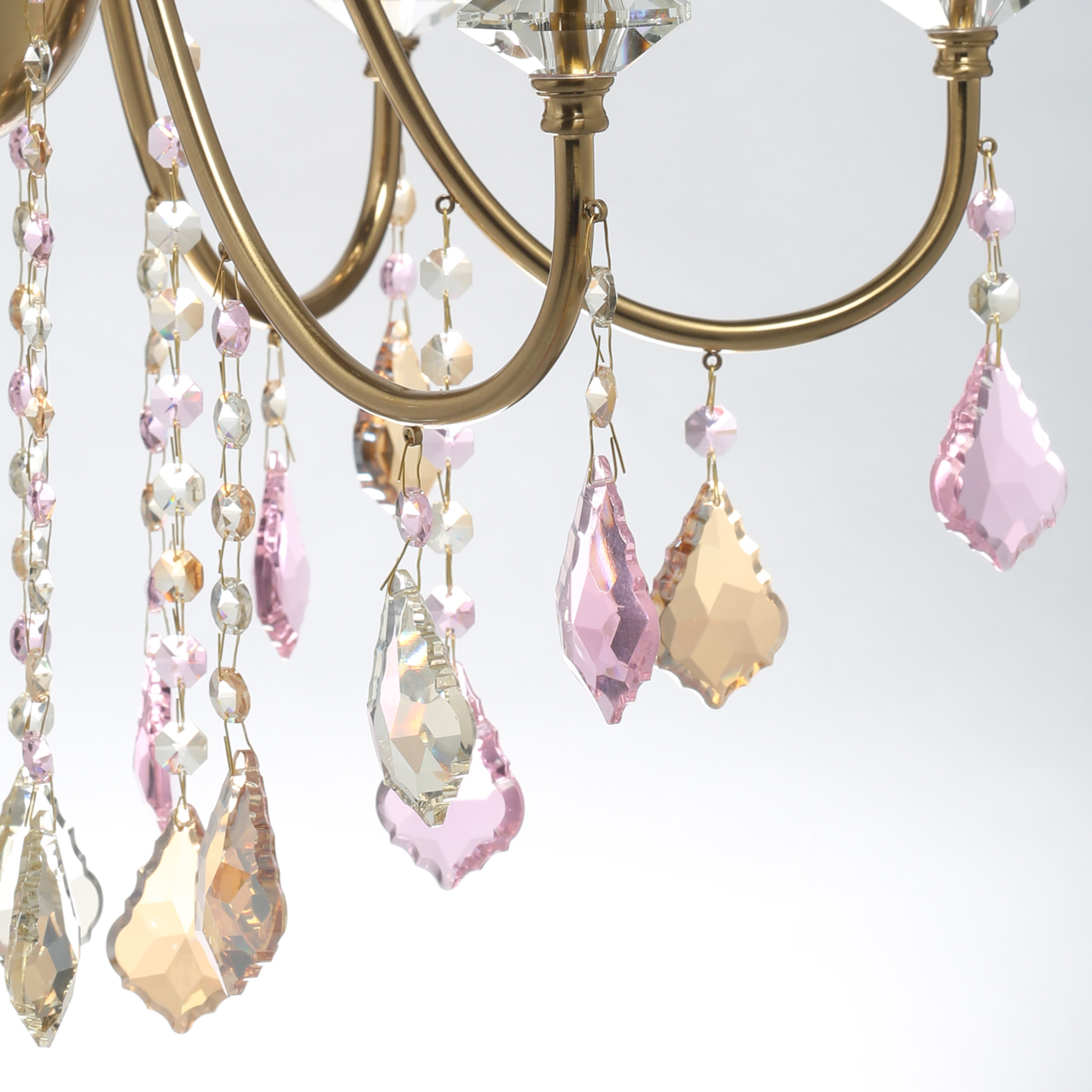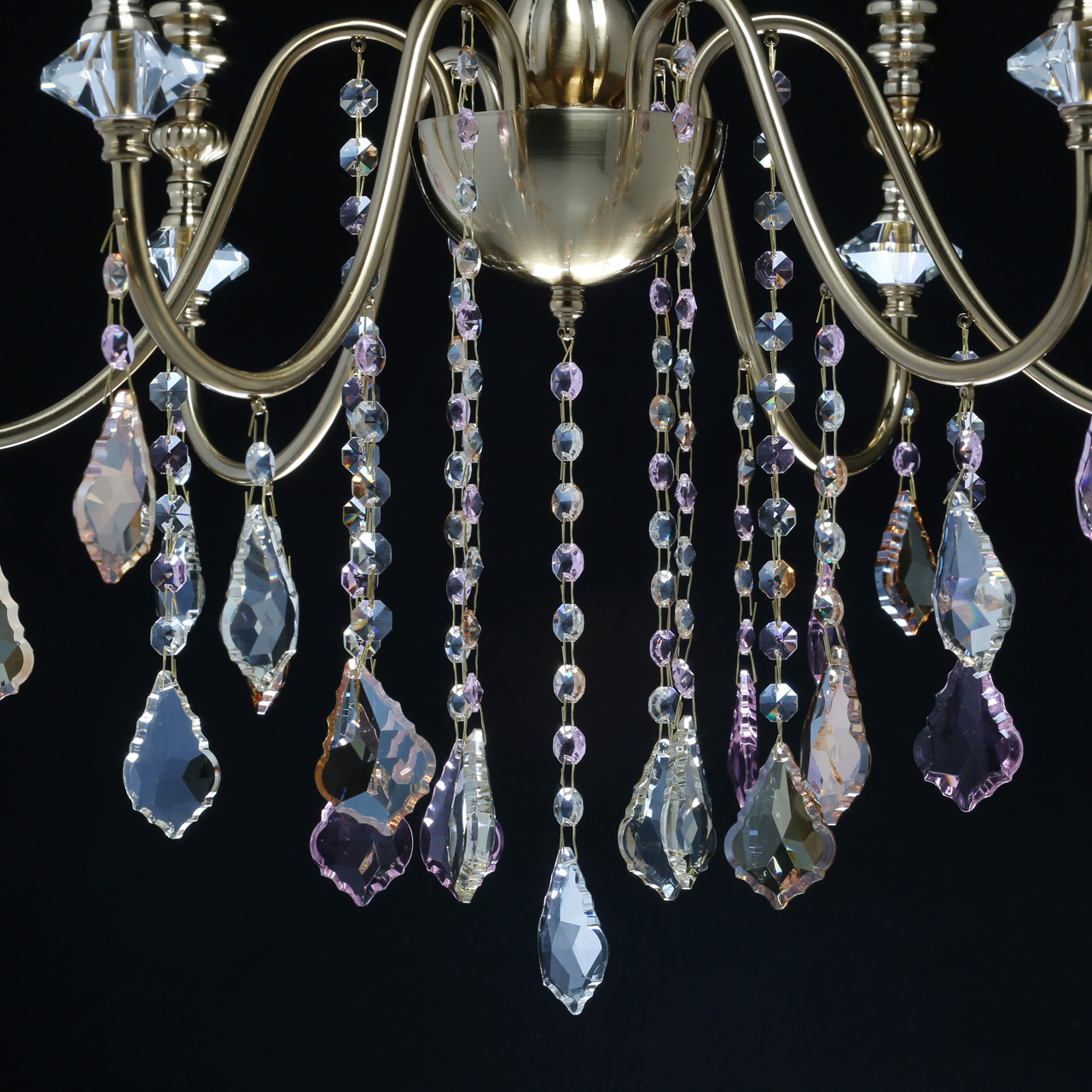 Актуальный стиль ар-деко в цвете бронзы. Хрустальный декор двух цветов добавляет ценности светильнику. Регулируемая высота светильника за счет звеньев цепи. Полная семья из бра и подвесов на 6 и 10 рожков.Стилевые решения интерьера