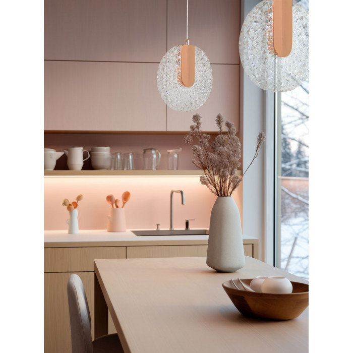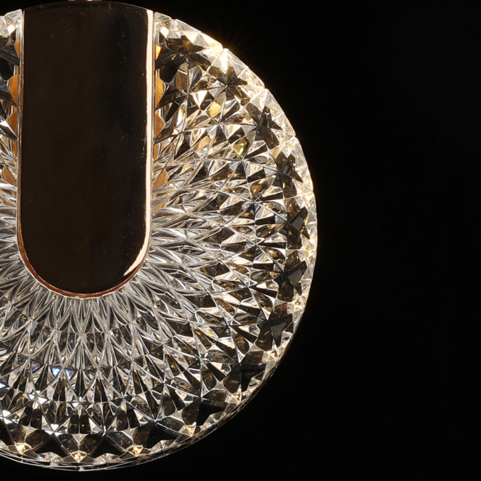 Цвет золота придает подвесу изысканности. Необычное сочетание современного стиля, классического цвета и инновационных светодиодов привлекает внимание к подвесу и создает единый образ. Свет красиво преломляется в фактурном акриле. Возможность регулировать комфортную высоту. Светодиодные источники света безопасны и экономичны.Металлическая потолочная чаша подвеса гальванизирована в цвет французского золота. Корпус плафона в виде пластины выполнен из сплава алюминия с цинком и гальванизирован в цвет основания. Светодиодный источник света закрыт прозрачным фактурным акрилом.