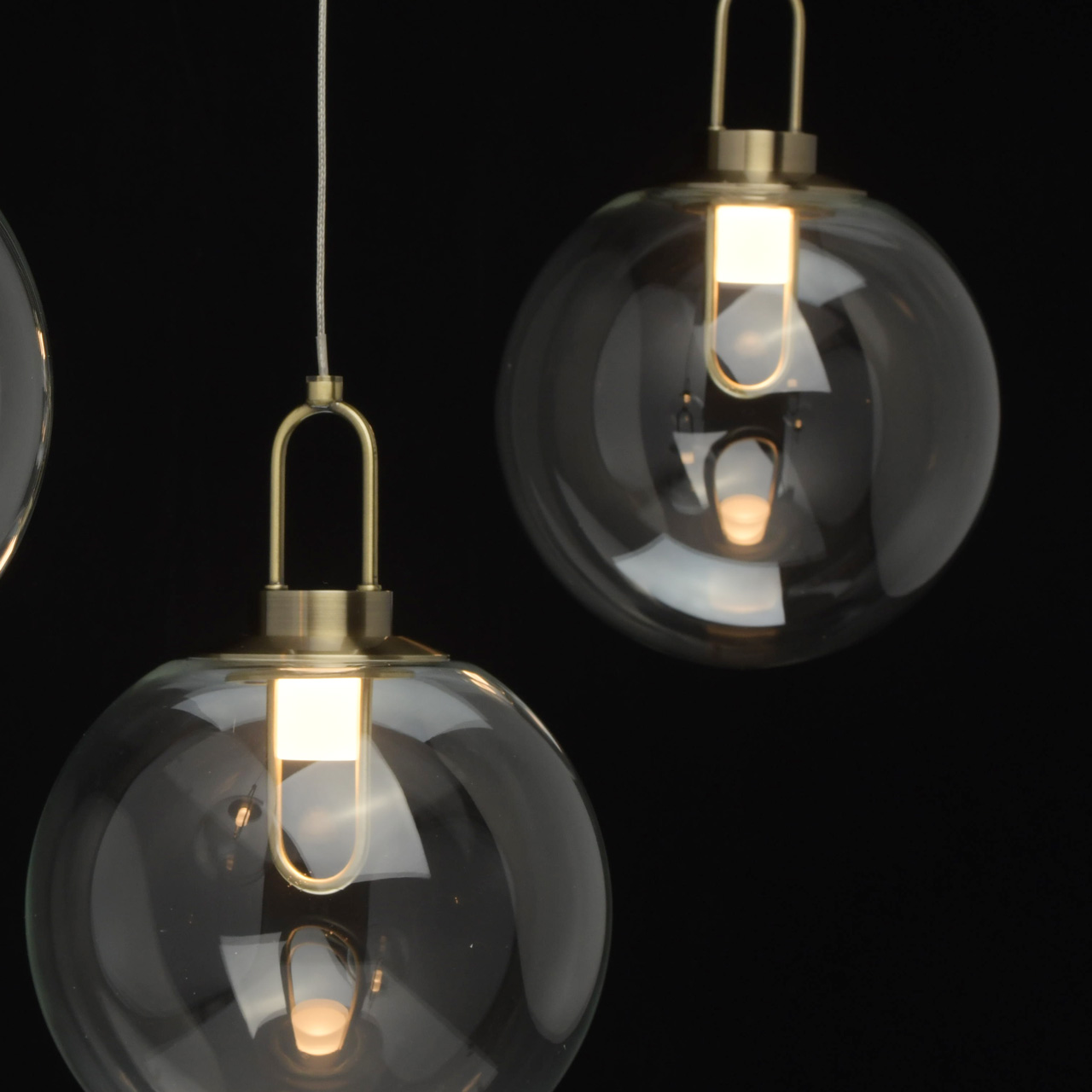Светильник выполнен в современном минималистичном стиле. Основание цвета античной бронзы и прозрачные стекляные плафоны позволяют светильнику встроиться в интерьеры, выполненные в разных стилях. Тросы дают возможность регулировать положение светильников по отношению к потолку. Светильник оснащен долговечными и экономичными в использовании светодиодами. Идеальный вариант для зонального освещения обеденной зоны. Широкая семья дает возможность комплексно осветить помещение.Стилевые решения интерьера