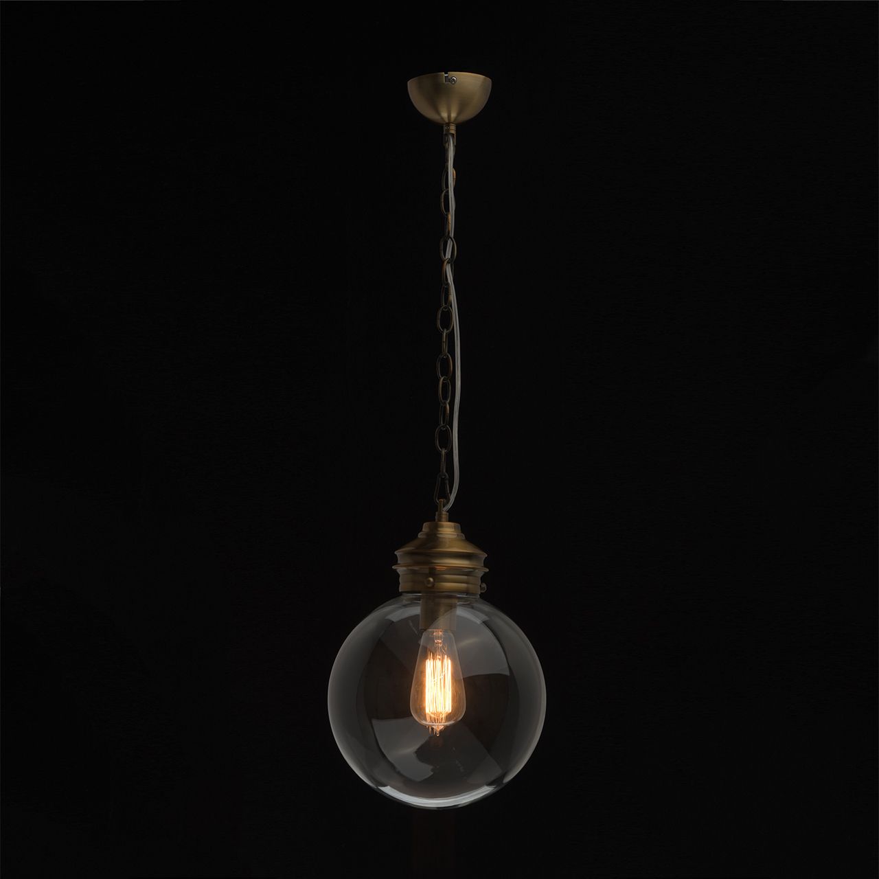 Основание выполнено из металла, гальванизировано в цвет античной бронзы, патинировано, лакировано. Плафон: прозрачное стекло отлитое в форму шара.Тип помещения