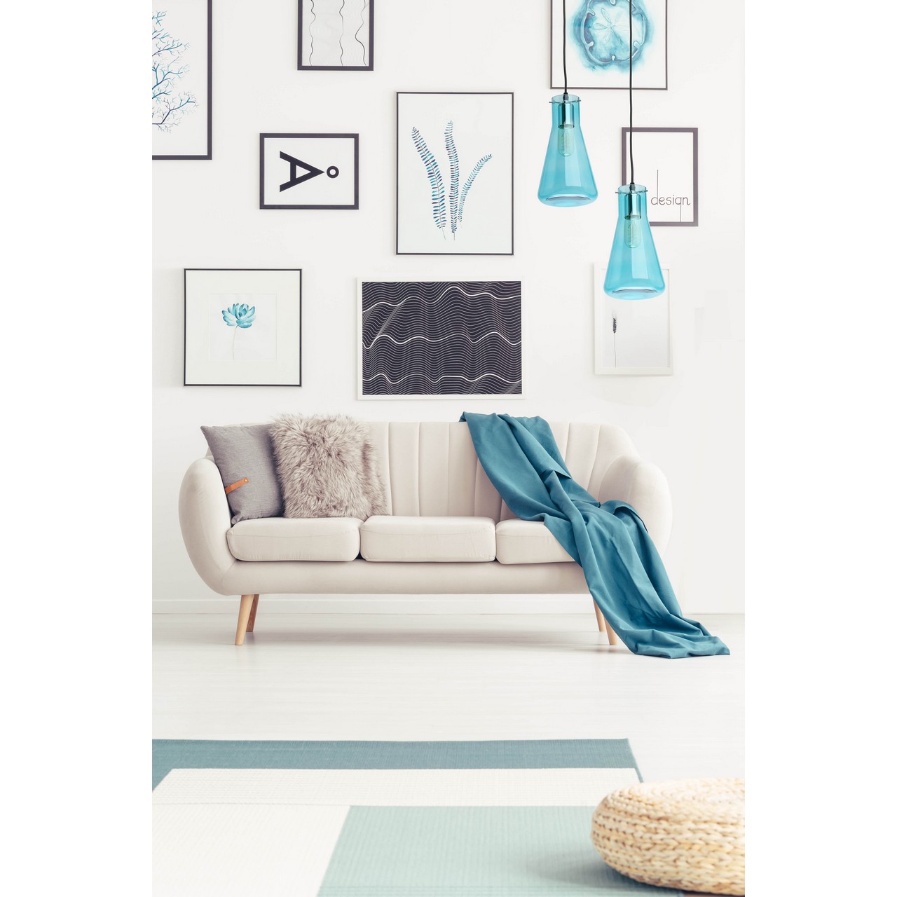 Стильный светильник прекрасно подойдет для зональной подсветки современного интерьера. Основание из металла выполнено в нейтральном чёрном тоне, благодаря чему очень гармонично сочетается с яркими стеклянными плафонами оригинальной формы. Они представлены в трендовом голубом и зеленом цвете – сочные тона отлично освежат и разнообразят обстановку.Преимущества модели