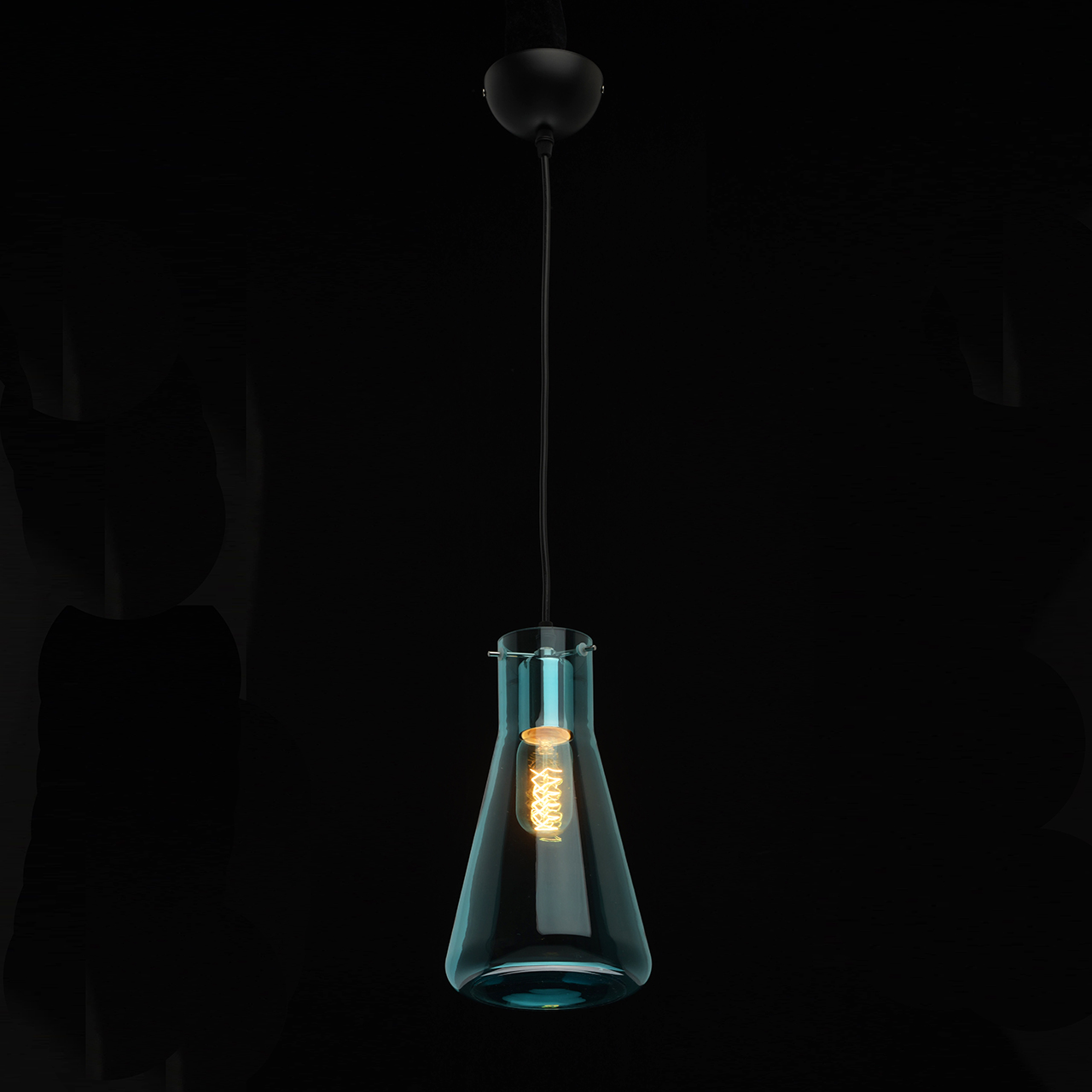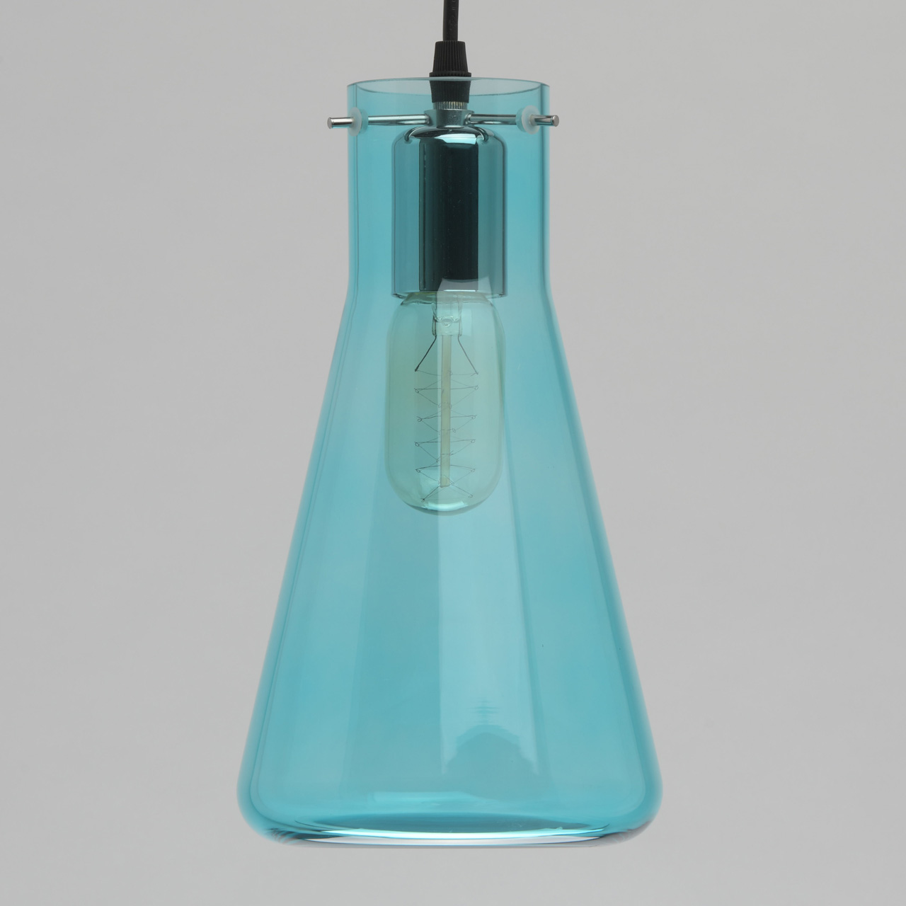 Основание светильника выполнено из металла и окрашено в черный цвет. Плафон выполнен из стекла, отлитого в форму и окрашенного в массе в голубой цвет.Тип помещения