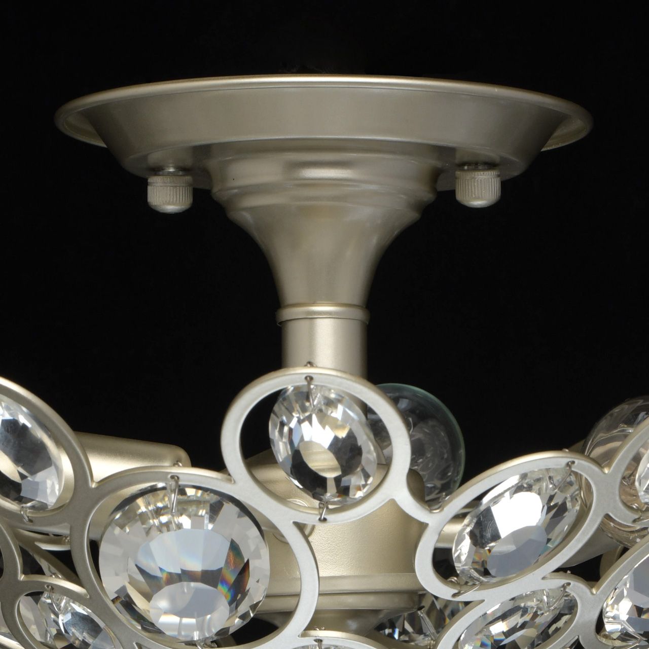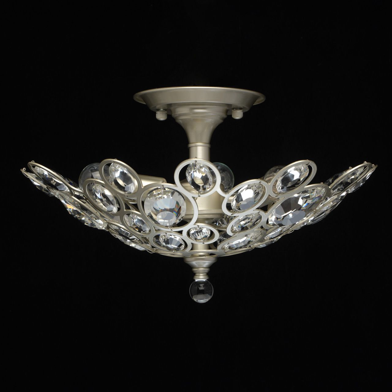 Основание выполнено из сплава металла и окрашено в цвет перламутрового серебра. Потолочная чаша - обработка на токарном станке. Корпус - прессование. Плафон - лазерная резка и ювелирная сварка. Декор - прозрачный хрусталь формы овал.Тип помещения