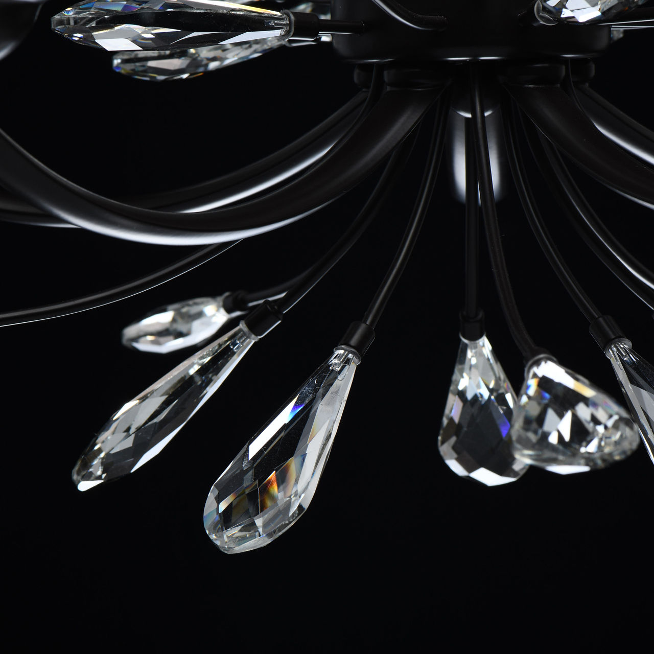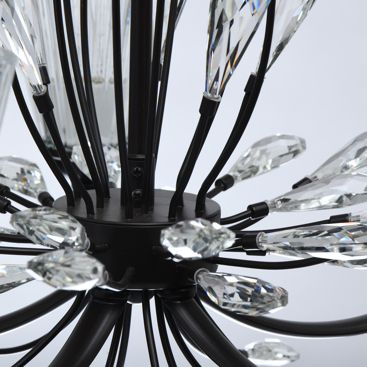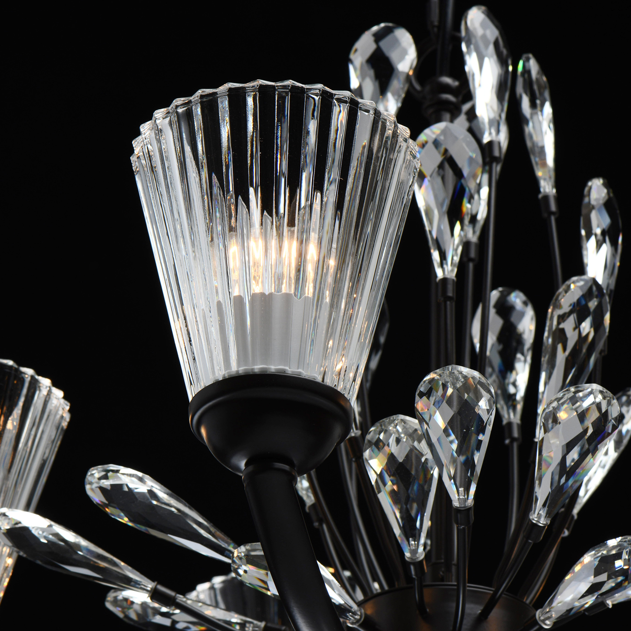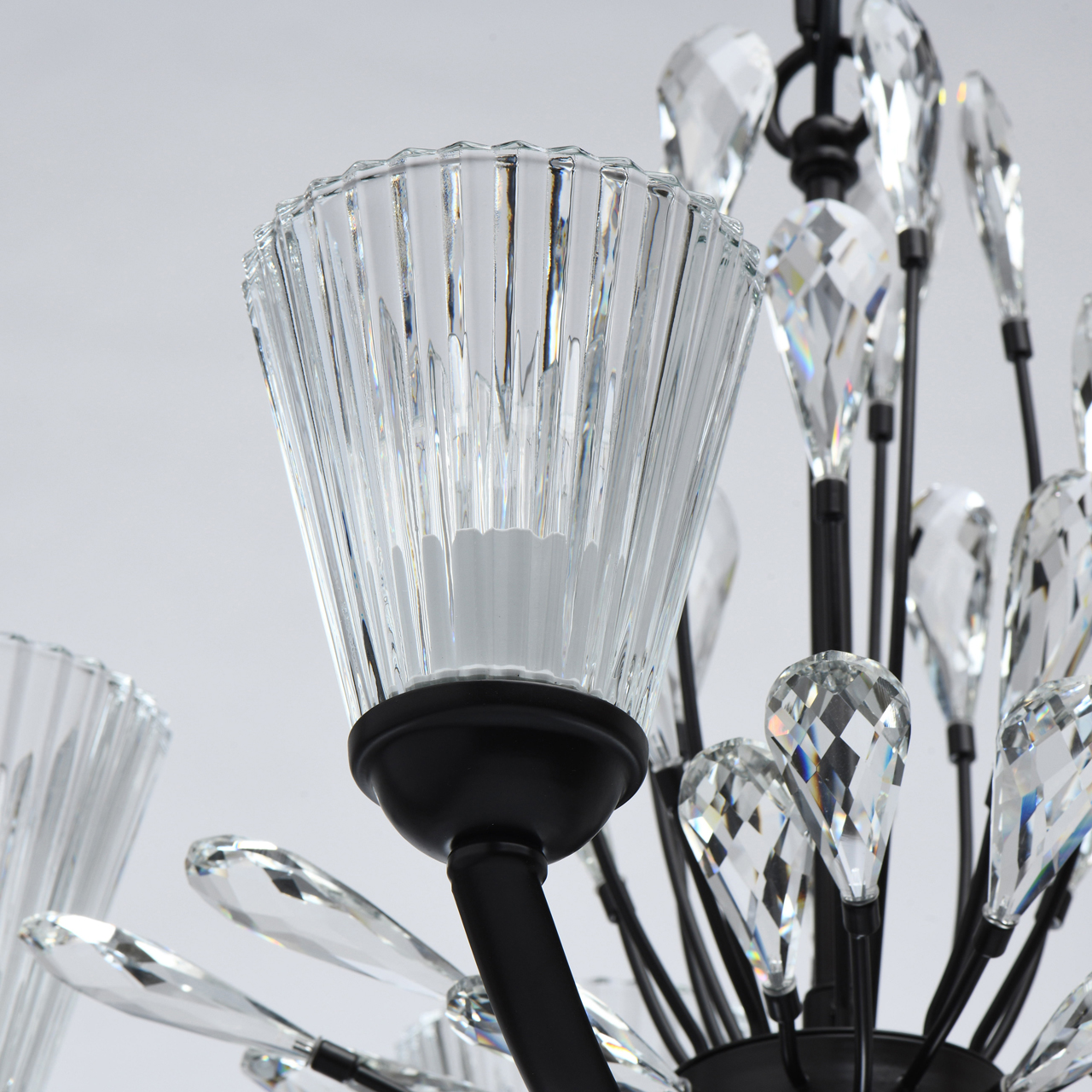 Современный флористический дизайн в тренде. Декор из крупного хрусталя особой формы придает модели легкости. Фактурные плафоны из стекла обеспечивают комфортный свет. Регулируемая высота за счет звеньев цепи. Заменяемые традиционные источники света удобны в эксплуатации. Полная семья из бра, потолочных люстр на 5 и 8 ламп.Стилевые решения интерьера