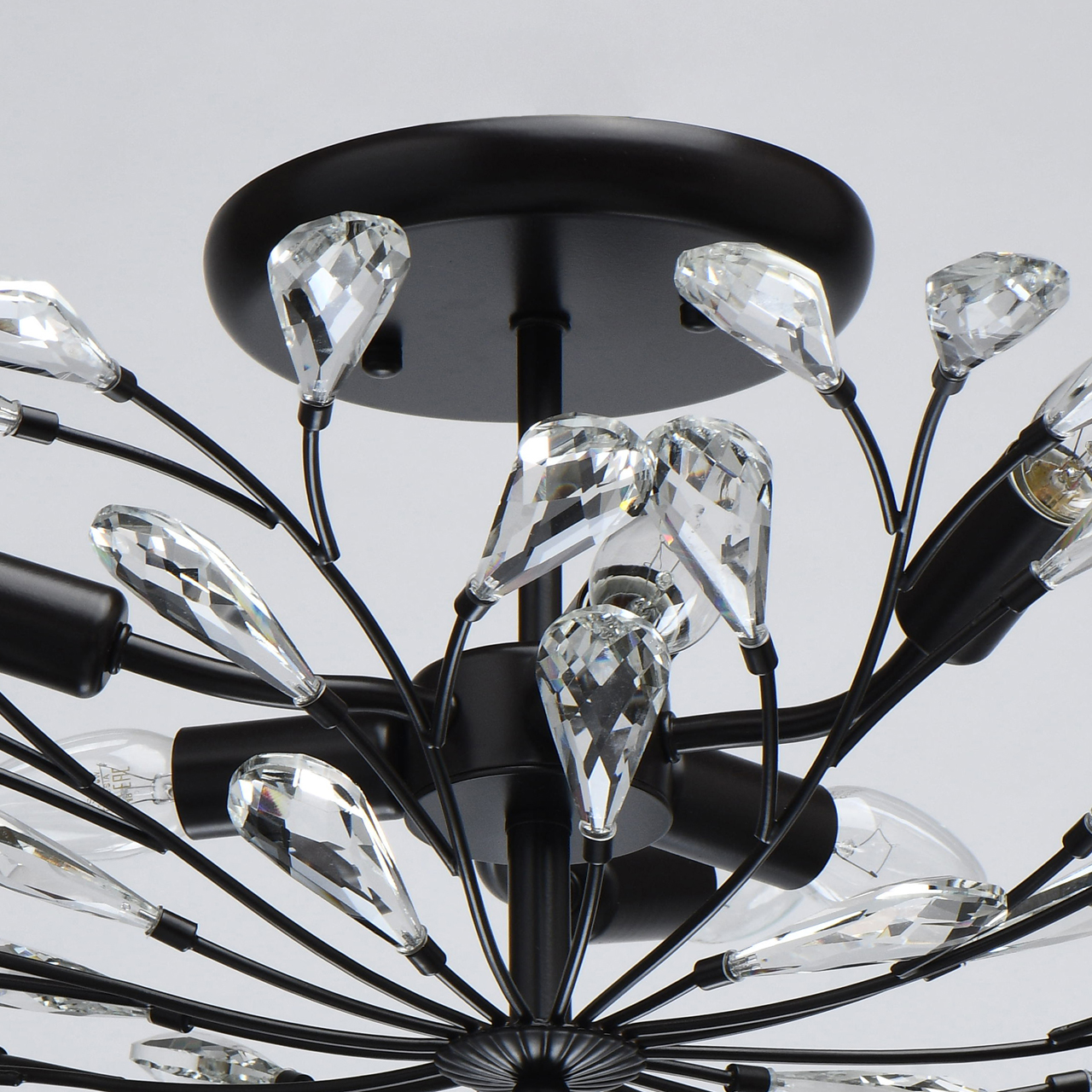 Современный флористический дизайн в тренде. Компактная высота актуальна для стандартной высоты потолка. Декор из крупного хрусталя особой формы придает модели легкости. Заменяемые традиционные источники света удобны в эксплуатации. Полная семья из бра, потолочных люстр на 5 и 8 ламп.Стилевые решения интерьера