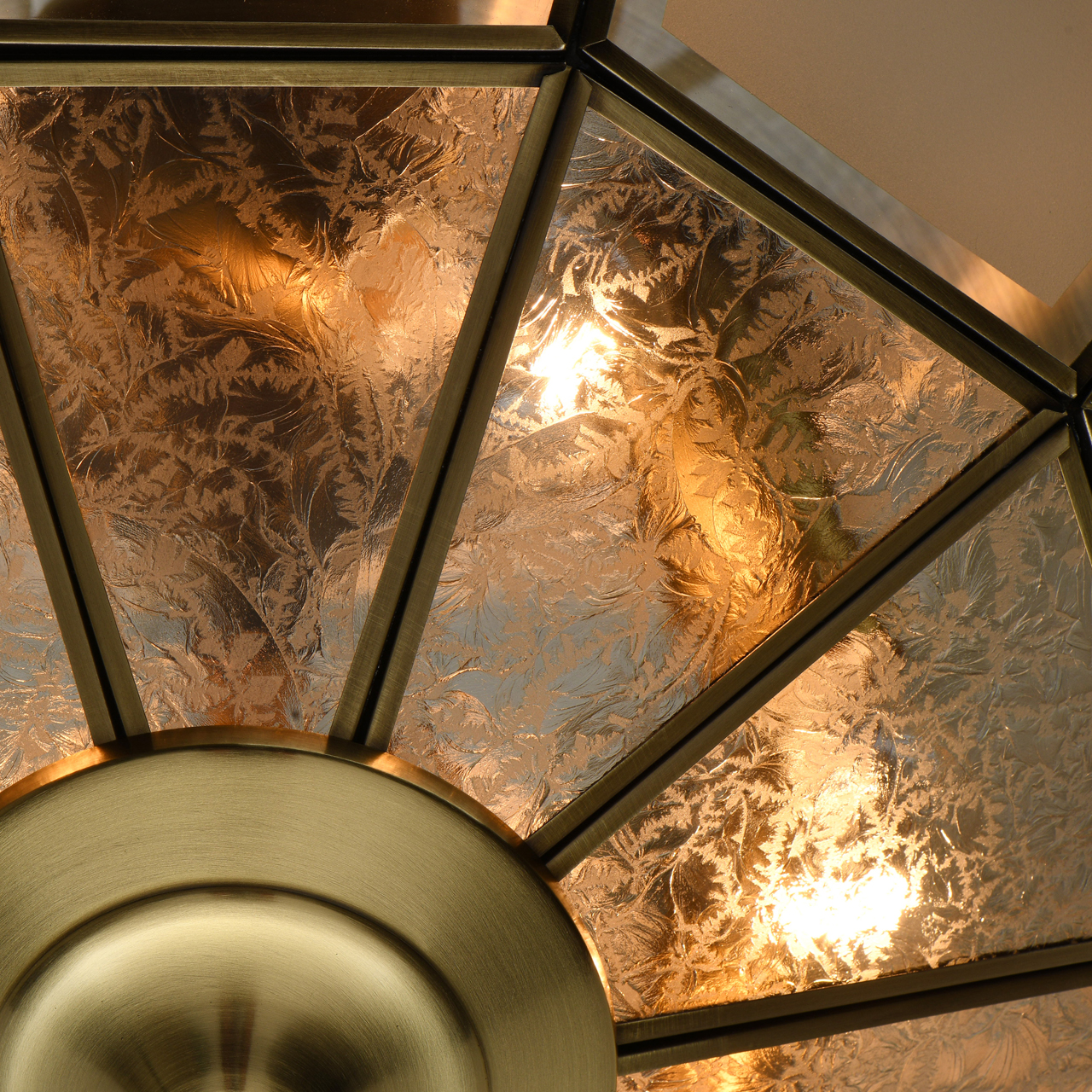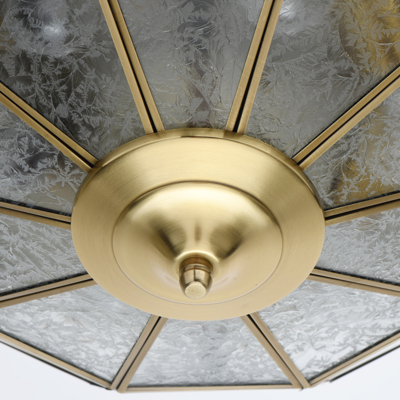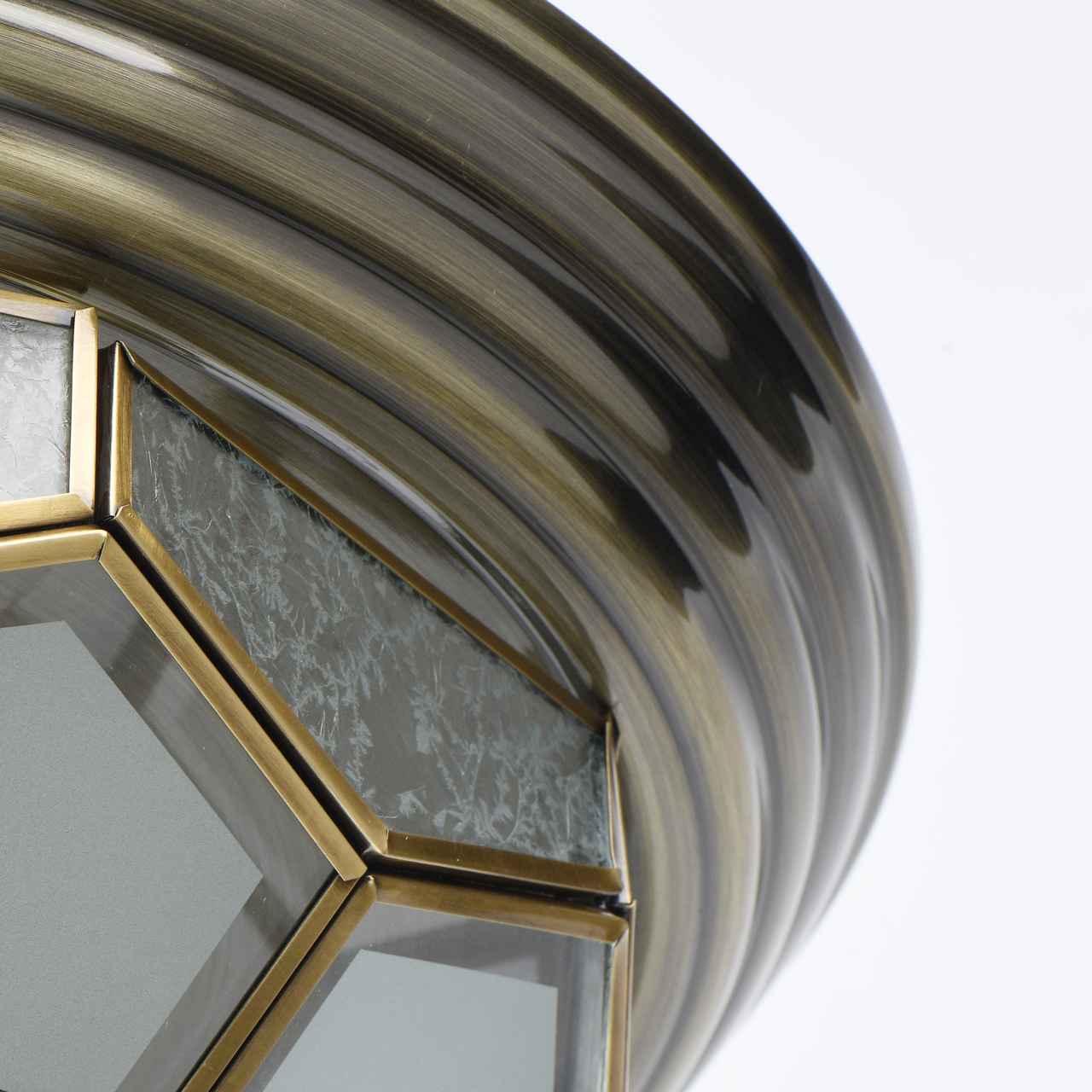Основание из благородной латуни дополнено стеклянными сегментами в латунных рамках с четкой геометрией. Стеклянные фрагменты герметично соединены, образуют геометричный плафон. Компактные размеры идеальны для стандартной высоты потолков. Диаметр светильника обеспечивает высокие параметры освещенности. Система отвода конденсата гарантирует долгий срок службы источников света IP 44 защита от влажности и пыли.Стилевые решения интерьера