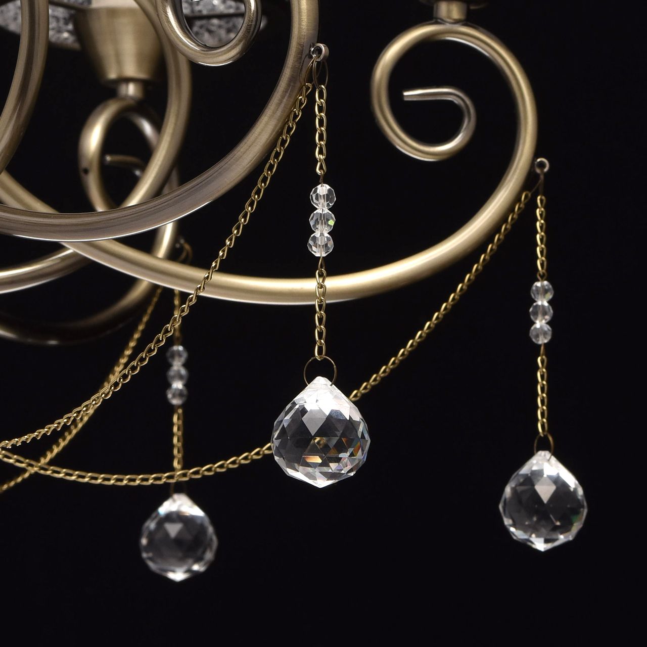 Металлическое основание цвета античной бронзы. Плафоны: акрил. Декор: металлические цепочки и подвески из хрусталя.Технология производства