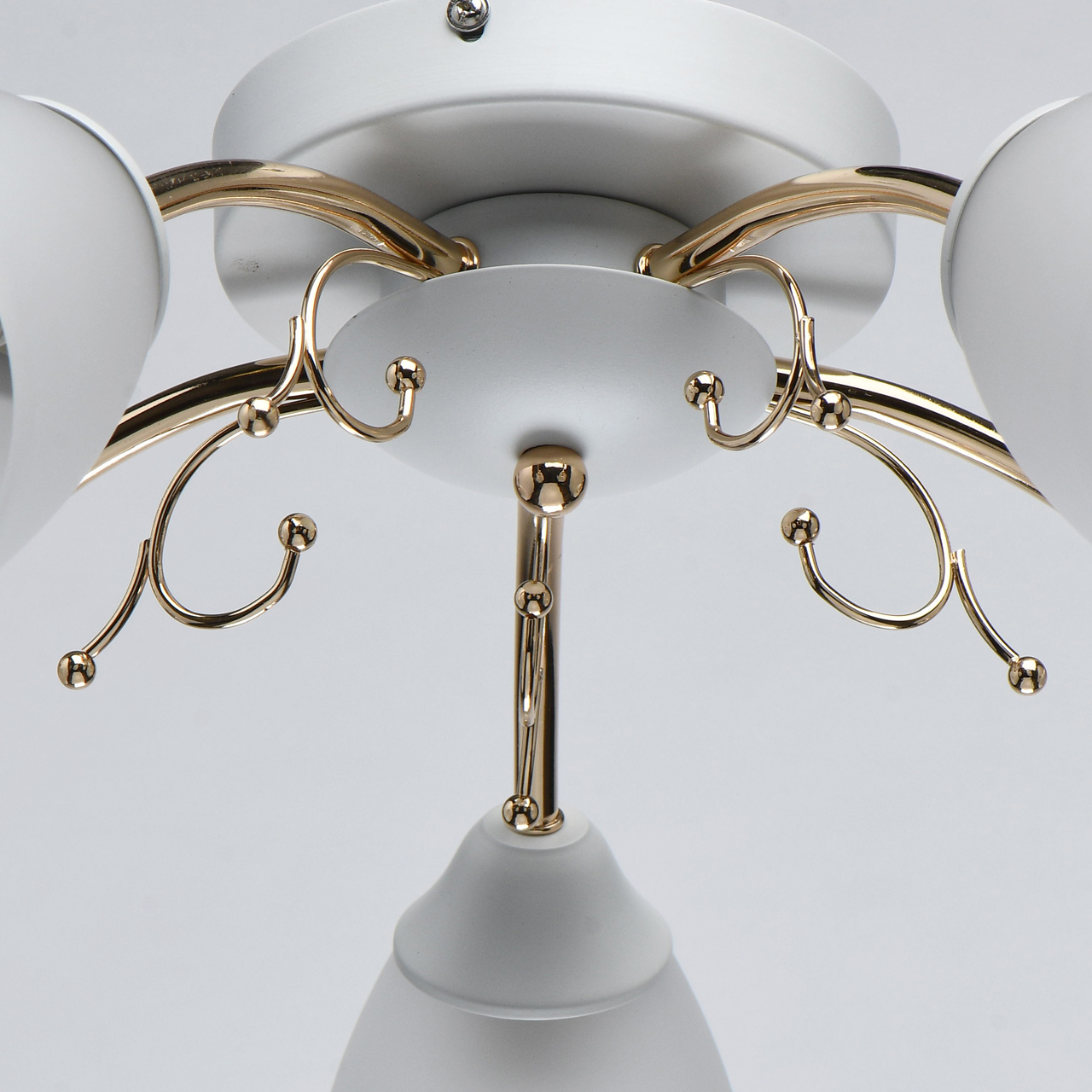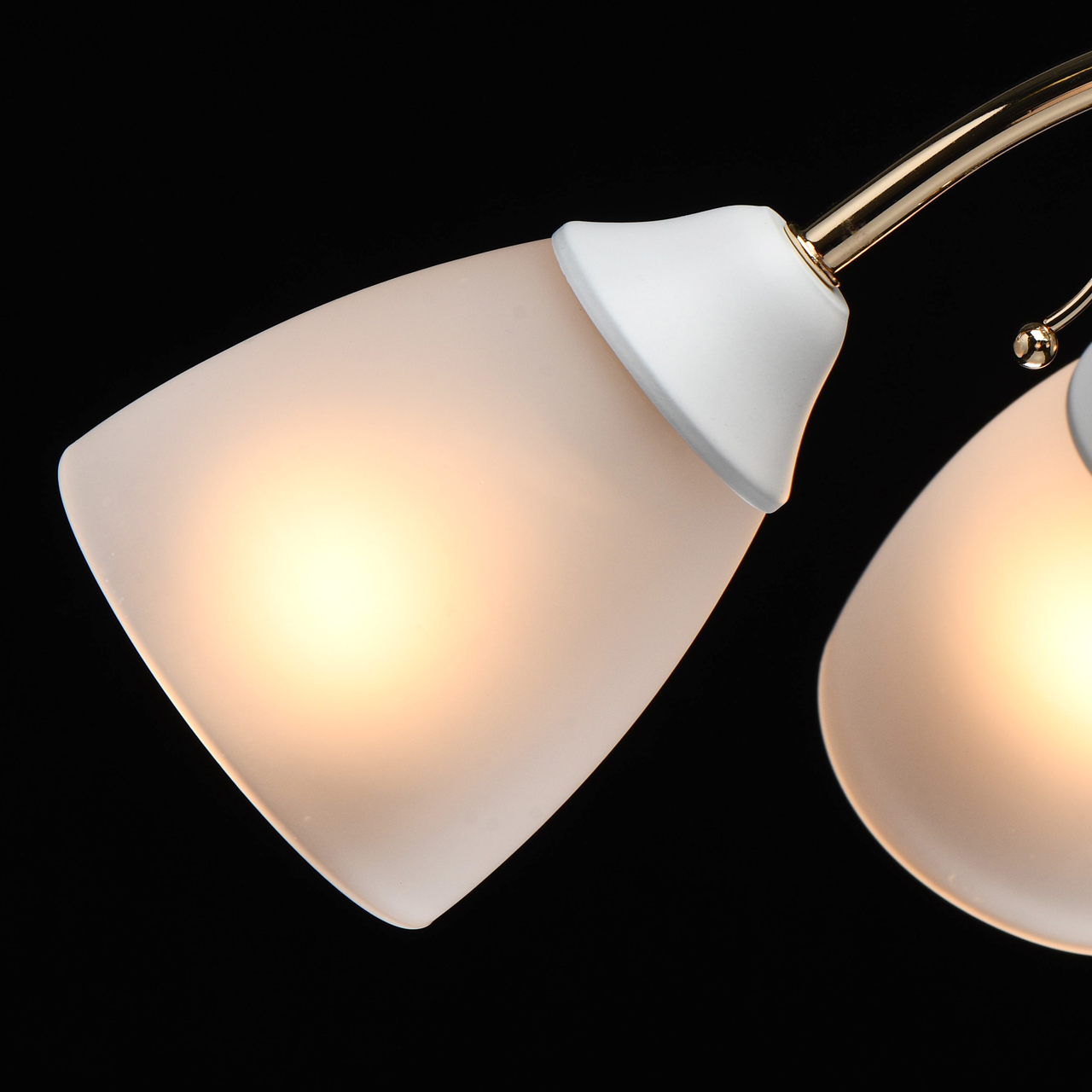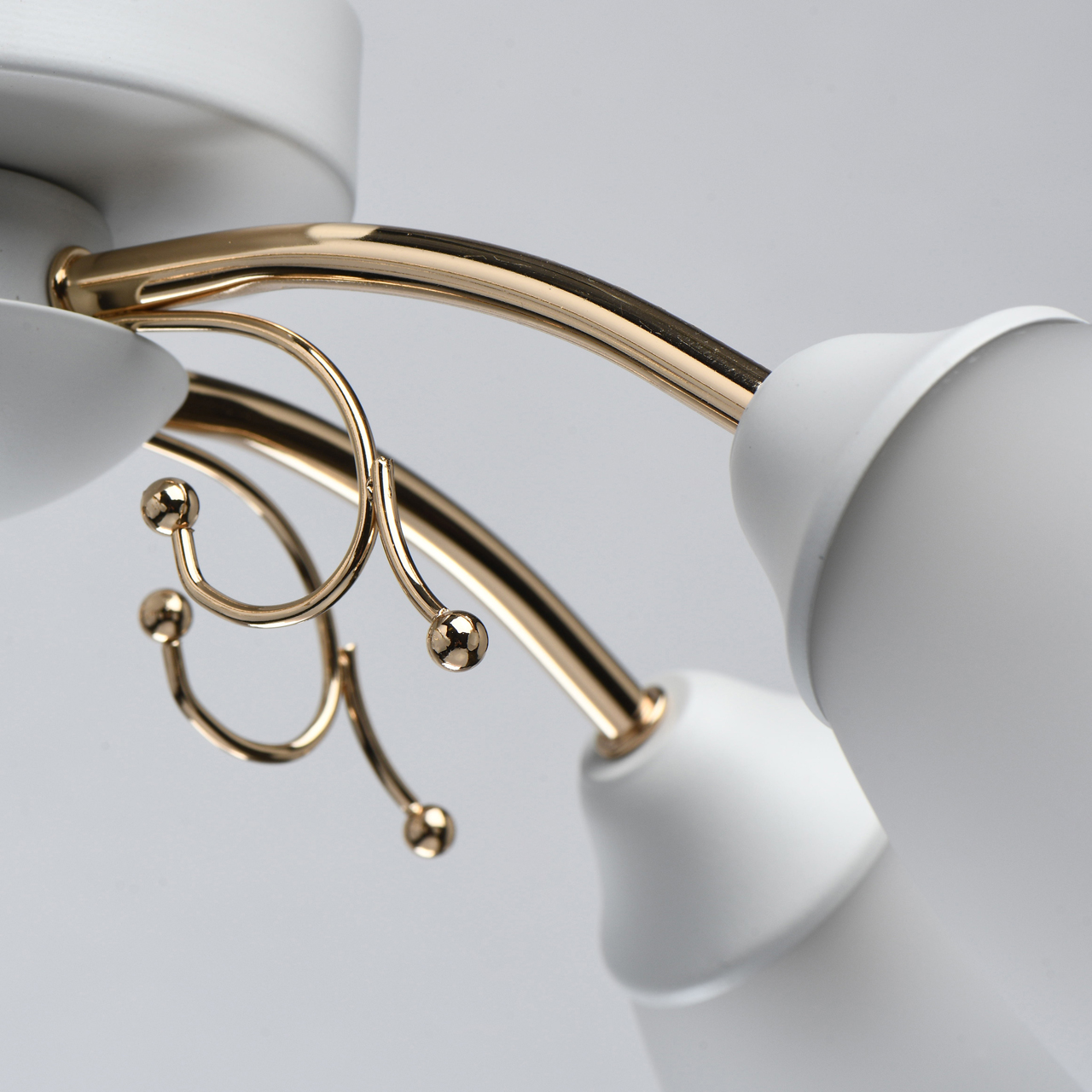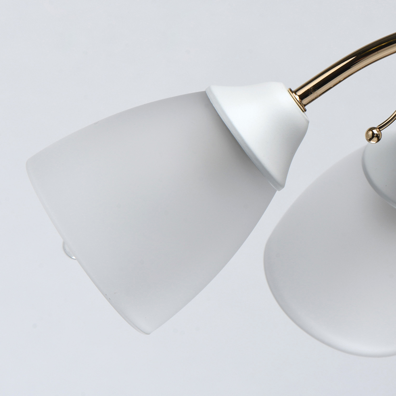 Металлическое основание светильника окрашено в белый цвет. Декоративные элементы гальванизированы в цвет золота. Стеклянные плафоны матированы.Тип помещения