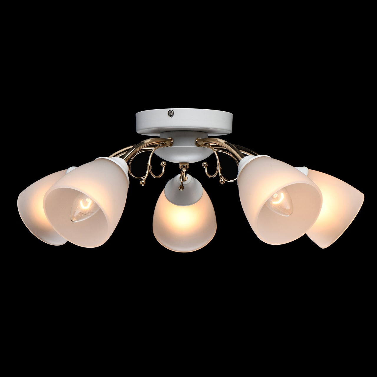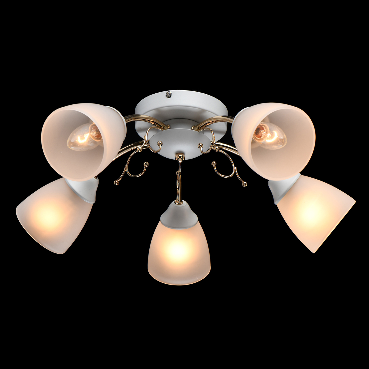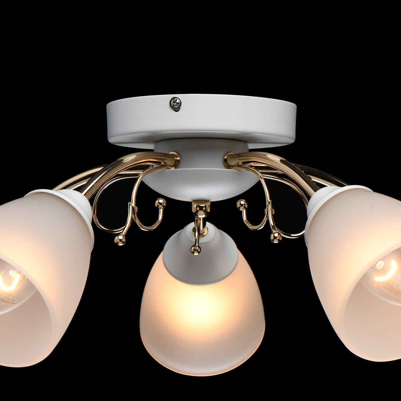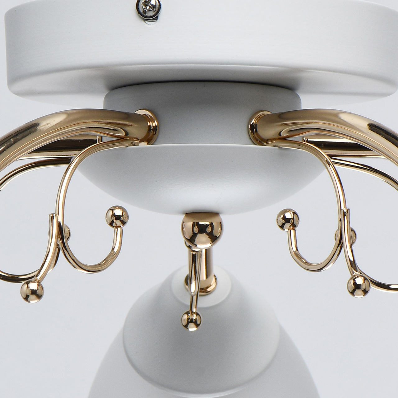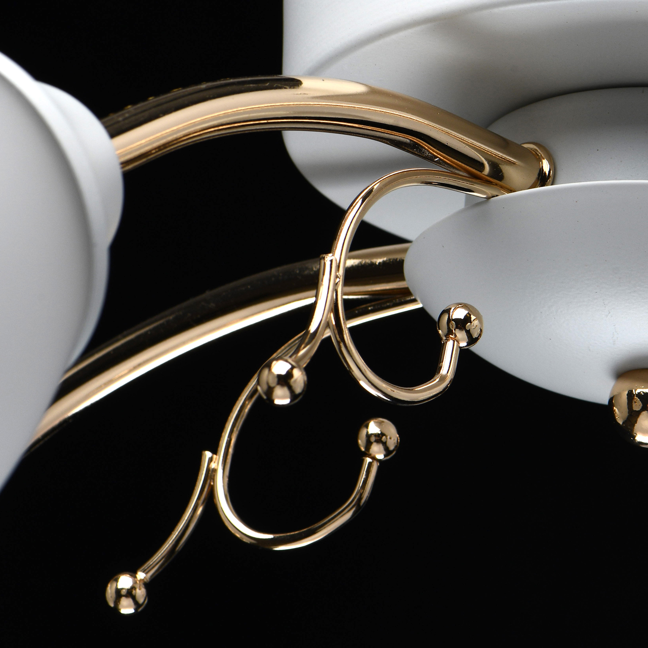 Металлическое основание светильника окрашено в белый цвет. Декоративные элементы гальванизированы в цвет золота. Стеклянные плафоны матированы.Тип помещения