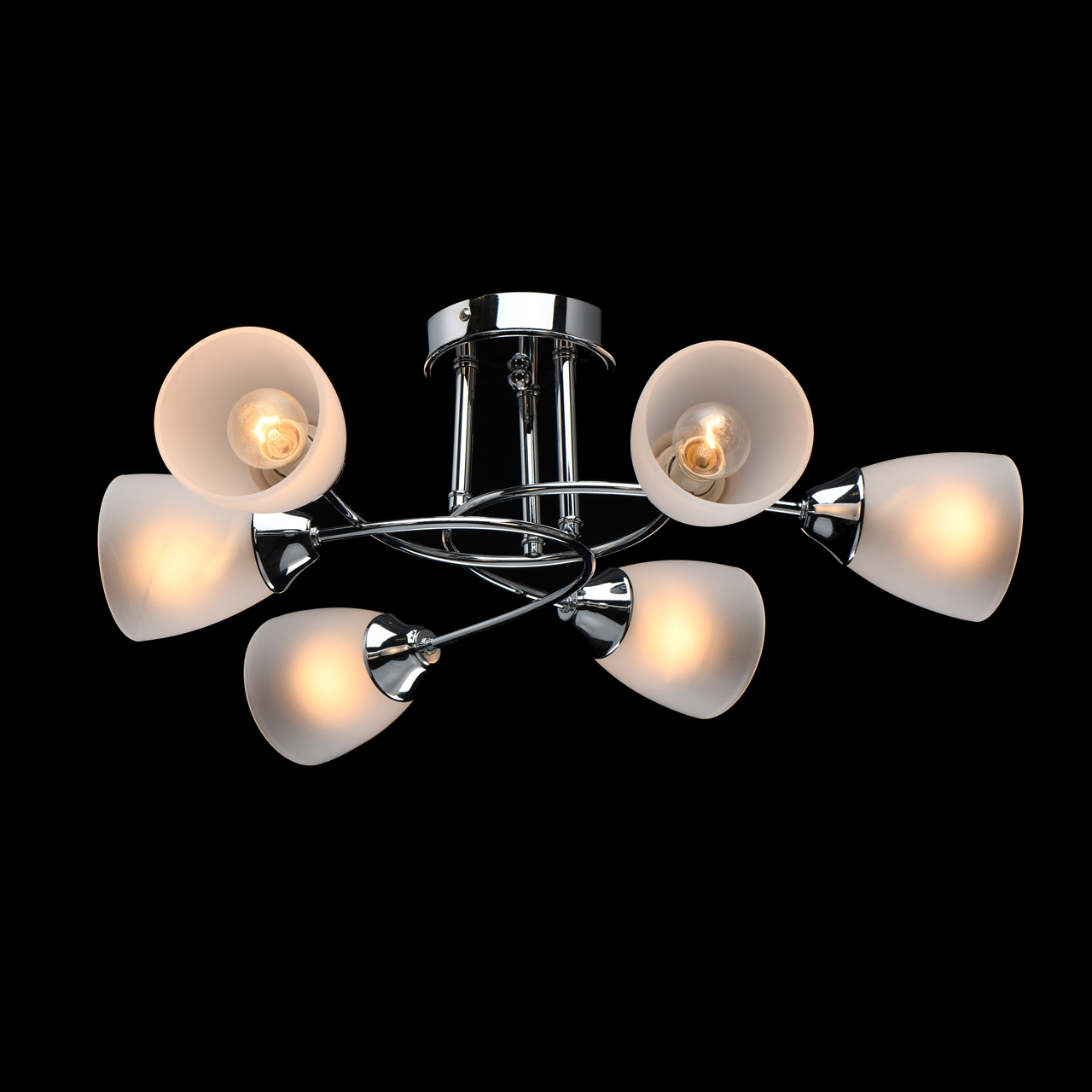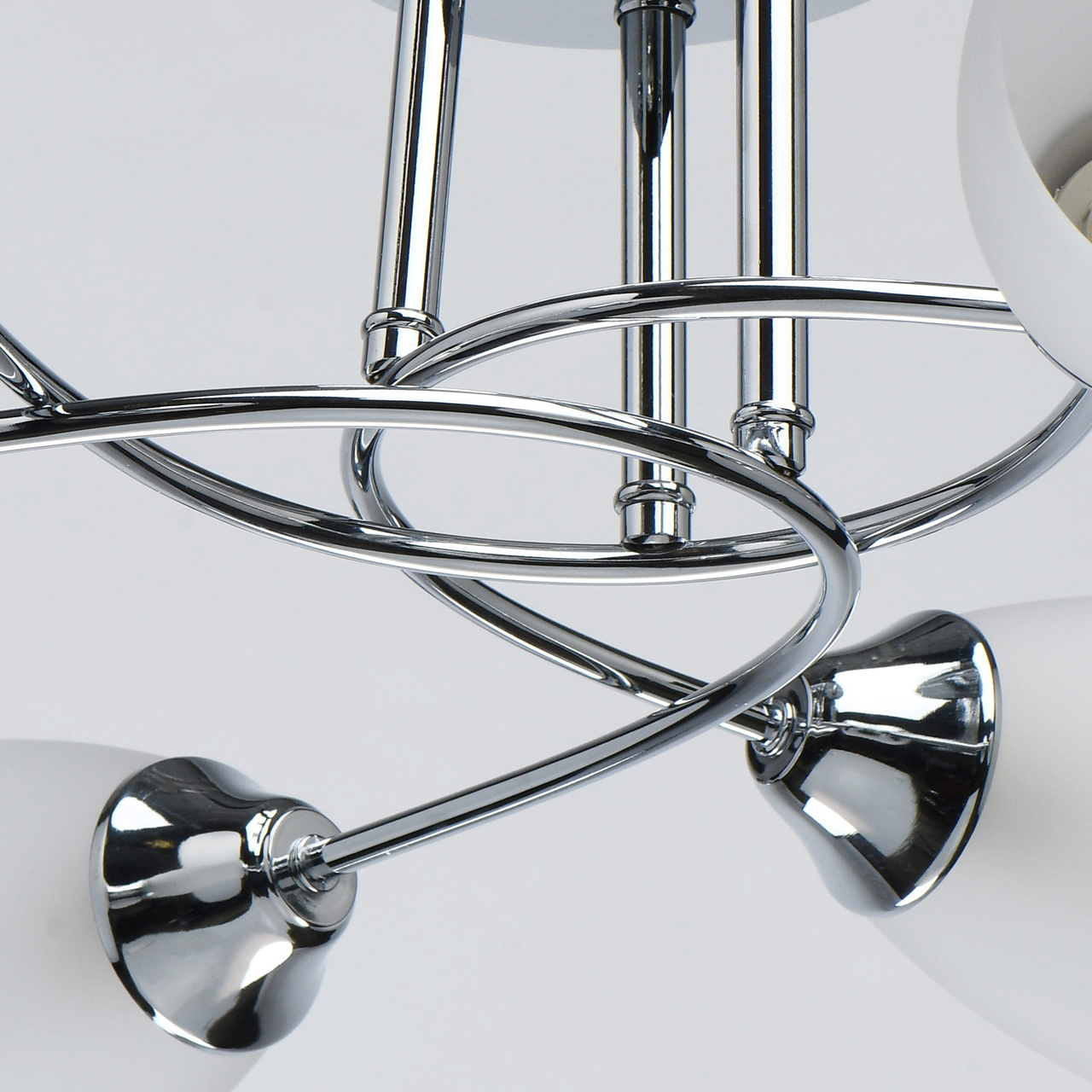 Металлическое основание светильника гальванизировано в цвет хрома. Стеклянные плафоны матированы.Тип помещения