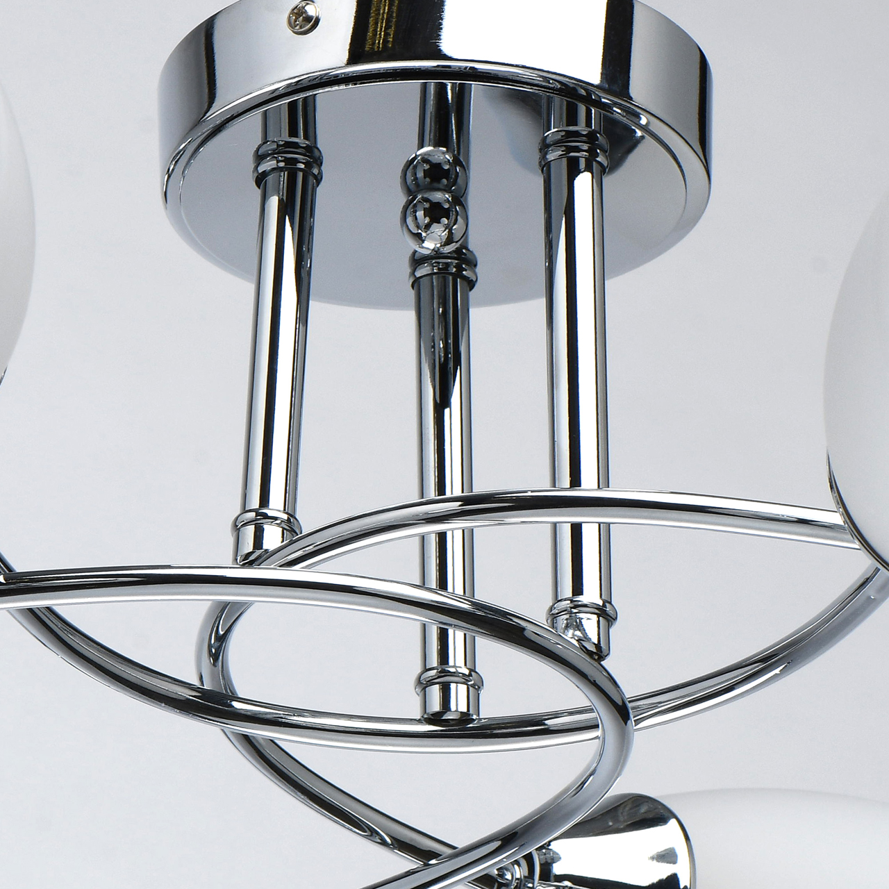 Универсальная модель для интерьеров различной цветовой гаммы. Плафоны из матового стекла обеспечивают мягкий комфортный свет. Компактная высота модели идеальна для стандартной высоты потолка.Стилевые решения интерьера