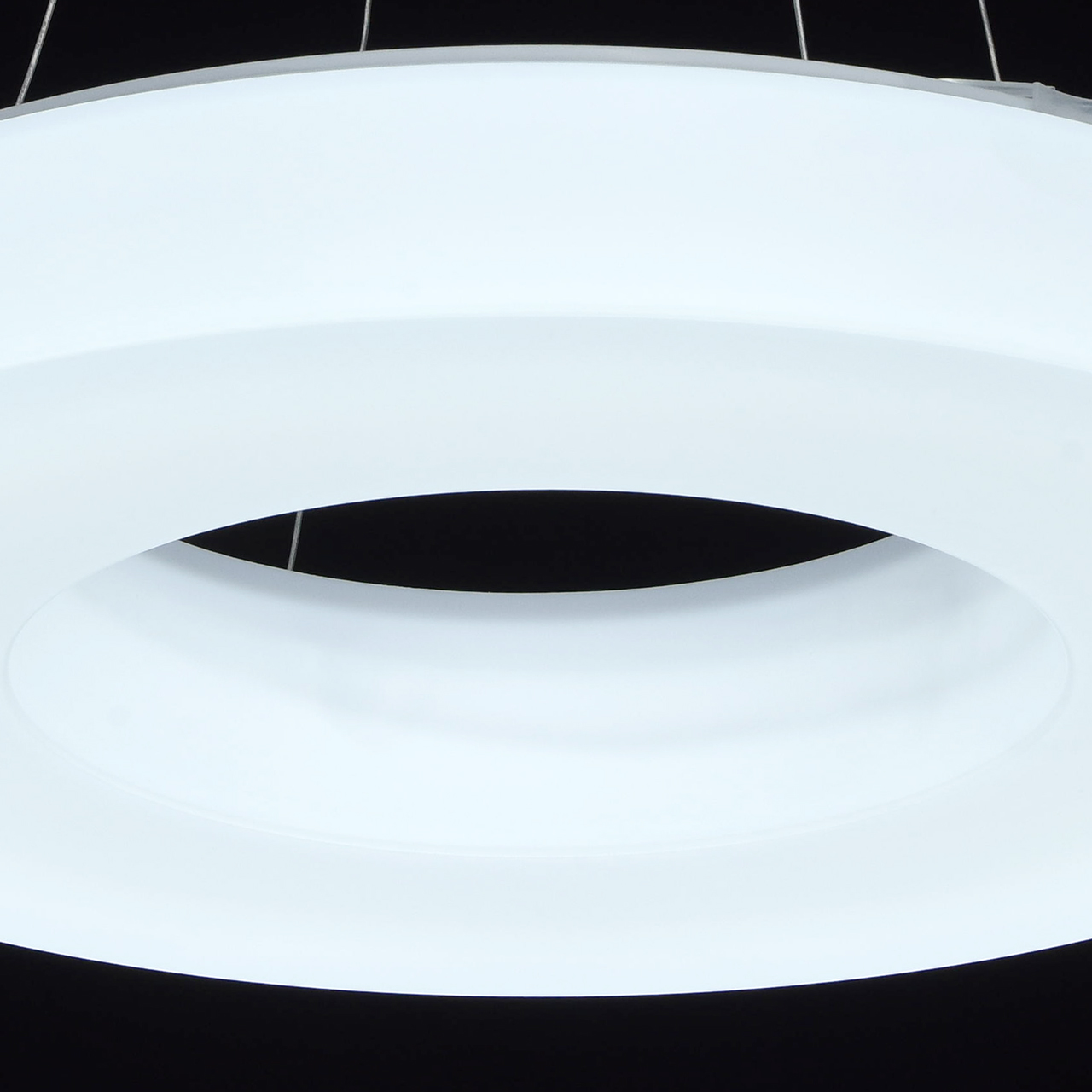 Стильный минималистичный дизайн отличает светильник из коллекции «Норден». Металлическое основание серебристого оттенка дополнено белым акриловым плафоном. Выполненный в виде широкого объемного кольца, он освежит обстановку и привнесет в неё гармонию и спокойствие. В качестве источников света выступают светодиоды. Люстра также отличается высокой функциональностью, имеет три режима освещения. Она отлично украсит современный интерьер.Преимущества модели
