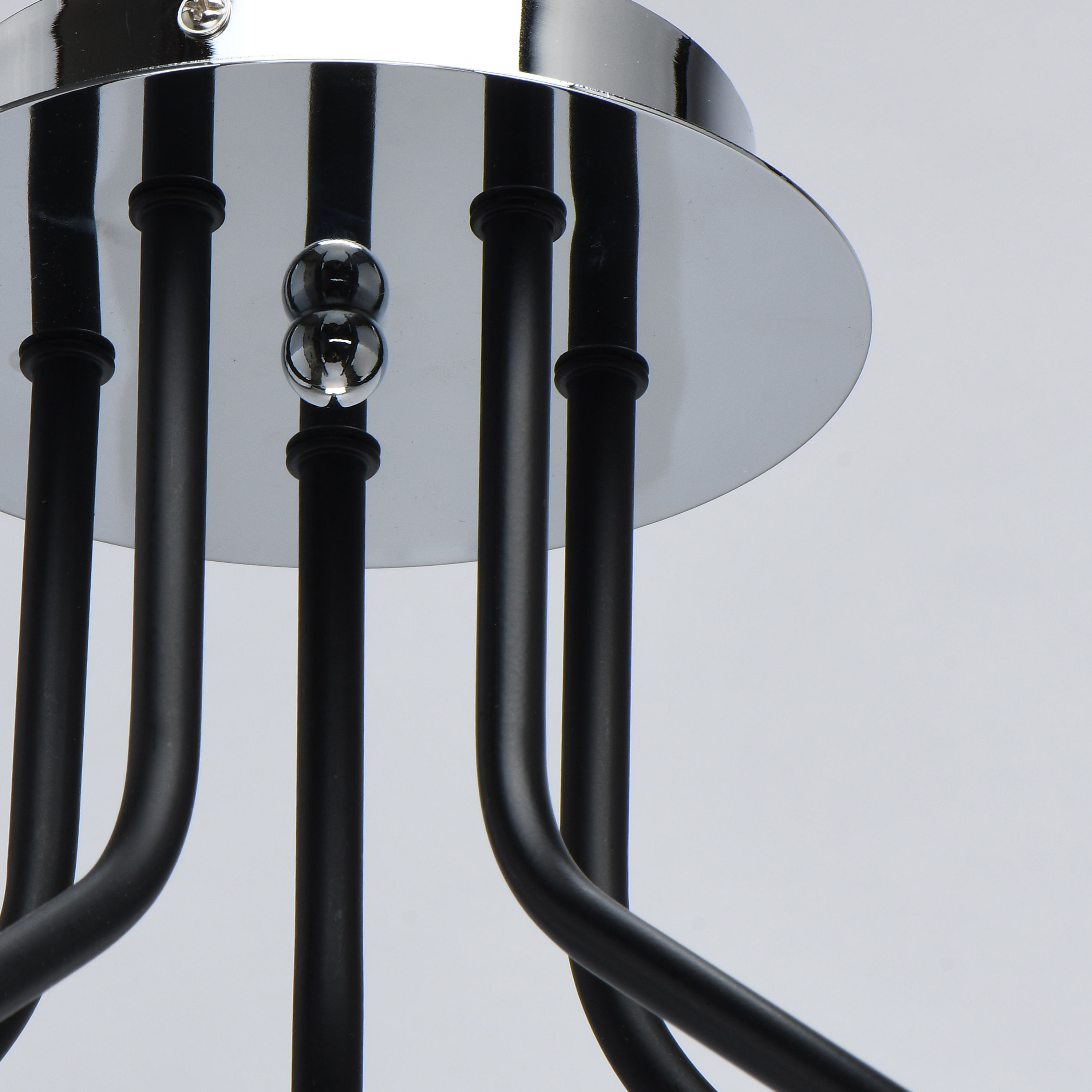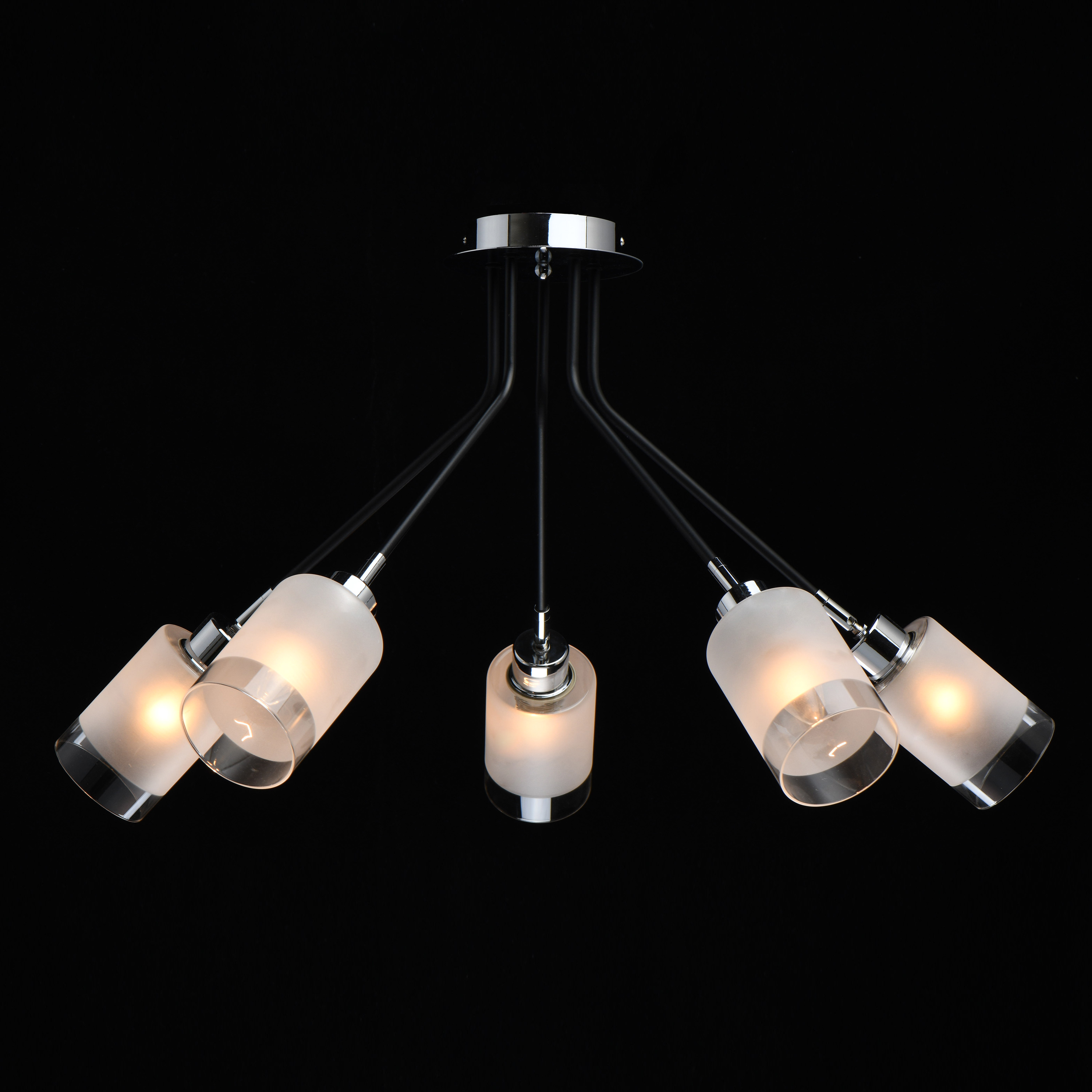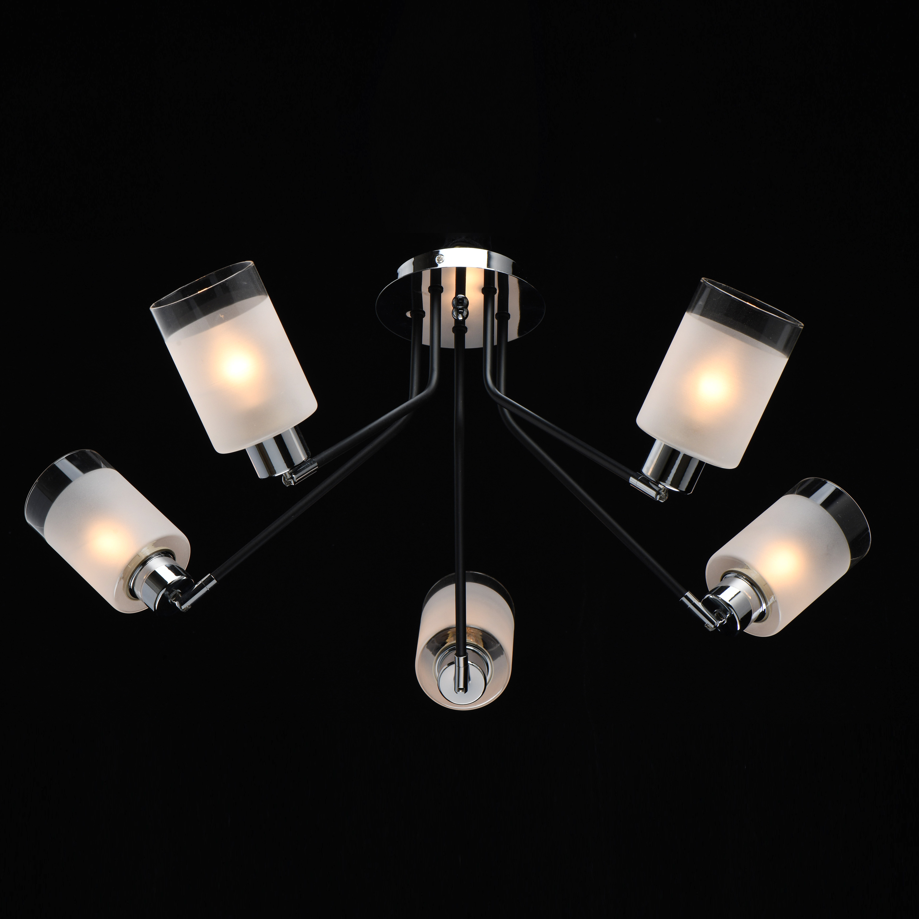 Основание светильника выполнено из металла и окрашено в черный цвет. Отдельные элементы светильника гальванизированы в цвет хрома. Стеклянные плафоны матированы до середины.Тип помещения