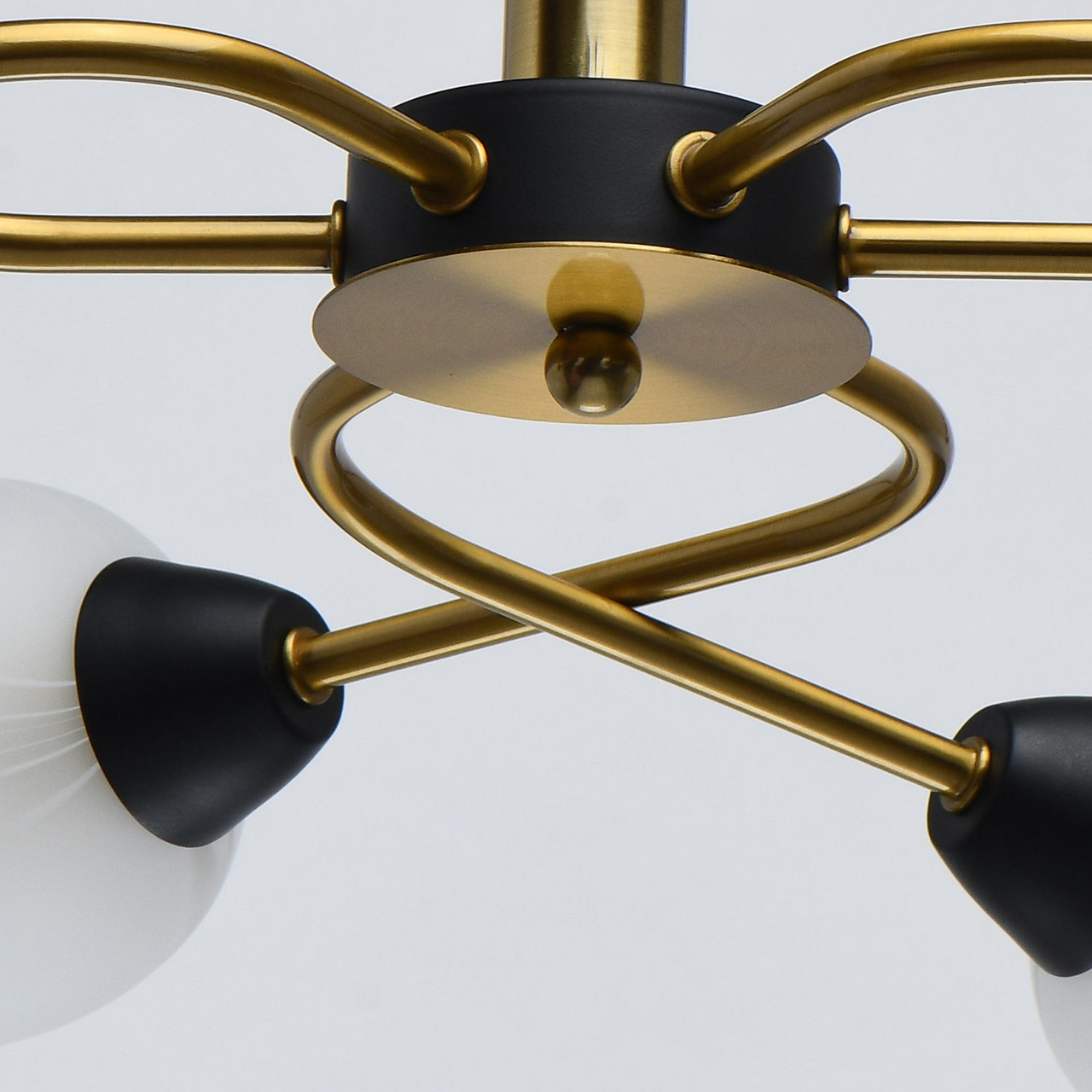 Металлическое основание светильника гальванизировано в цвет медовой бронзы. Отдельные элементы основания окрашены в черный цвет. Стеклянные плафоны матированы по трафарету.Тип помещения