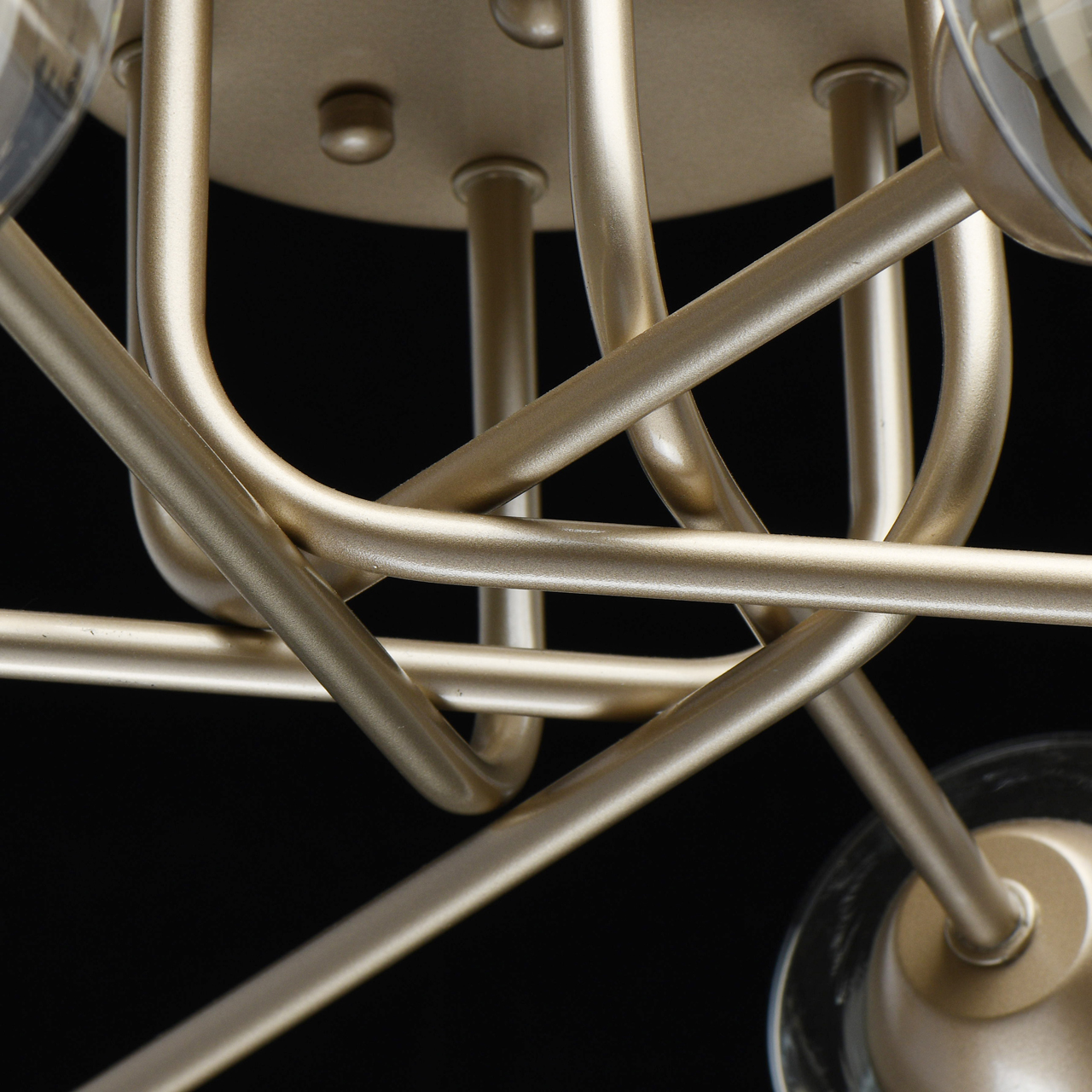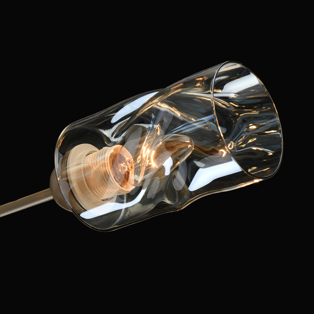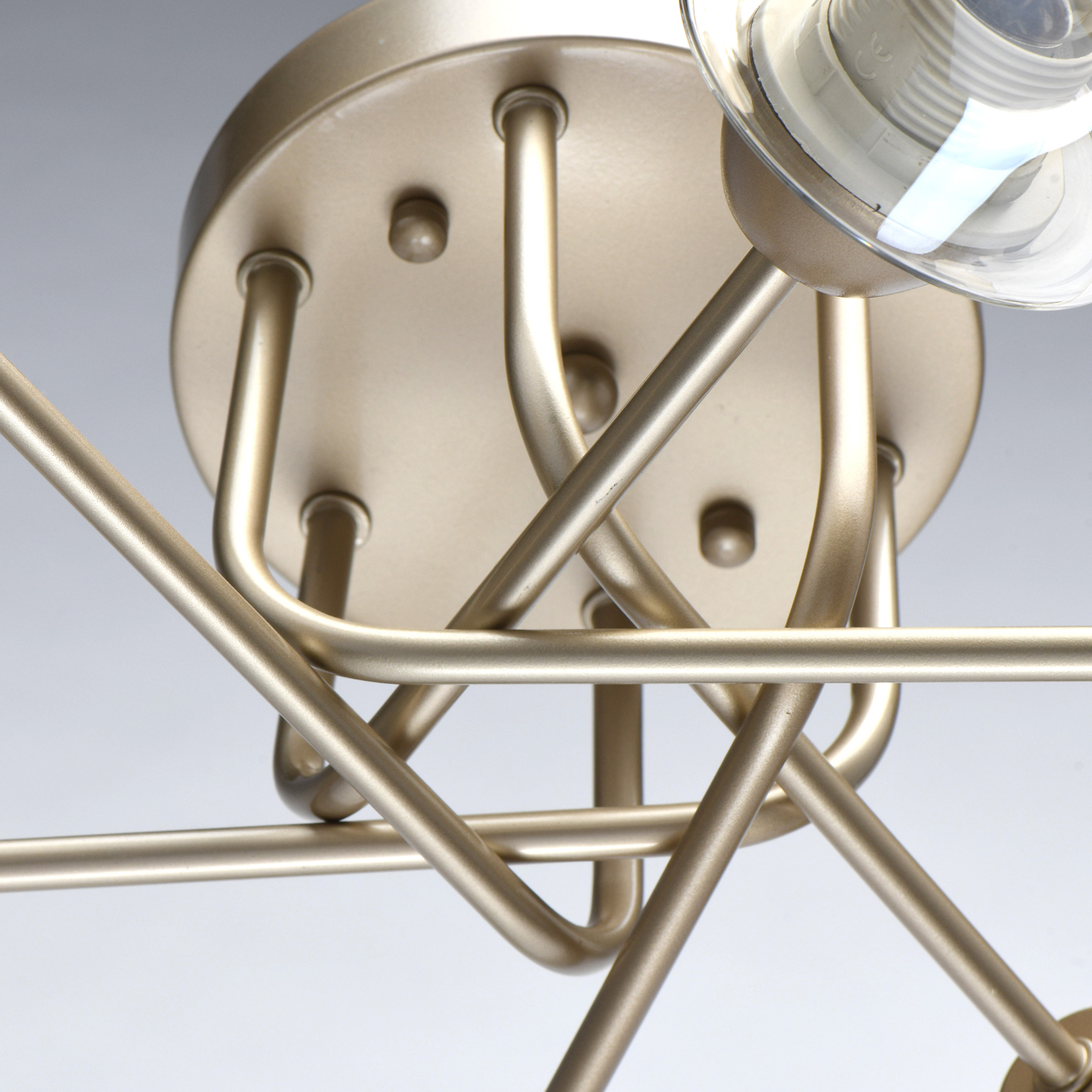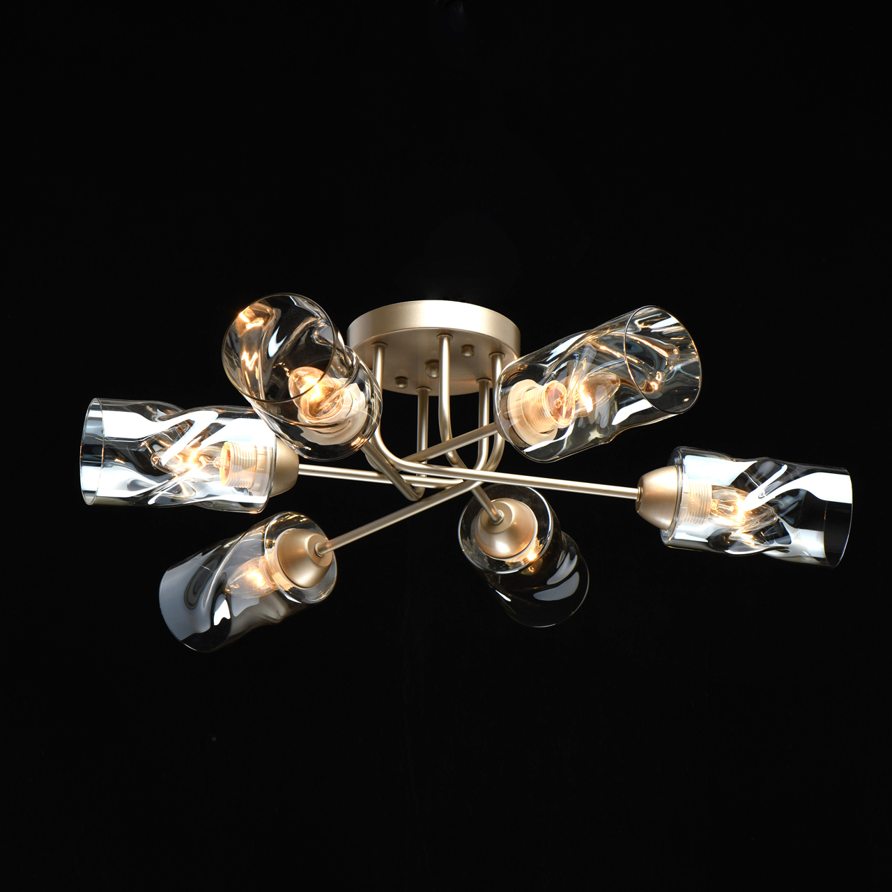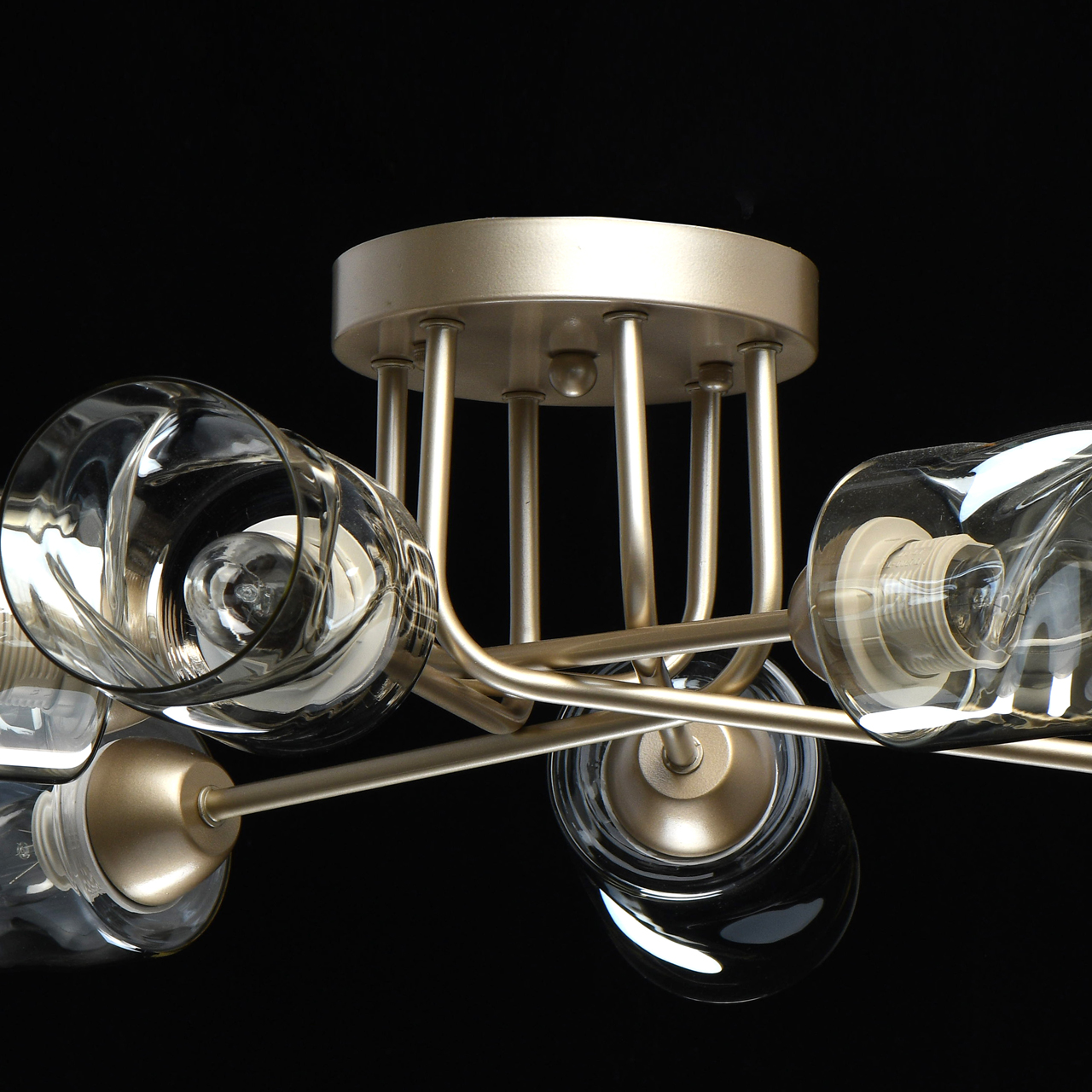 Трендовый цвет перламутрового золота основания актуален для современных интерьеров. Плафоны скрученной формы из тонированного стекла обеспечивают мягкий световой поток. Компактная высота модели идеальна для стандартной высоты потолка. Заменяемые источники света удобны в эксплуатации.Стилевые решения интерьера
