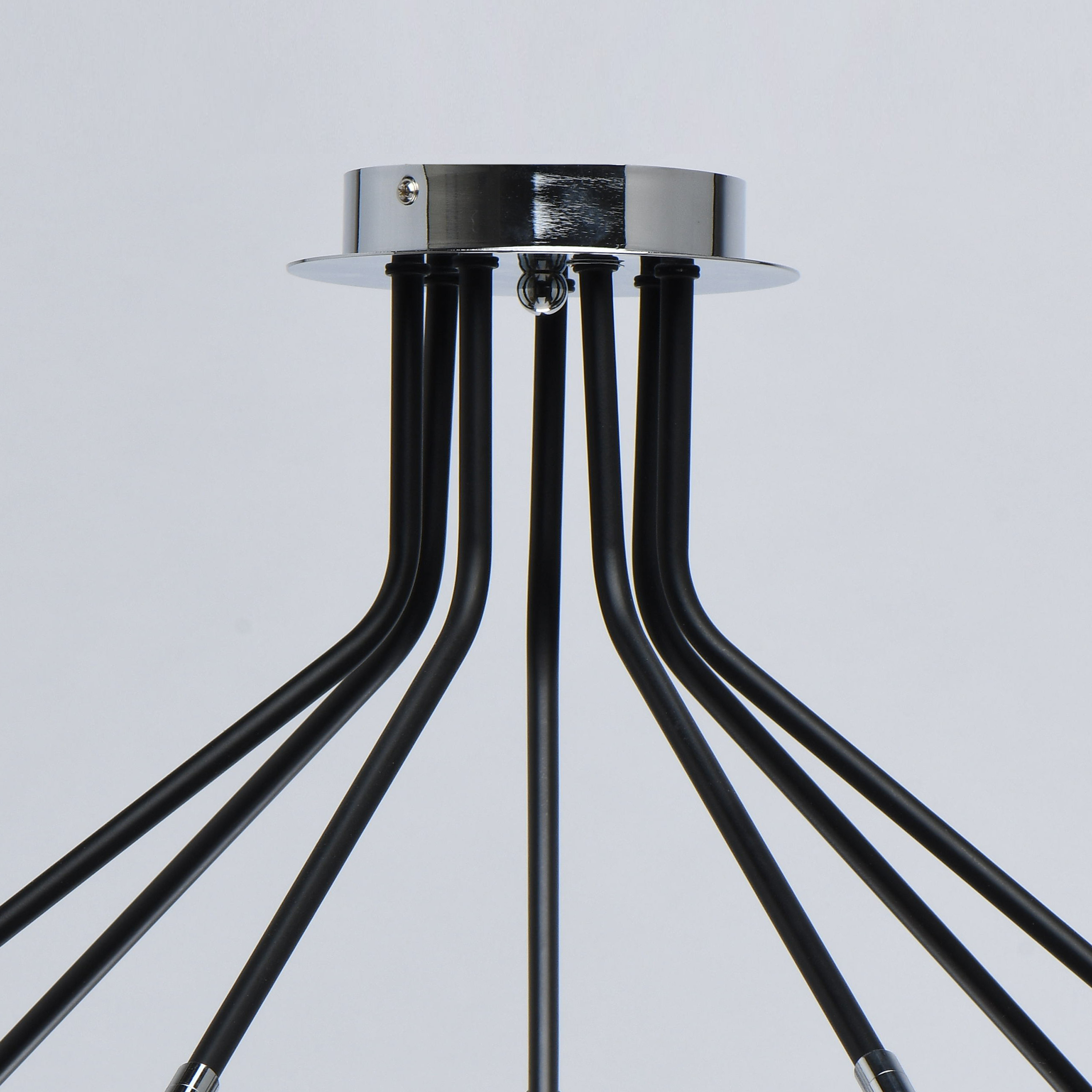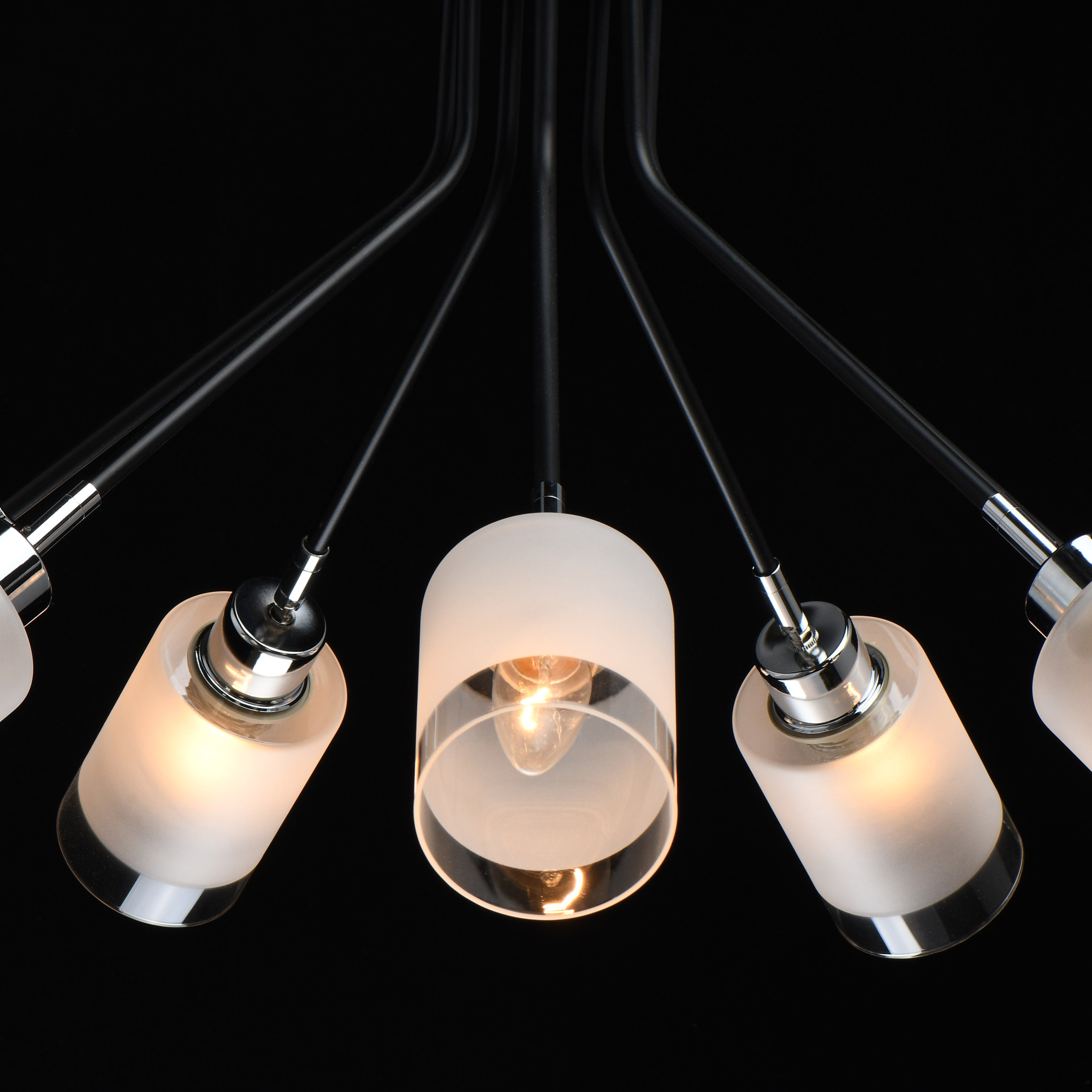 Основание светильника выполнено из металла и окрашено в черный цвет. Отдельные элементы светильника гальванизированы в цвет хрома. Стеклянные плафоны матированы до середины.Тип помещения