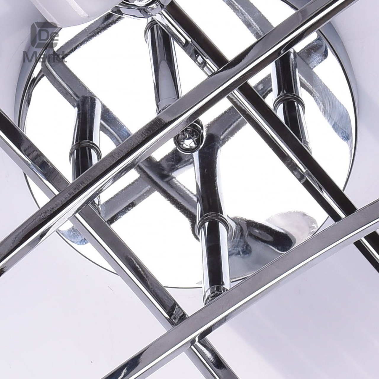 Основание светильника выполнено из металла и гальванизировано в цвет хрома. Потолочная чаша и держатели плафонов изготовлены по технологии обработки на токарном станке. Плафоны: стекло, отлито в форму. Плафоны матированы по трафарету.Тип помещения