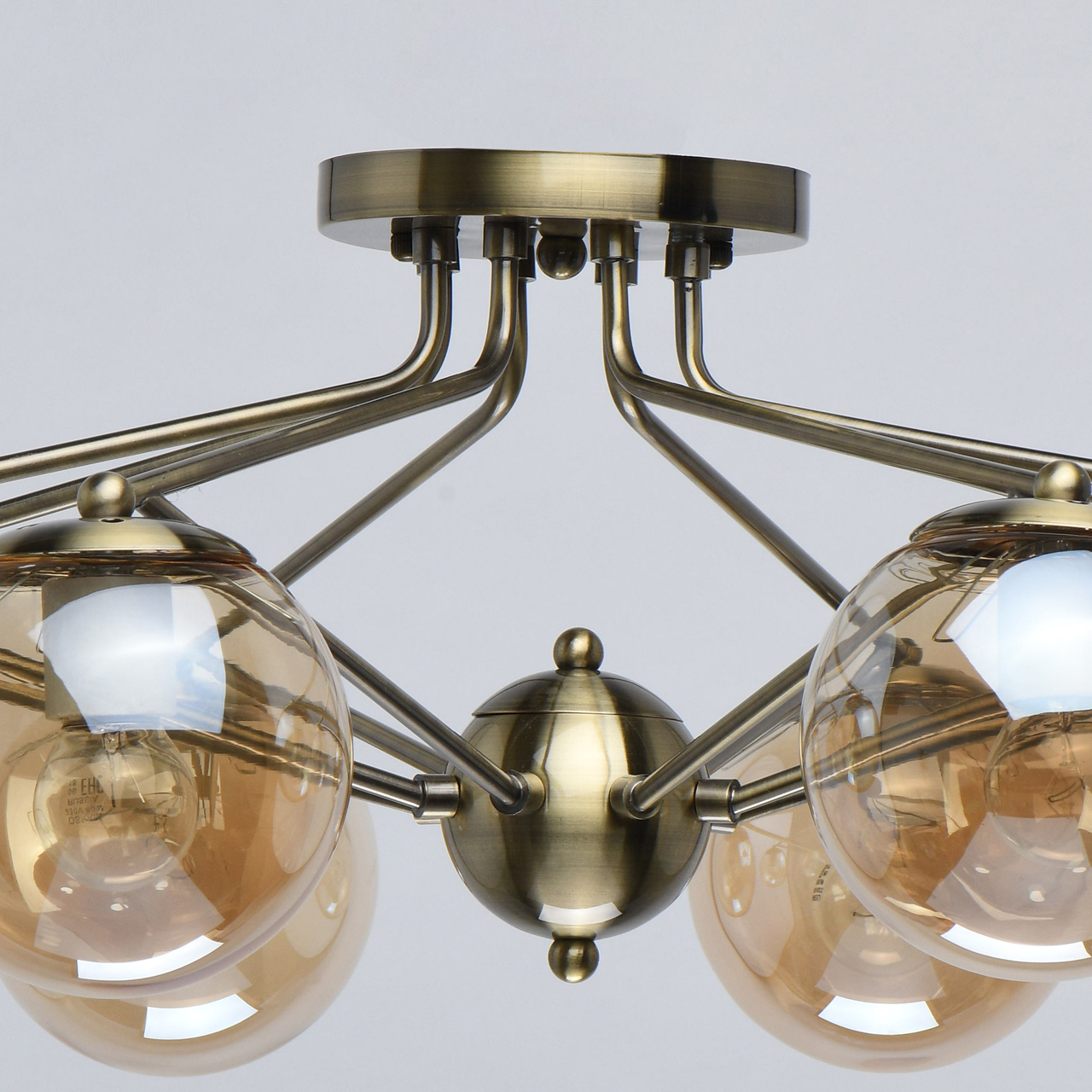 Основание светильника выполнено из металла и гальванизировано в цвет античной бронзы. Светильник декорирован стеклянными плафонами, гальванизированными в цвет топаз.Тип помещения