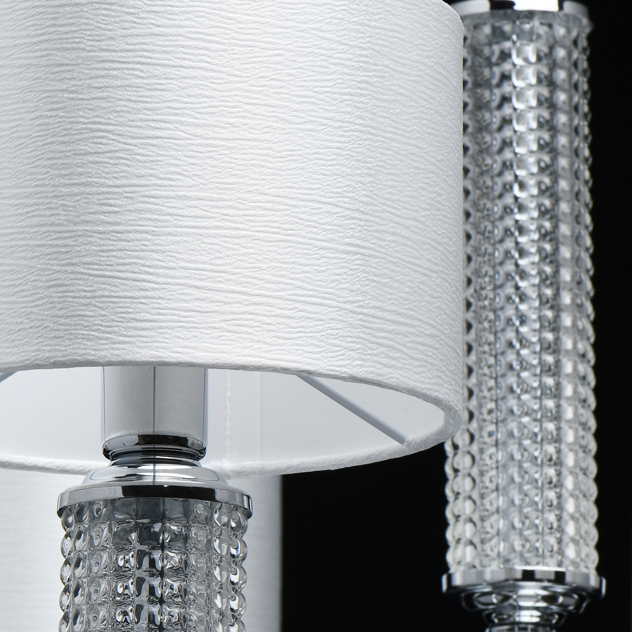 Основание/ металл/ хром Абажуры/ текстиль/ белый Декор/ стекло/ прозрачноеТехнология производства