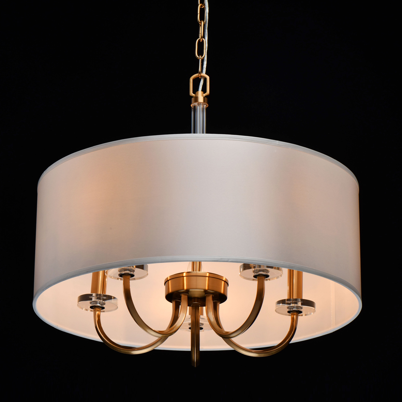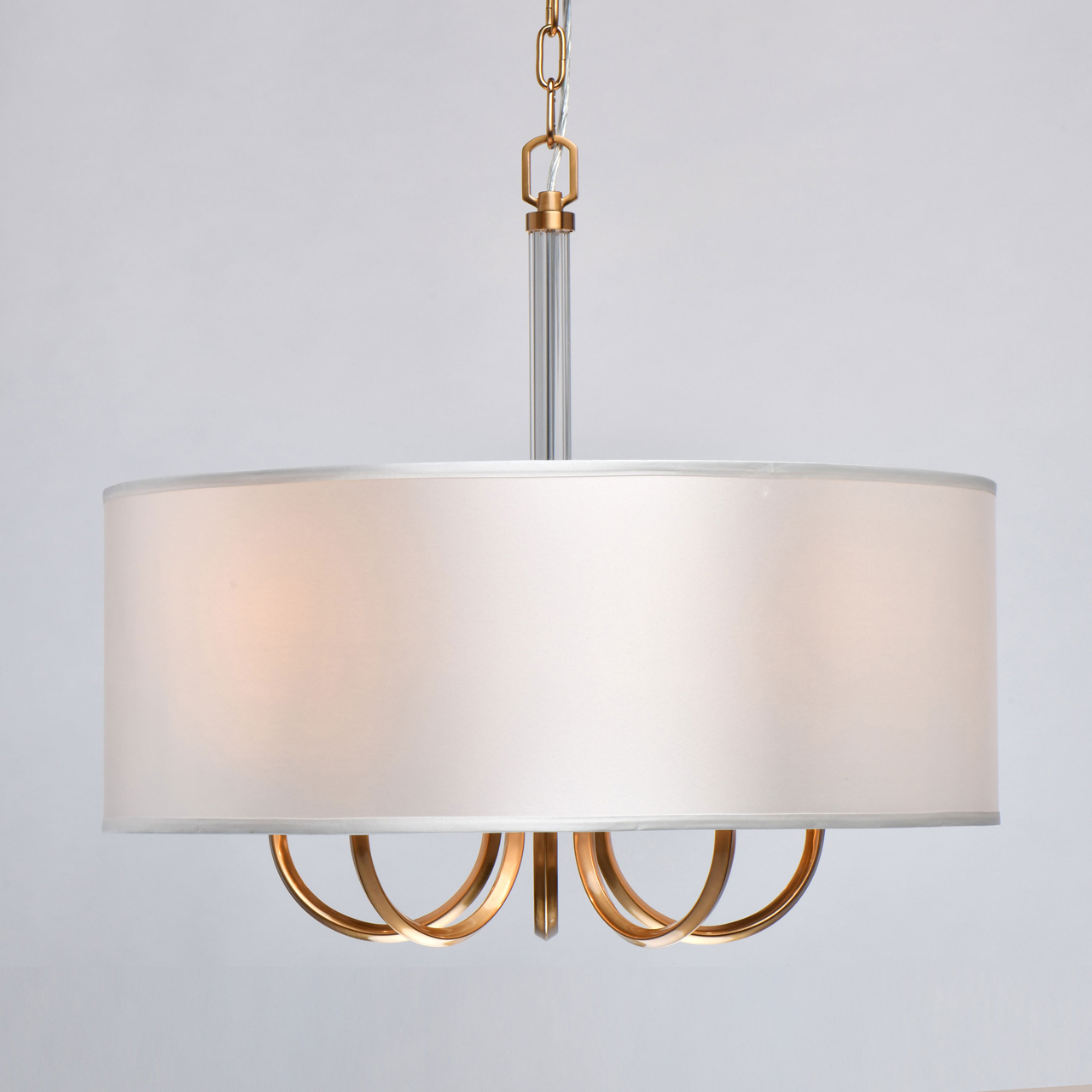 Модный минимализм в американском стиле придает актуальности интерьеру. Абажур рисово-белого цвета смягчает строгость форм. Полная семья решает задачи общего и зонального освещения. Трендовые цвета в коллекции, хрома и бронзы, универсальны в любом интерьере.Стилевые решения интерьера