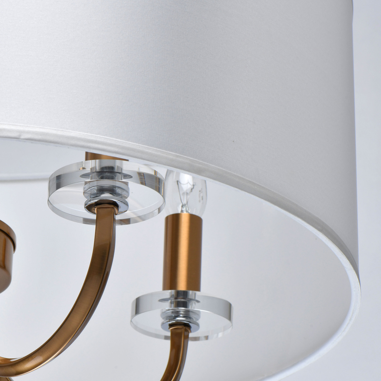 Основание/металл/цвет бронзы Декор/прозрачный массив хрусталя Абажур/текстиль/белыйТехнология производства