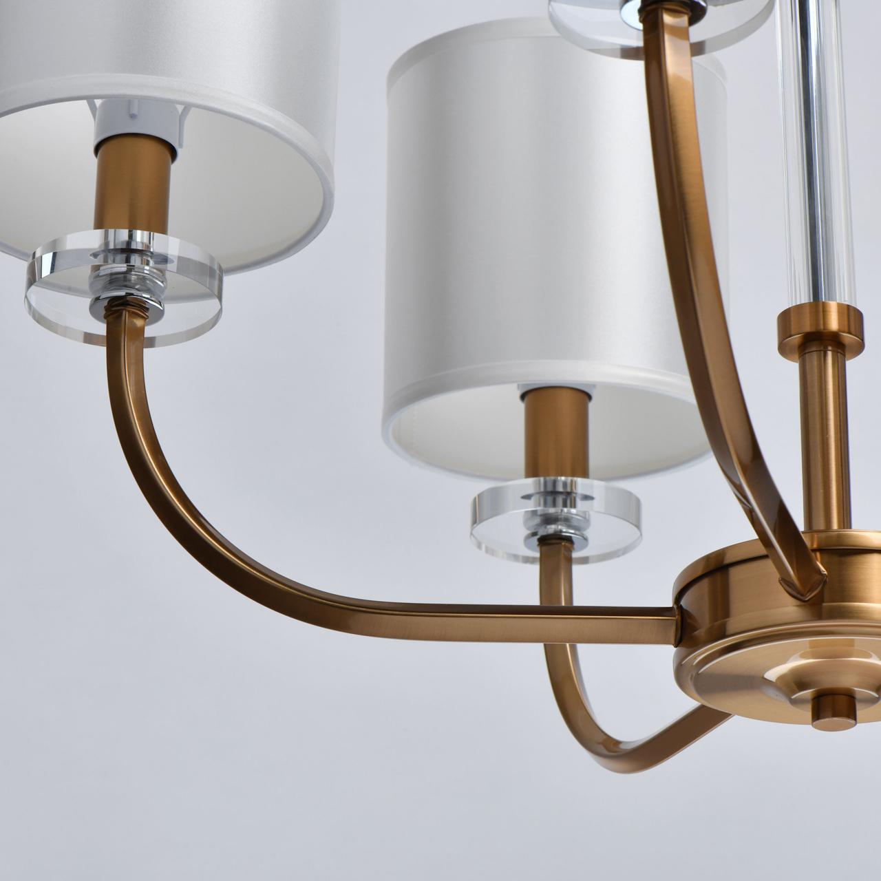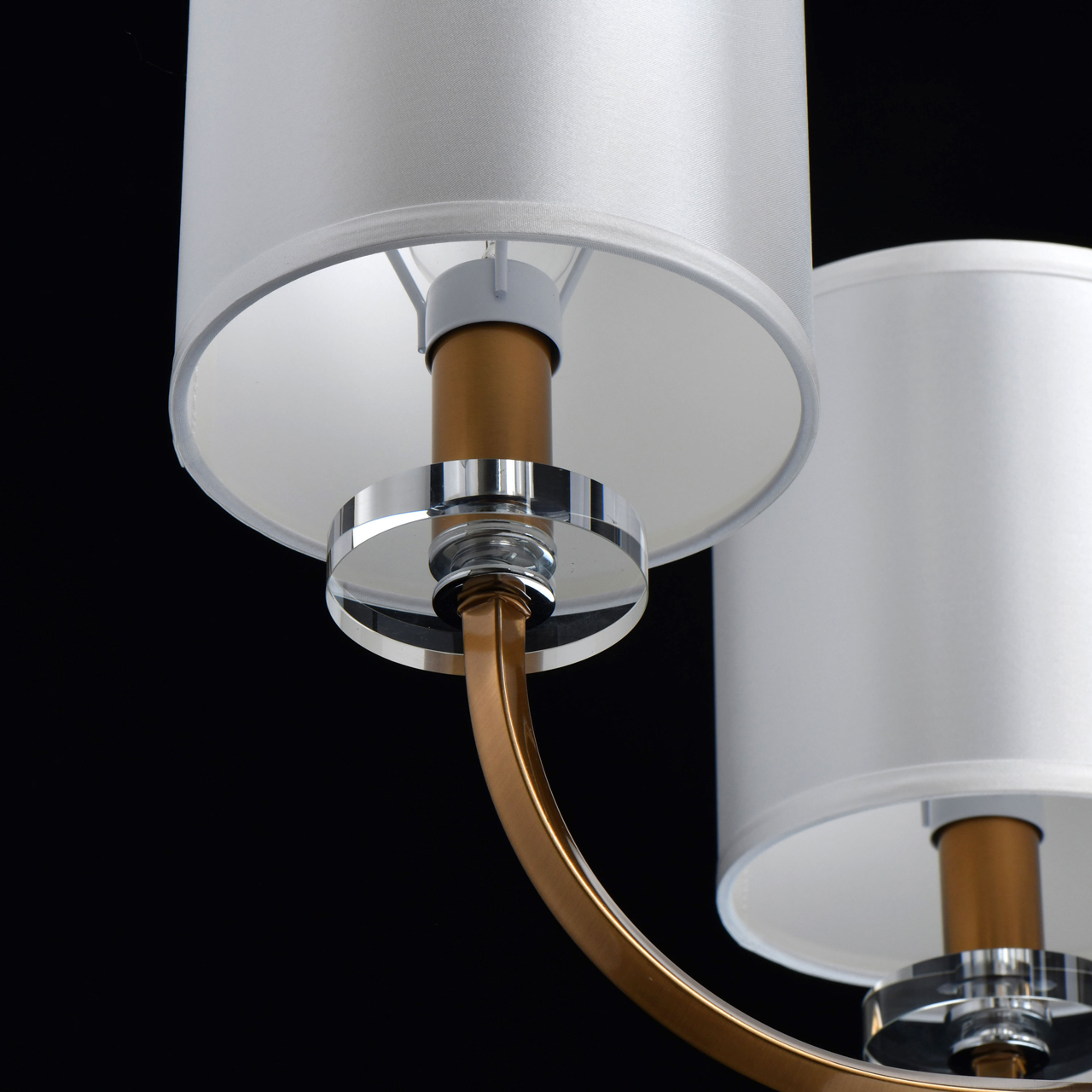 Основание светильника выполнено из металла и гальванизировано в цвет бронзы. Абажуры с термостойким акрилом внутри и текстилем с рисовым рисунком белого цвета снаружи. Абажуры отделаны кантом и прошиты. Светильник декорирован прозрачным массивом хрусталя.Тип помещения