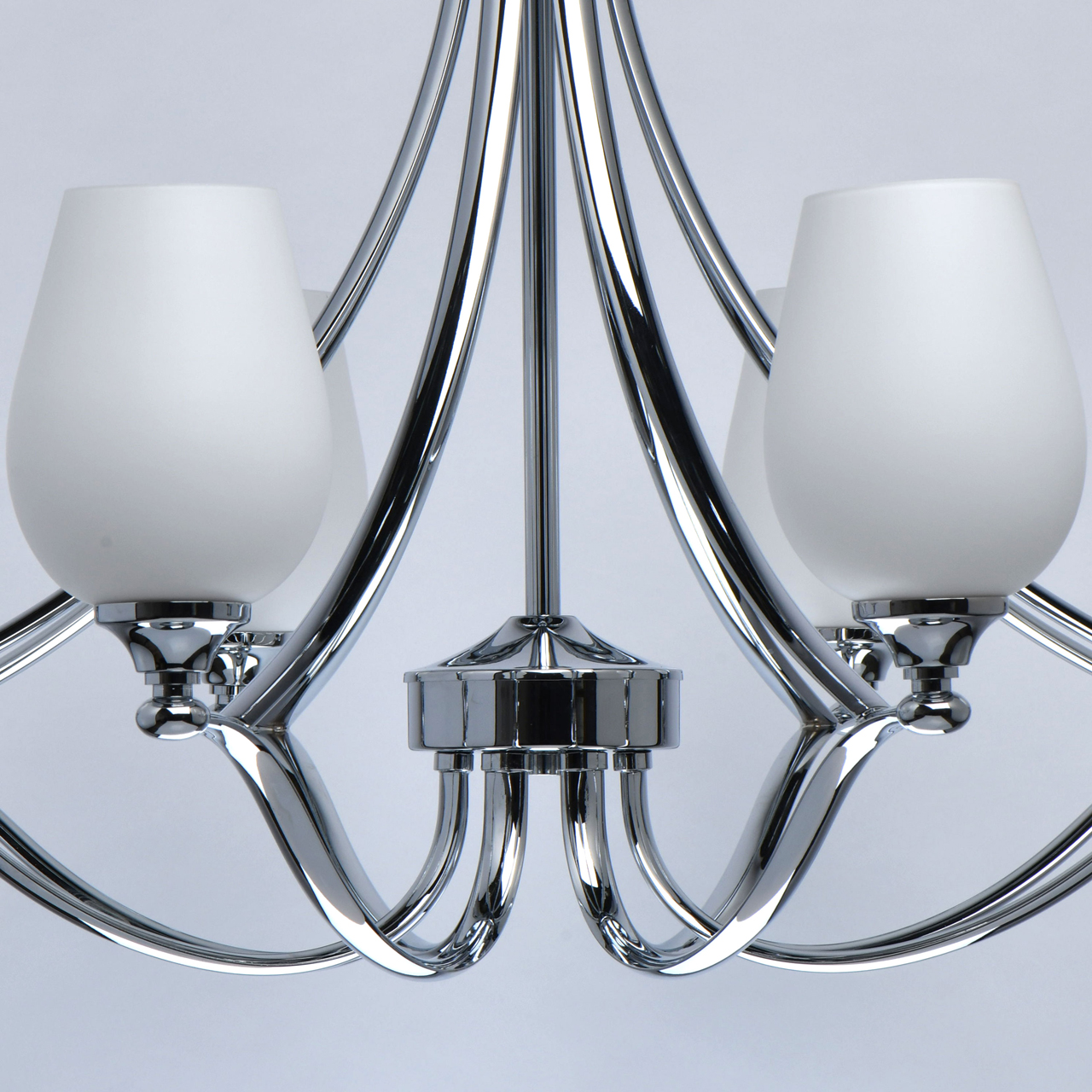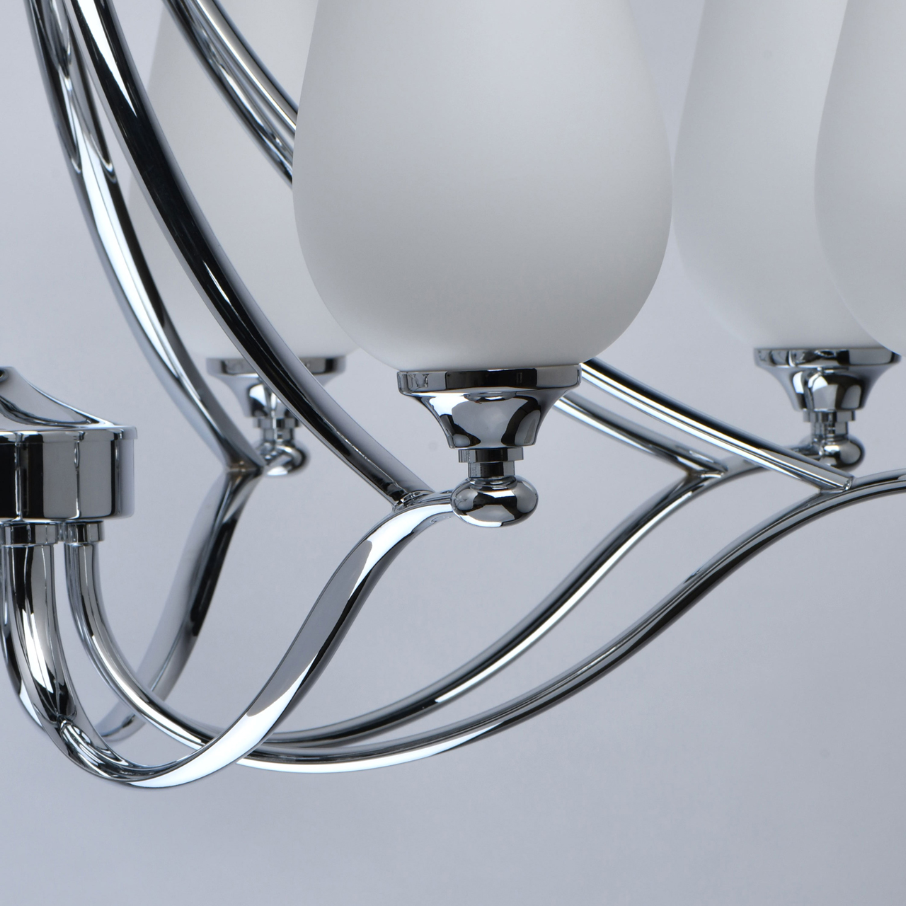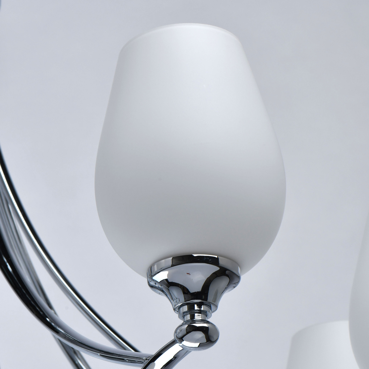 Основание светильника выполнено из металла и гальванизировано в цвет блестящего хрома. Плафоны из опалового стекла выдуваются в форму и обработаны по технологии травления.Тип помещения