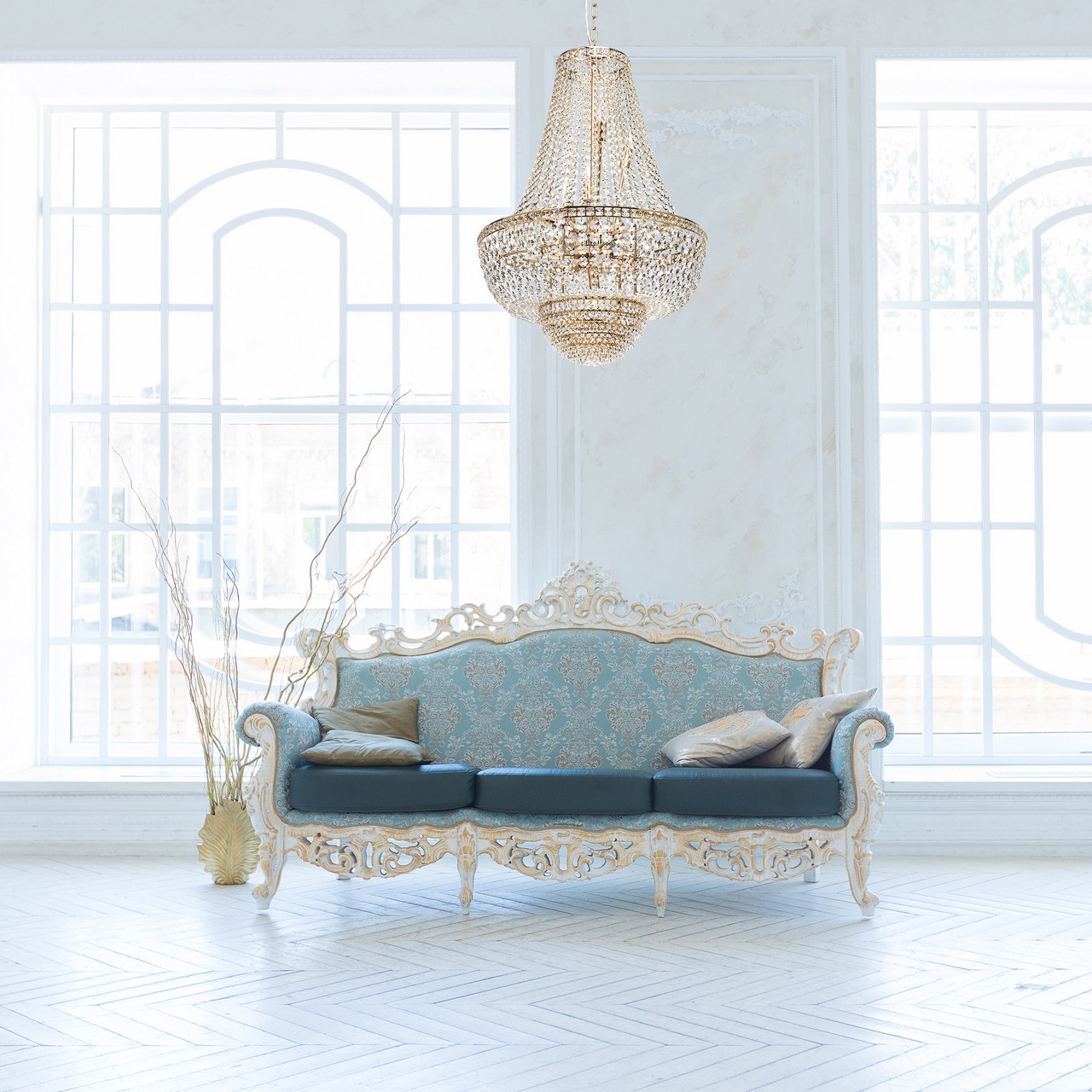 Основание светильника выполнено из металла и гальванизировано в цвет золота. Светильник декорирован прозрачным хрусталем.Тип помещения