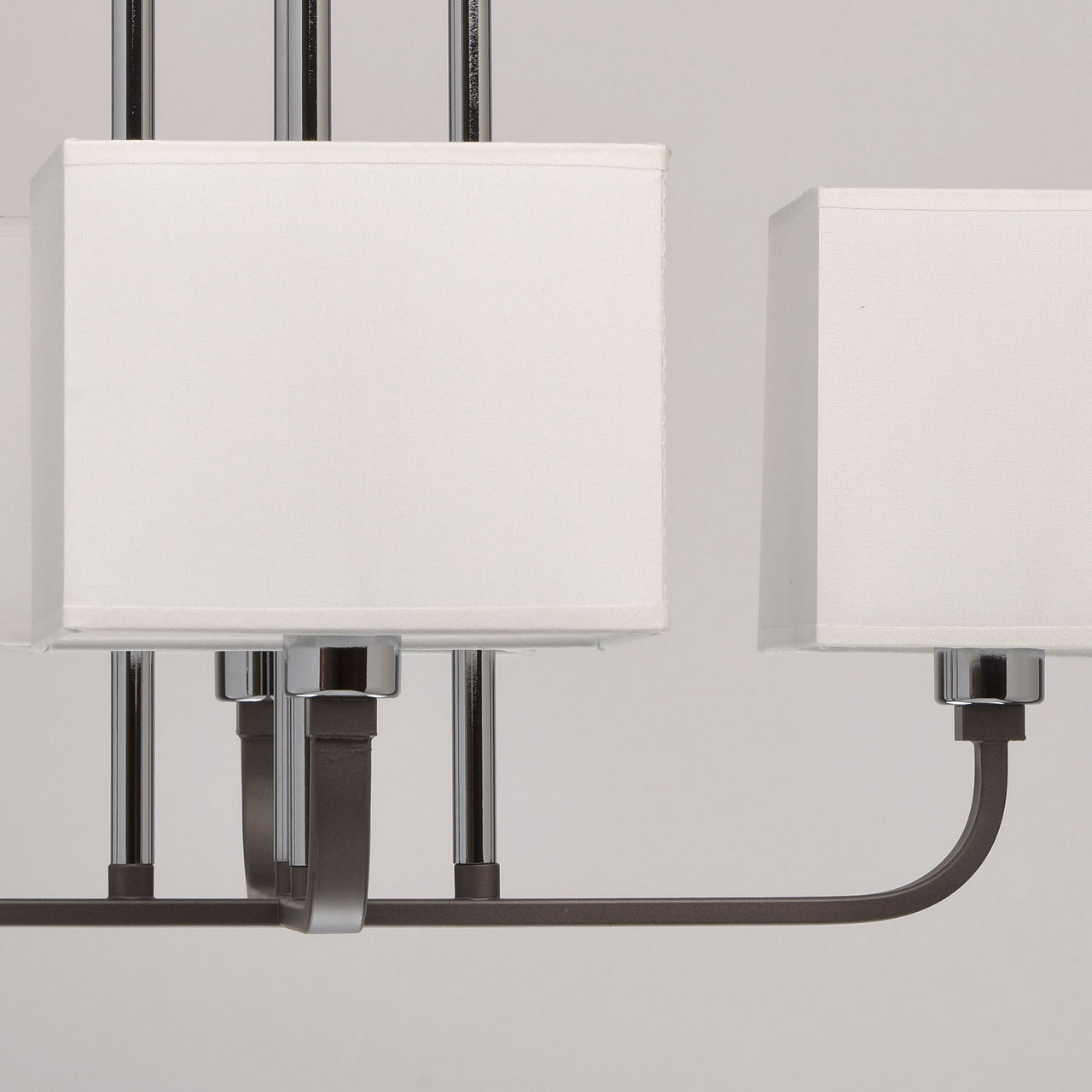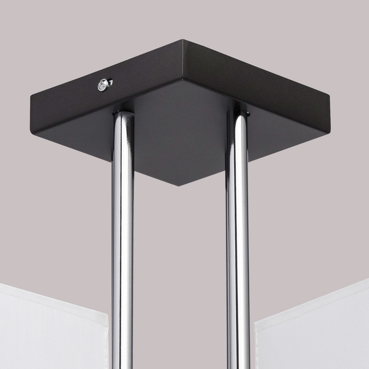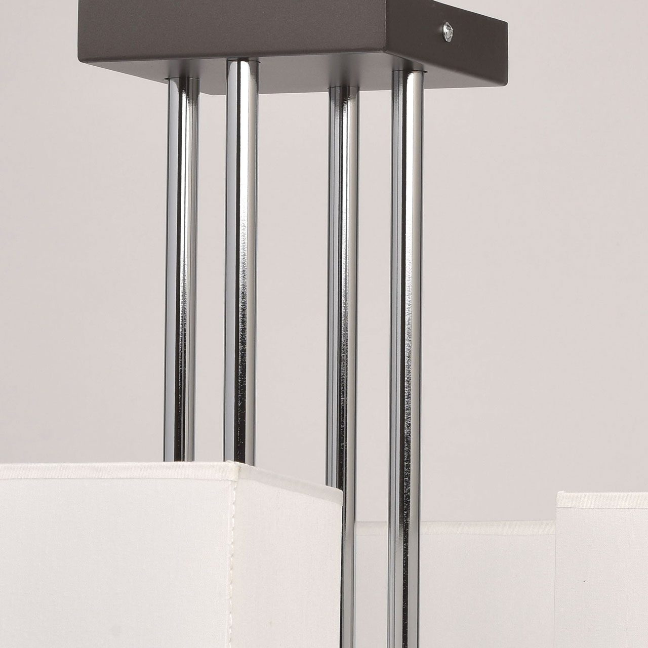 Смелые решения и строгая простота форм сочетаются в потолочной люстре из коллекции «Прато». Основание из металла матового графитового цвета гармонично дополнено хромированными стойками. Оригинальное пересечение рожков выгодно подчеркнуто тканевыми плафонами геометрически точной формы. Белый матовый оттенок, в котором выполнены плафоны, отлично смотрится на фоне основания. Сложно найти лучшее решение для современного интерьера!Преимущества модели