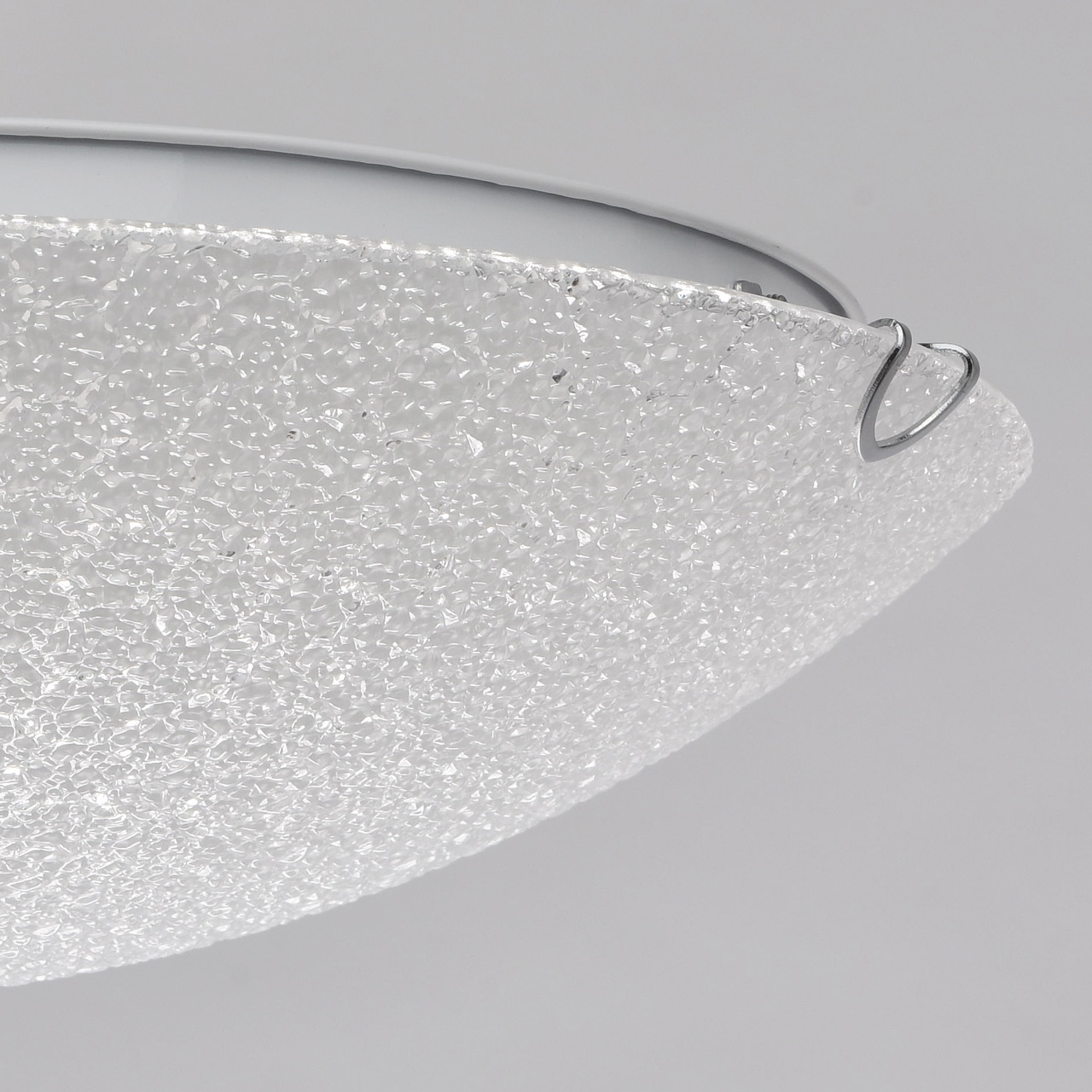 Металлическое основание белого цвета. Плафон - оплавленное стекло с рисунком.Технология производства