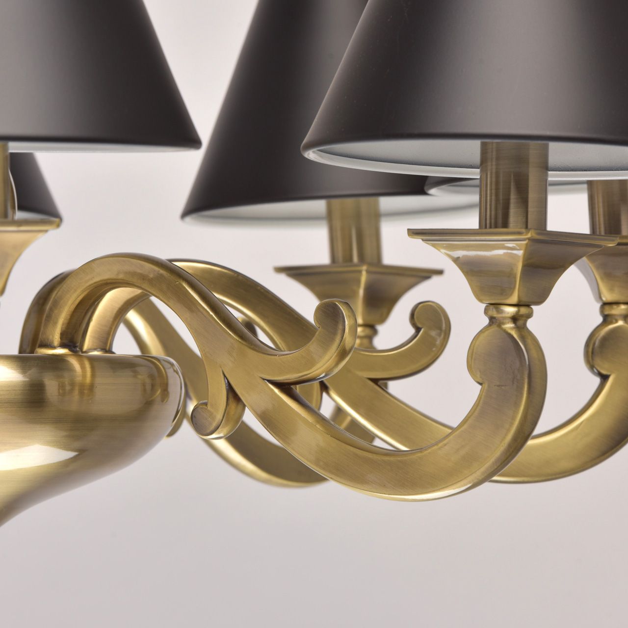 Металлическое основание цвета античной бронзы. Текстильные абажуры черного цвета.Технология производства