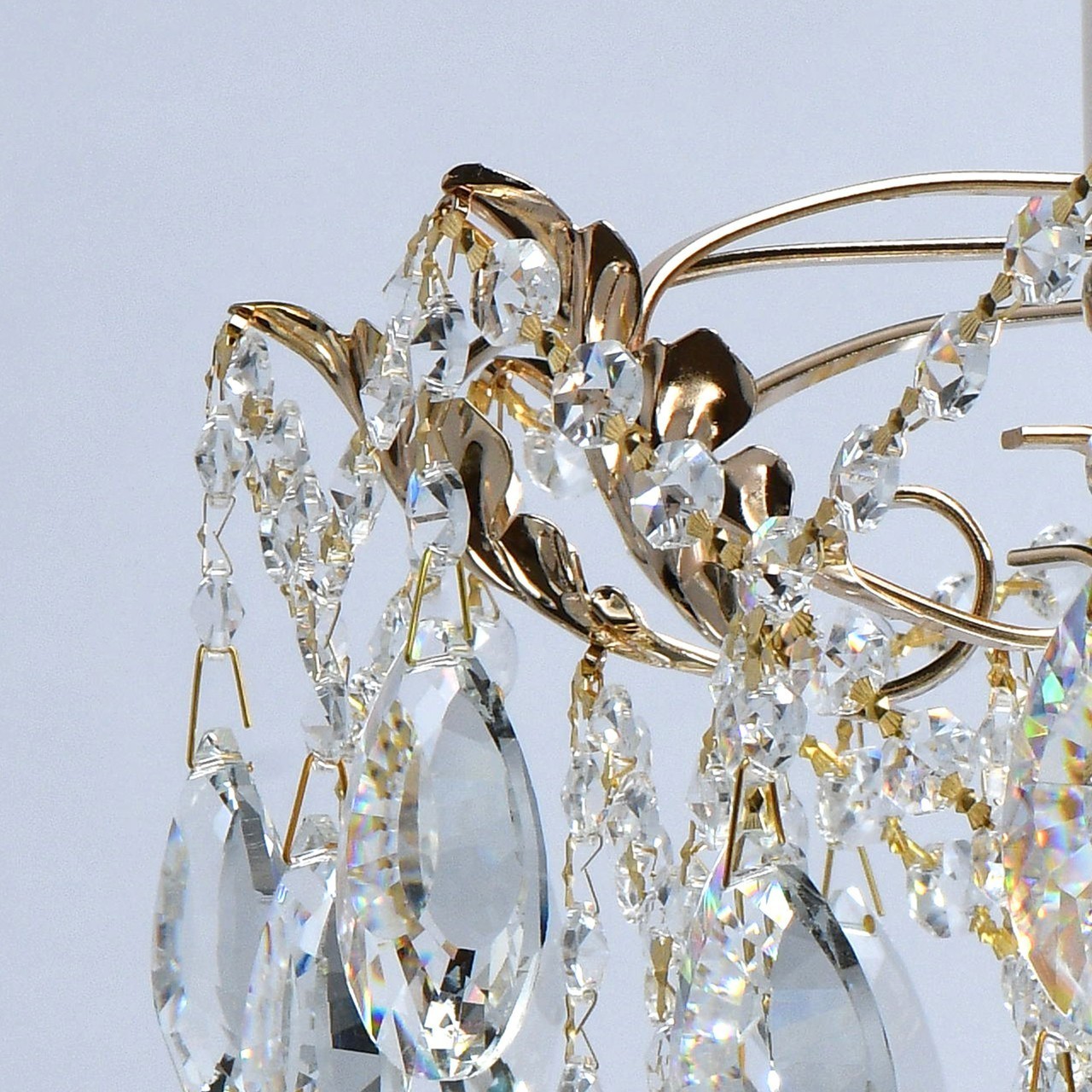 Прозрачный хрусталь сложной огранки создает игру света. Классический золотой цвет основания с металлическими декоративными элементами всегда в тренде В комплекте ПДУ с тремя режимами управления, пульт не требует сопряжения. Режимы независимой работы ламп накаливания, светодиодов или комбинированного режима удобны. Полноценное освещение интерьера в каждом режиме благодаря высокой мощности ламп. Компактные размеры высоты для хрустальных моделей редкостьСтилевые решения интерьера