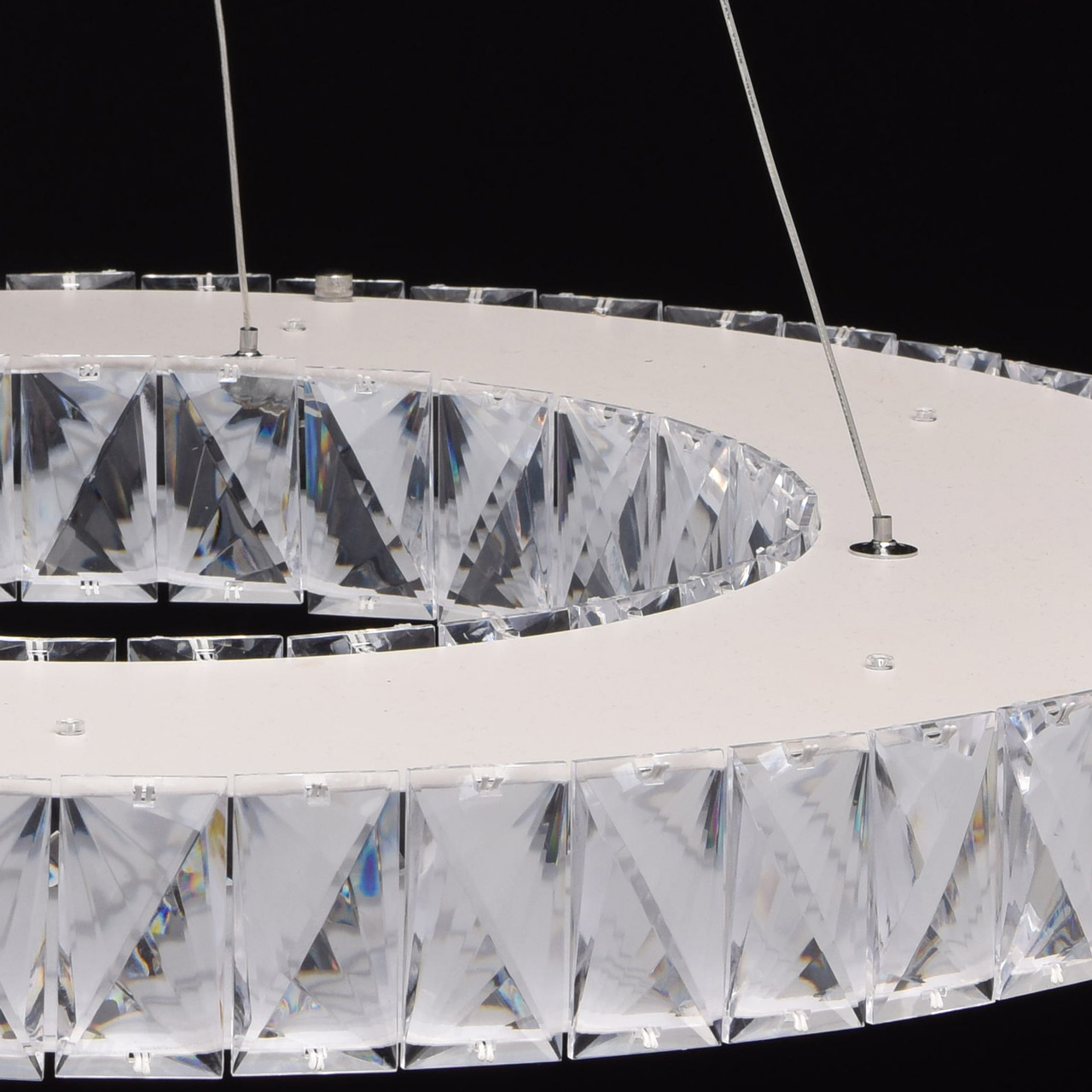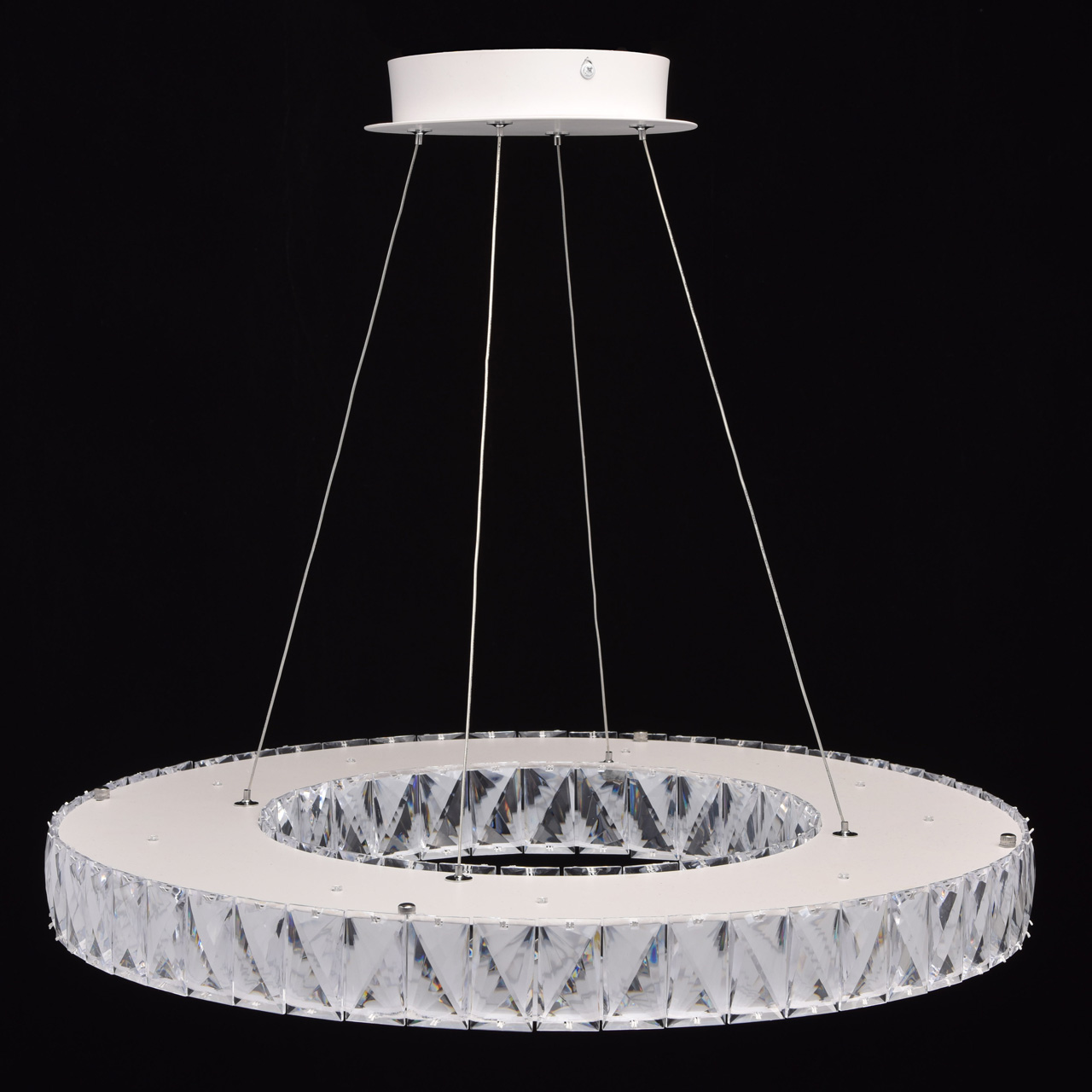 Люстра из коллекции «Фризанте» радует изящным сочетанием богатой отделки и минималистичного дизайна. Белое металлическое основание дополнено широким плафоном из прозрачного акрила. Источники света-светодиоды скрыты под рассеивателем из матового стекла с геометрическим рисунком в виде кругов. На этом фоне особенно эффектно смотрится прозрачный декор из акрила по всей боковой поверхности светильника.Преимущества модели