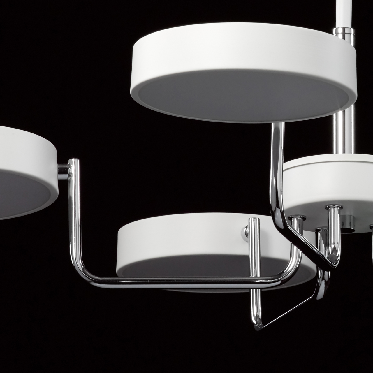 Основание светильника выполнено из металла и окрашено в белый цвет. Отдельные элементы основания гальванизированы в цвет хрома. Светодиодные источники света типа SMD board закрыты белым матовым акрилом.Тип помещения
