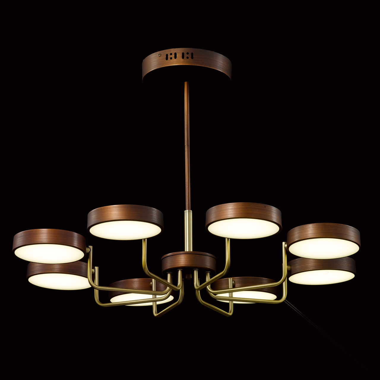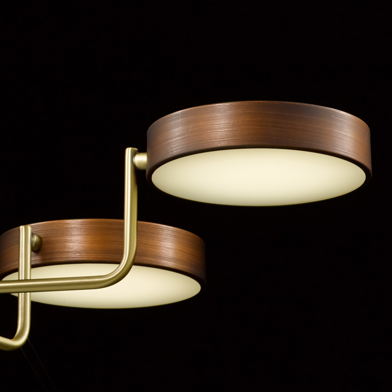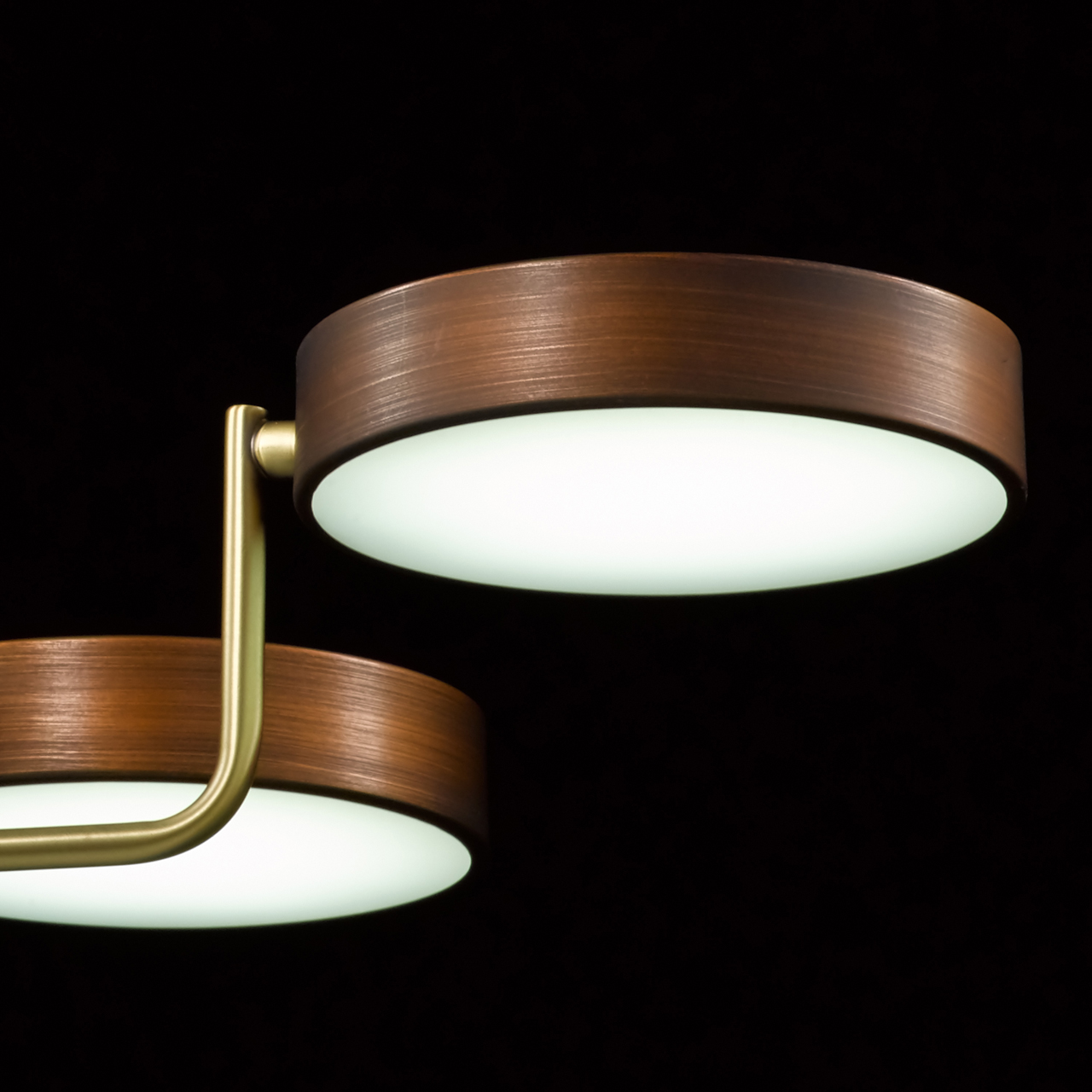 Основание светильника выполнено из металла и окрашено в коричневый цвет. Отдельные элементы основания гальванизированы в цвет бронзы. Светодиодные источники света типа SMD board закрыты белым матовым акрилом.Тип помещения