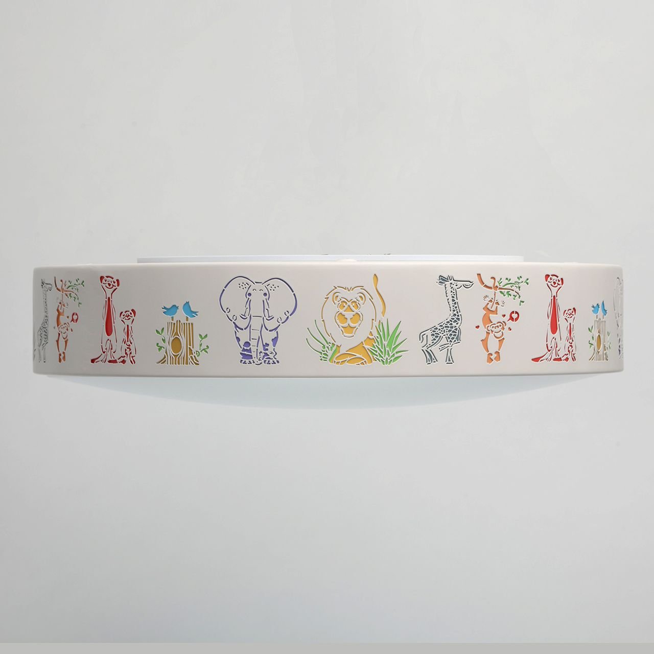 Очень стильный и современный светильник для детской комнаты обязательно понравится любому малышу. Основание и плафон из металла выполнены в белом цвете и декорированы акриловой вставкой с изображением рисунков в детской тематике. Благодаря тому, что плафон имеет перфорацию, в темноте эти рисунки красиво подсвечиваются. Источники света-светодиоды скрыты под вставкой из матового акрила, благодаря чему свет получается более мягким и рассеяным.Преимущества модели