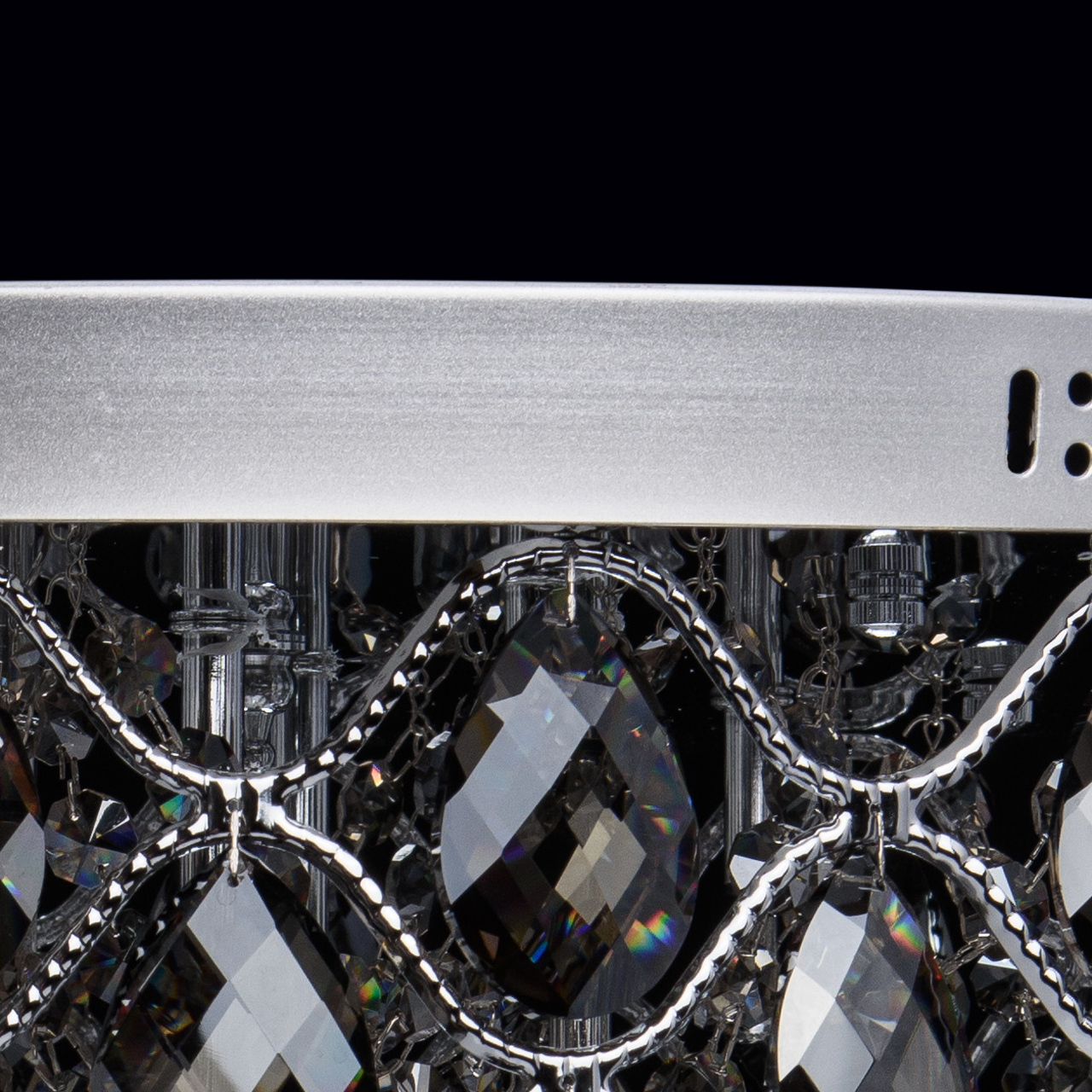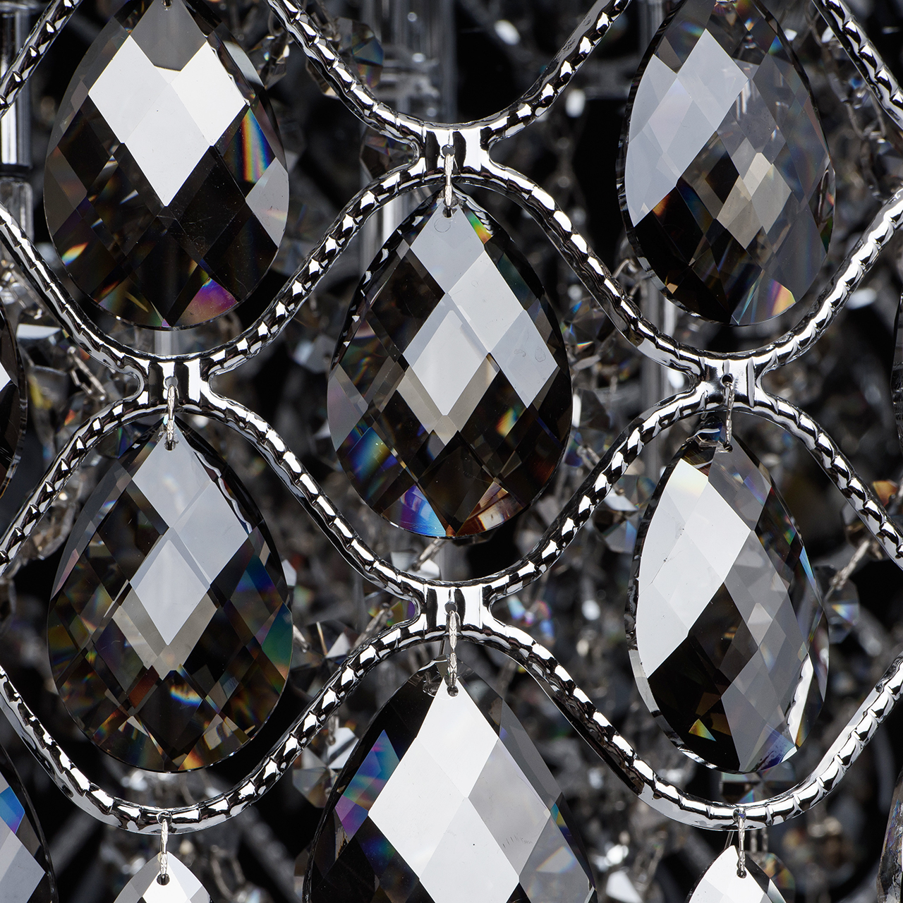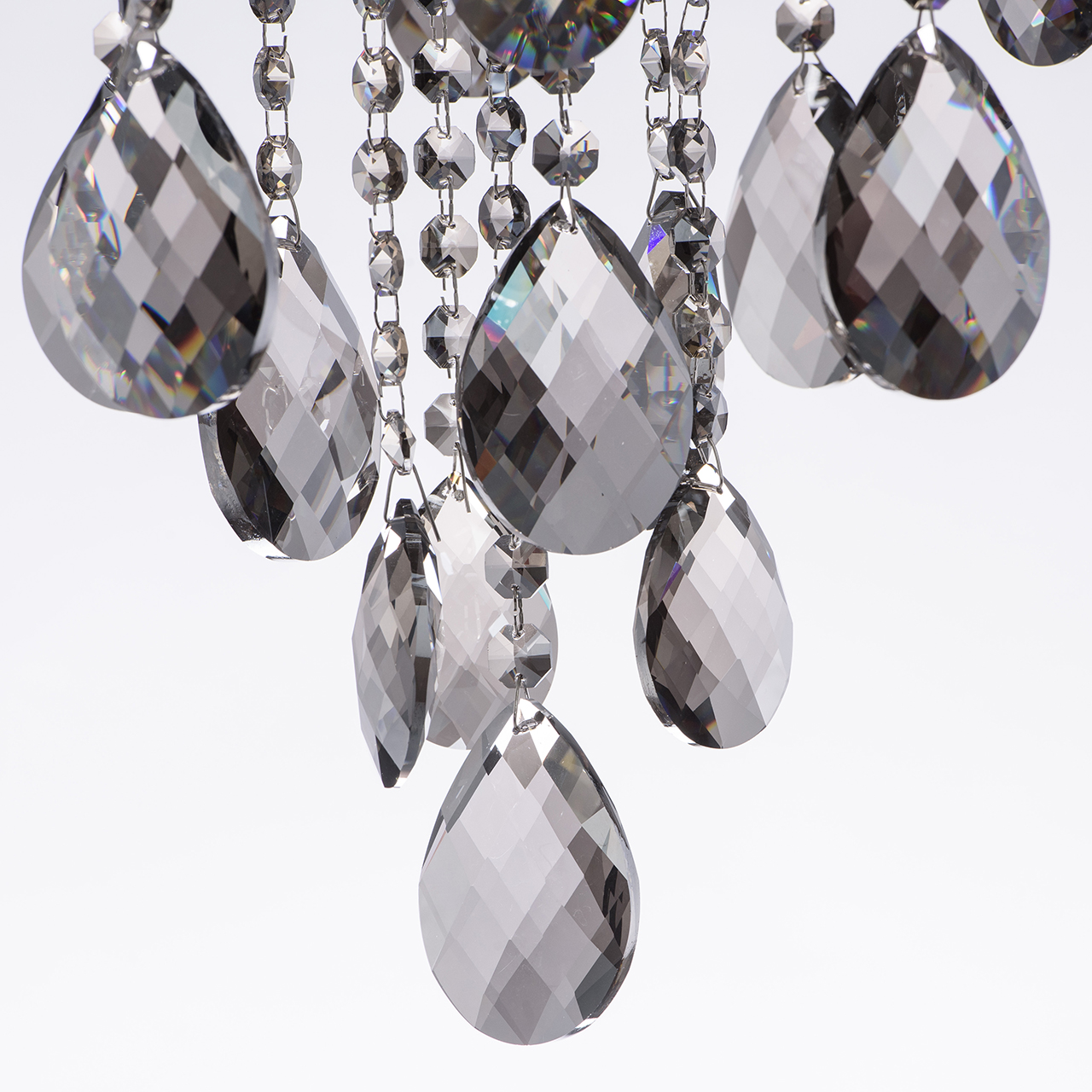 Металлическое основание цвета никеля, декоративные подвески из гальванизированного хрусталя дымчатого цвета.Технология производства