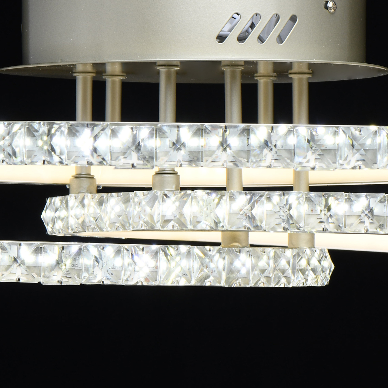 Основание светильника выполнено из металла и окрашено в цвет перламутрового серебра. Каркас плафонов выполнен из сплава алюминия. Светодиодные источники света типа SMD Strip закрыты прозрачным хрусталем формы квадрат.Тип помещения