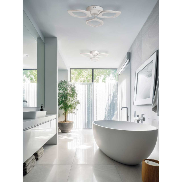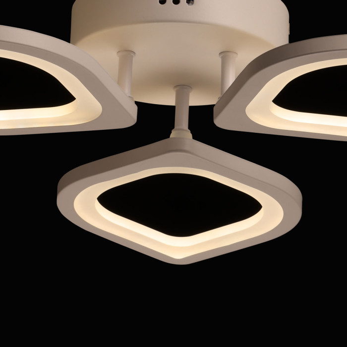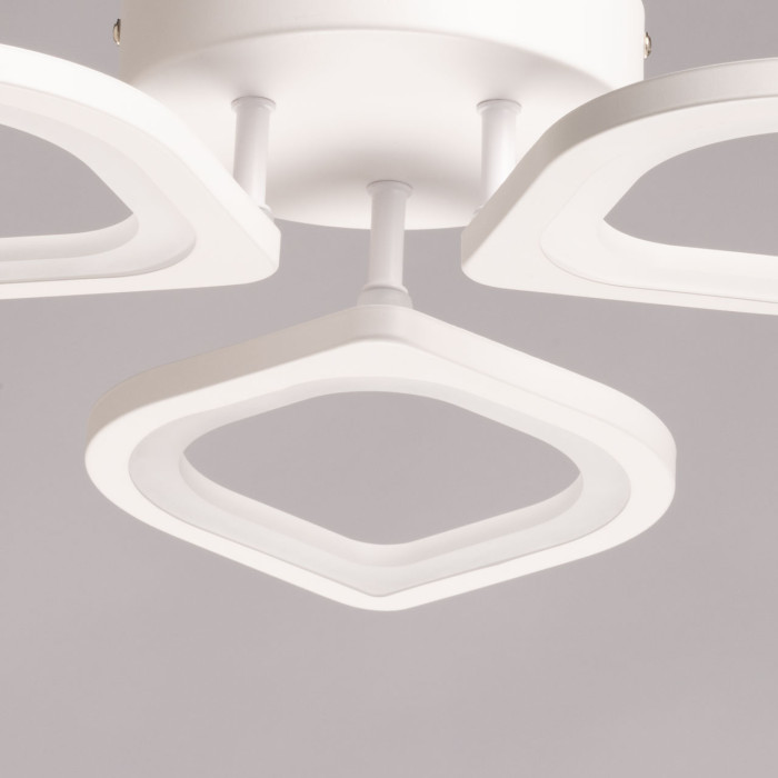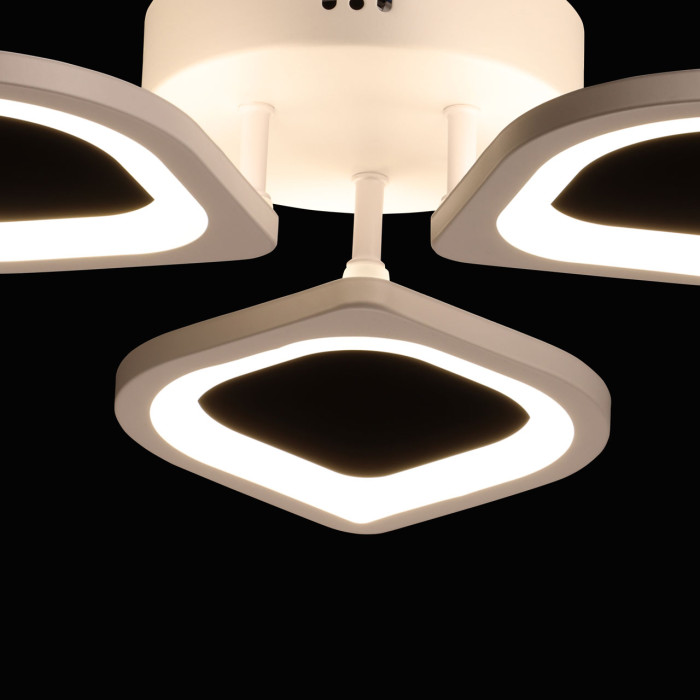 Многорежимность с изменением цветовой температуры от 3000К до 6500К и яркости света является элементом светодизайна и позволяет подобрать комфортную температуру света. Качественные светодиоды и корпус из сплава алюминия обеспечивают яркое освещение и долгий срок службы. Плавно изогнутые плафоны придают потолочной люстре элегантности и, благодаря им, светильник становится арт объектом. Наличие ПДУ обеспечивает комфортное переключение режимов освещения. Компактный светильник для стандартной высоты потолка. Светодиодные источники света экономичны и безопасны.Металлическое основание потолочной люстры окрашено в белый цвет. Корпус плафона выполнен из сплава алюминия с цинком и окрашен в цвет основания. Светодиодный источник света закрыт матовым акрилом.