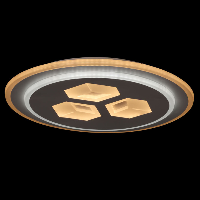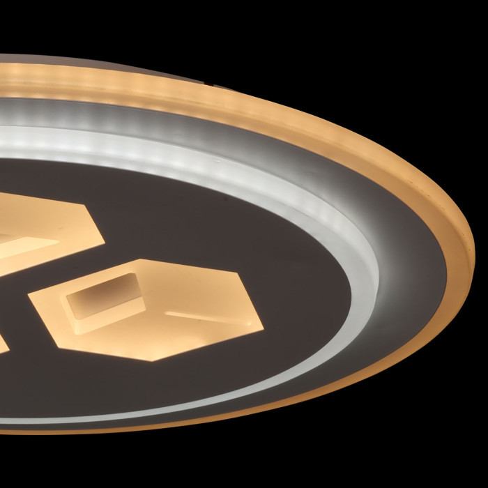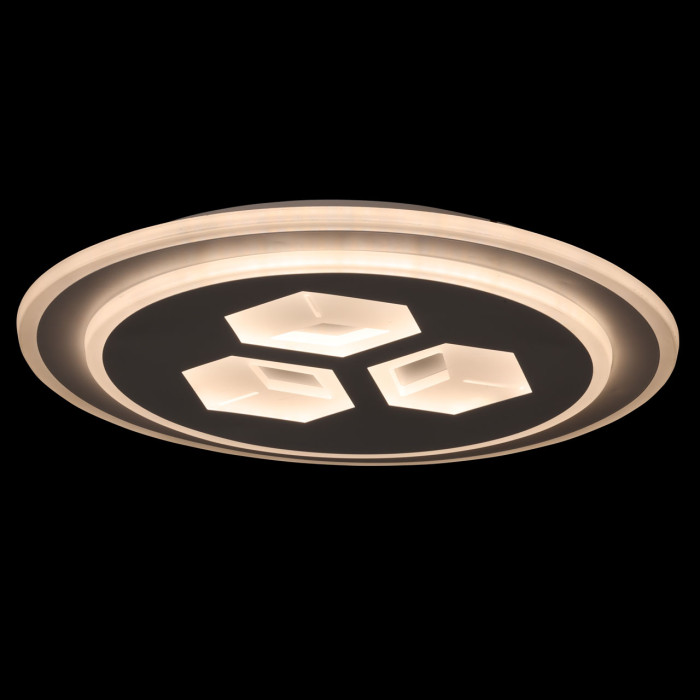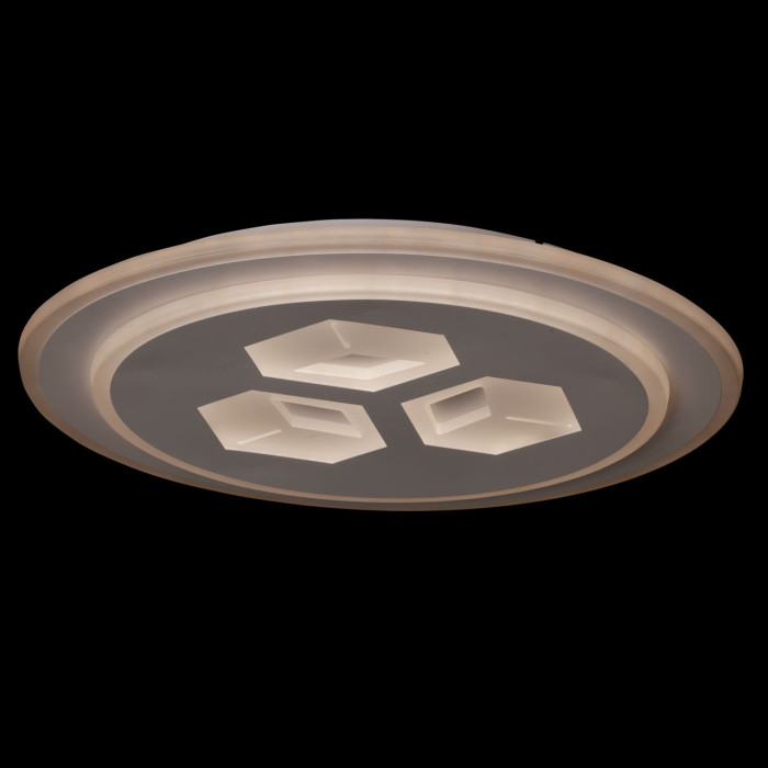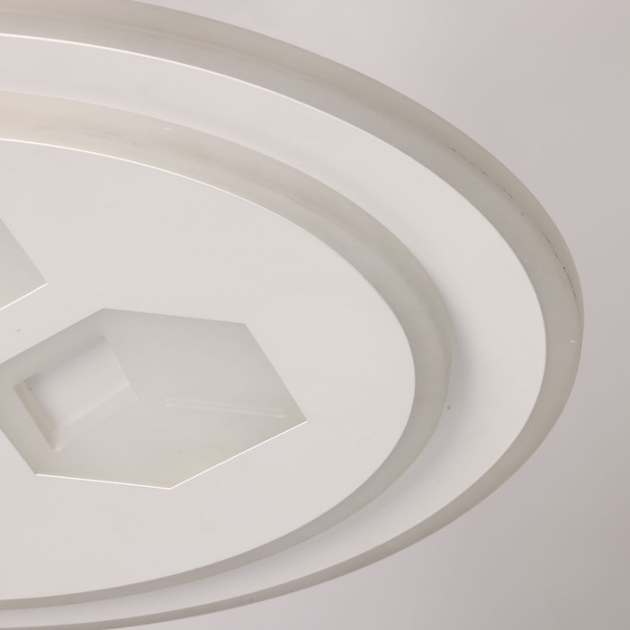 Универсальный белый цвет прекрасно подойдет к любому цветовому решению интерьера. Многорежимность с изменением цветовой температуры от 3000К до 6500К является элементом светодизайна и позволяет подобрать комфортную температуру света. Качественные светодиоды и корпус из сплава алюминия обеспечивают яркое освещение и долгий срок службы. Прозрачный акрил выполнен с элементами 3D-эффекта благодаря чему светильник становится арт объектом. Наличие ПДУ обеспечивает комфортное переключение режимов освещения. Компактный светильник для стандартной высоты потолка. Светодиодные источники света экономичны и безопасны.Металлическое основание потолочной люстры окрашено в белый цвет. Корпус плафона выполнен из сплава алюминия с цинком и окрашен в цвет основания. Светодиодные источники света закрыты матовым акрилом с 3D-эффектом.