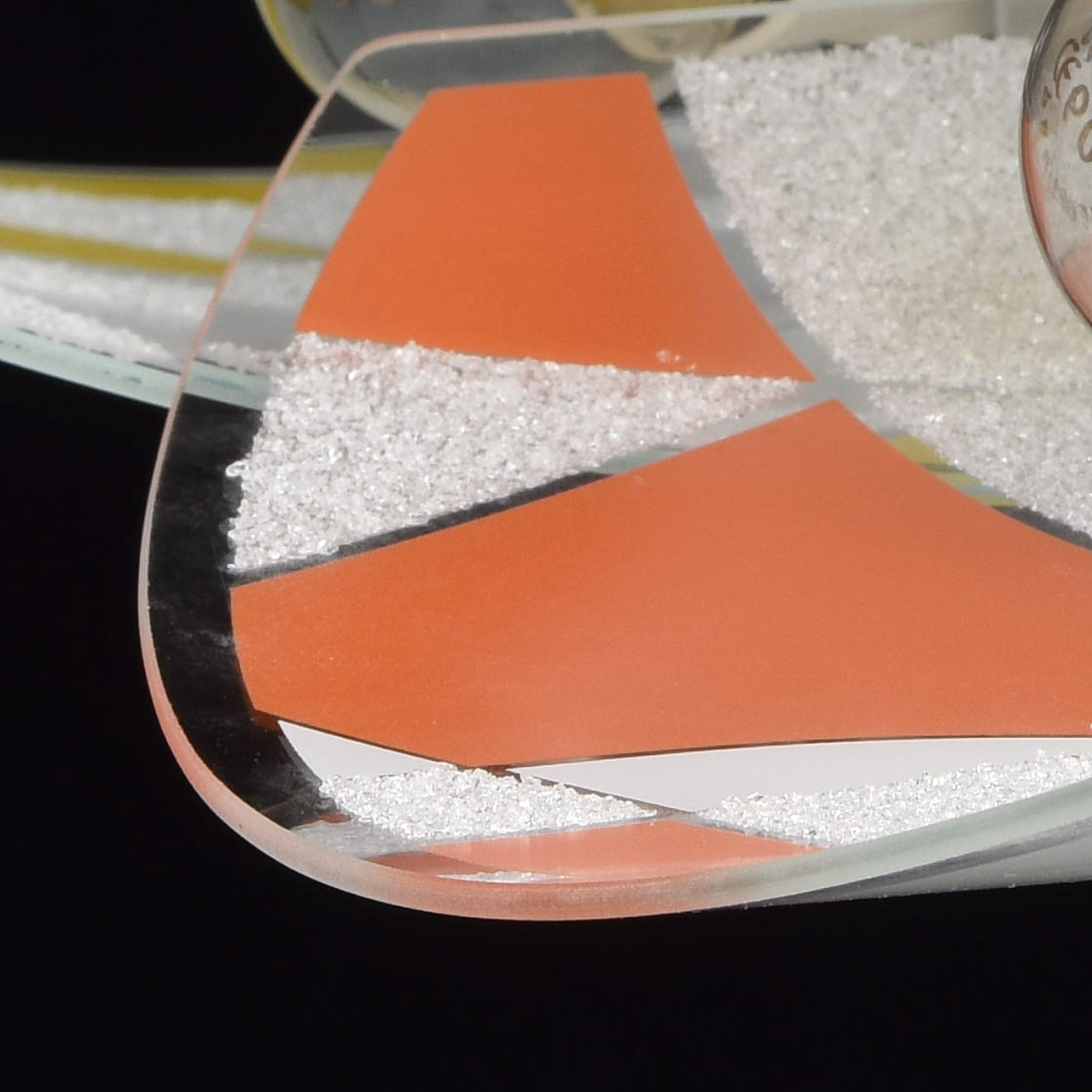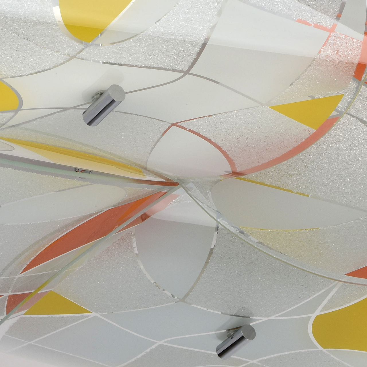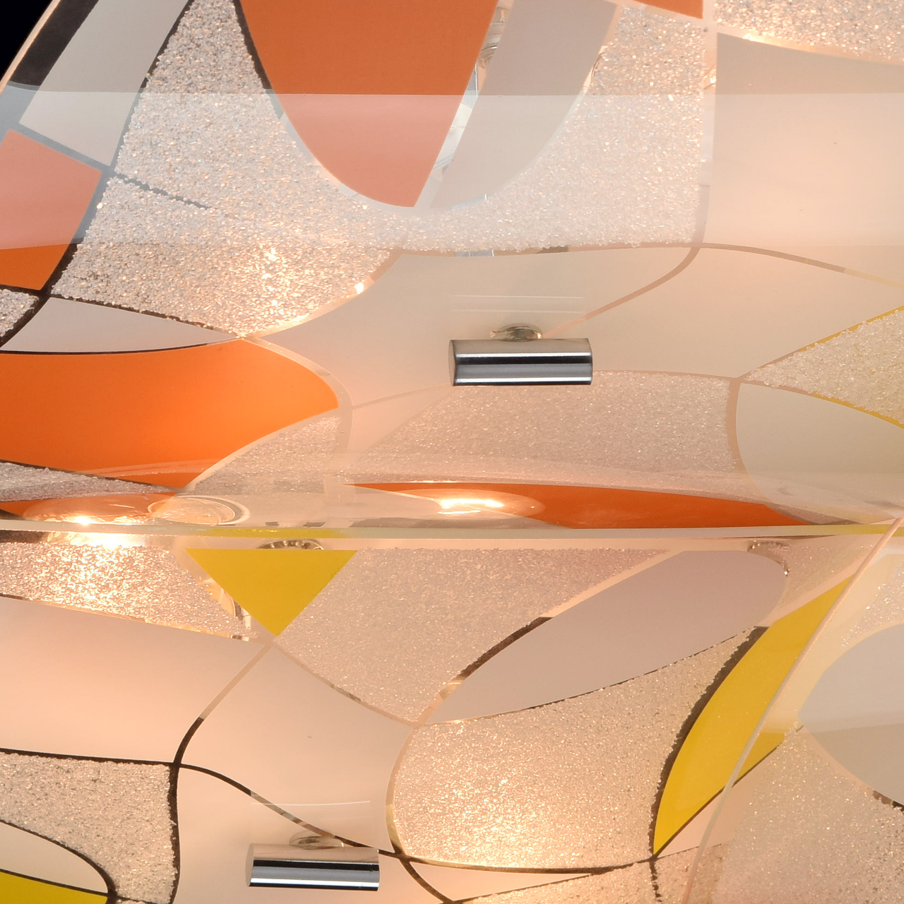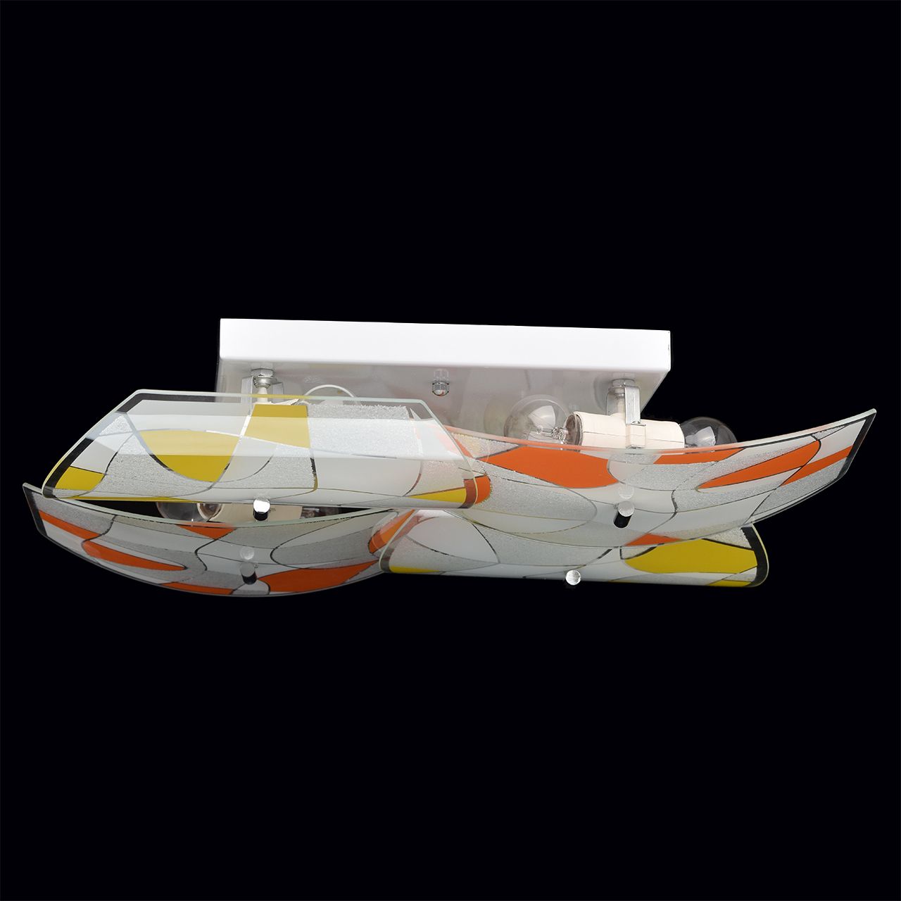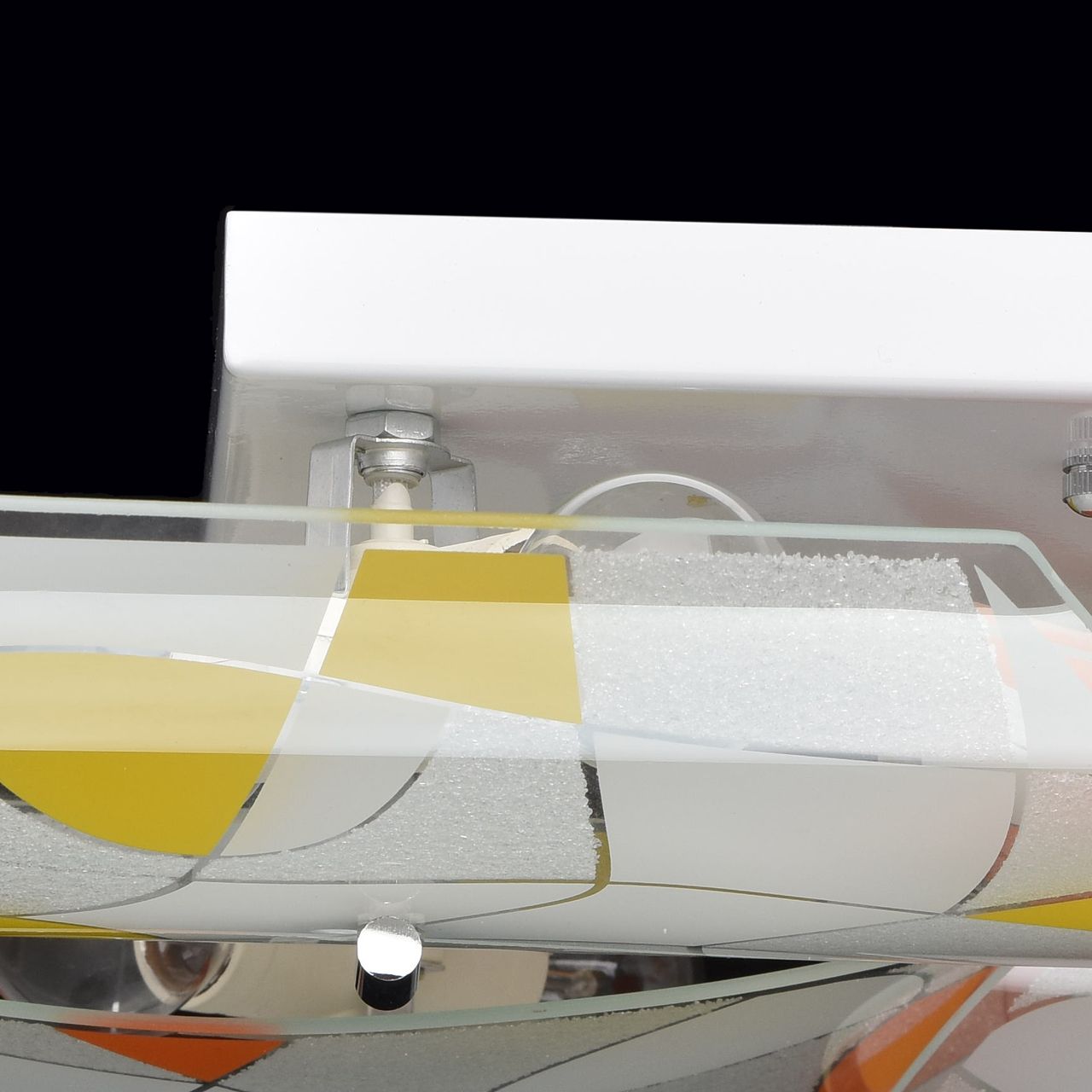 Основание светильника выполнено из сплава металла и окрашено в белый цвет. Цветные пластины плафона выполнены из стекла. Плафоны окрашены по трафарету и декорированы стеклянной крошкой по трафарету.Тип помещения