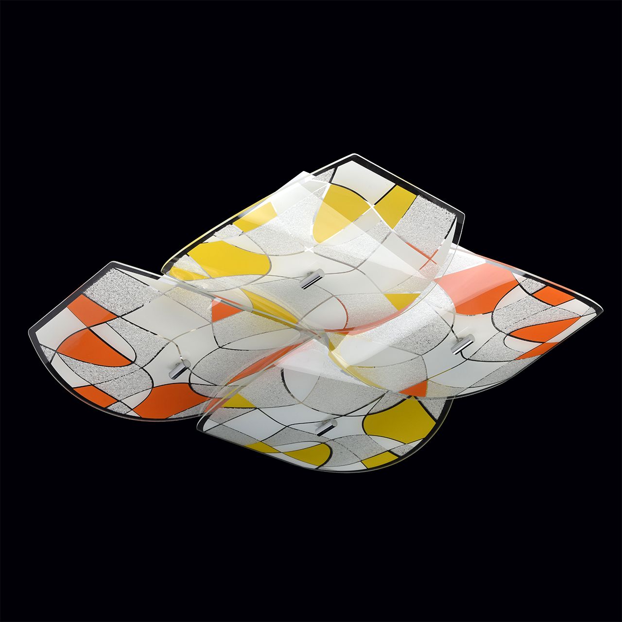 Оригинальный потолочный светильник «Радуга» подойдет для любого помещения. Четыре стеклянных плафона крепятся на металлическом основании цвета хрома. Они декорированы желто-белой и оранжево-белой мозаикой самых теплых оттенков, выглядят очень живо и поднимают настроение. Свет, преломляясь в этой мозаике, приобретает уютный мягкий оттенок. «Радуга» добавит в интерьер нотки позитива и домашнего тепла. Рекомендуемая площадь освещения 24 кв.м.Преимущества модели