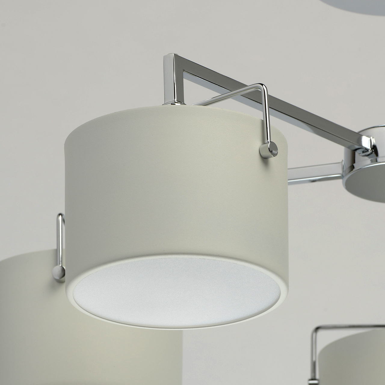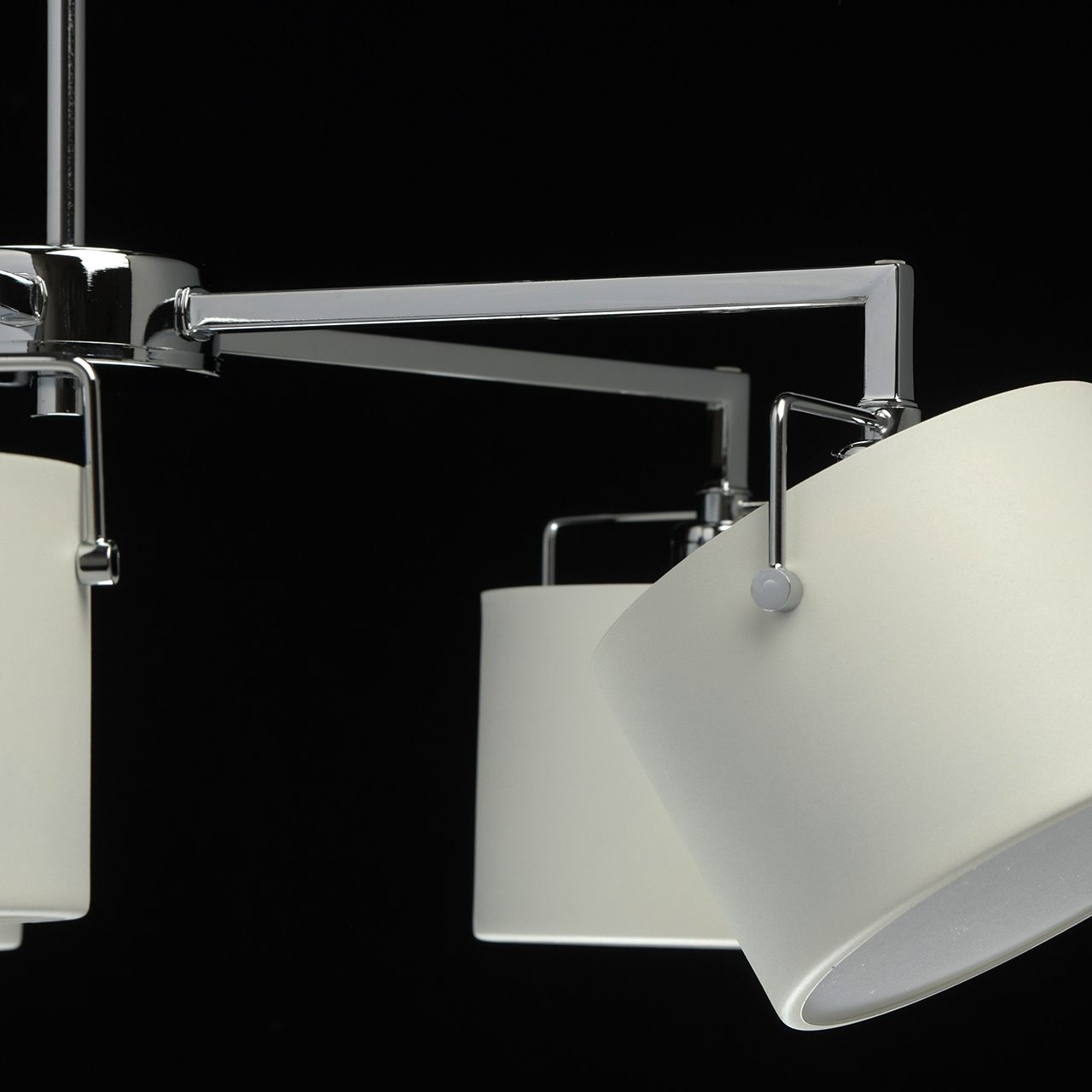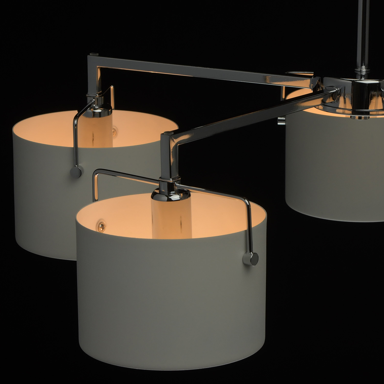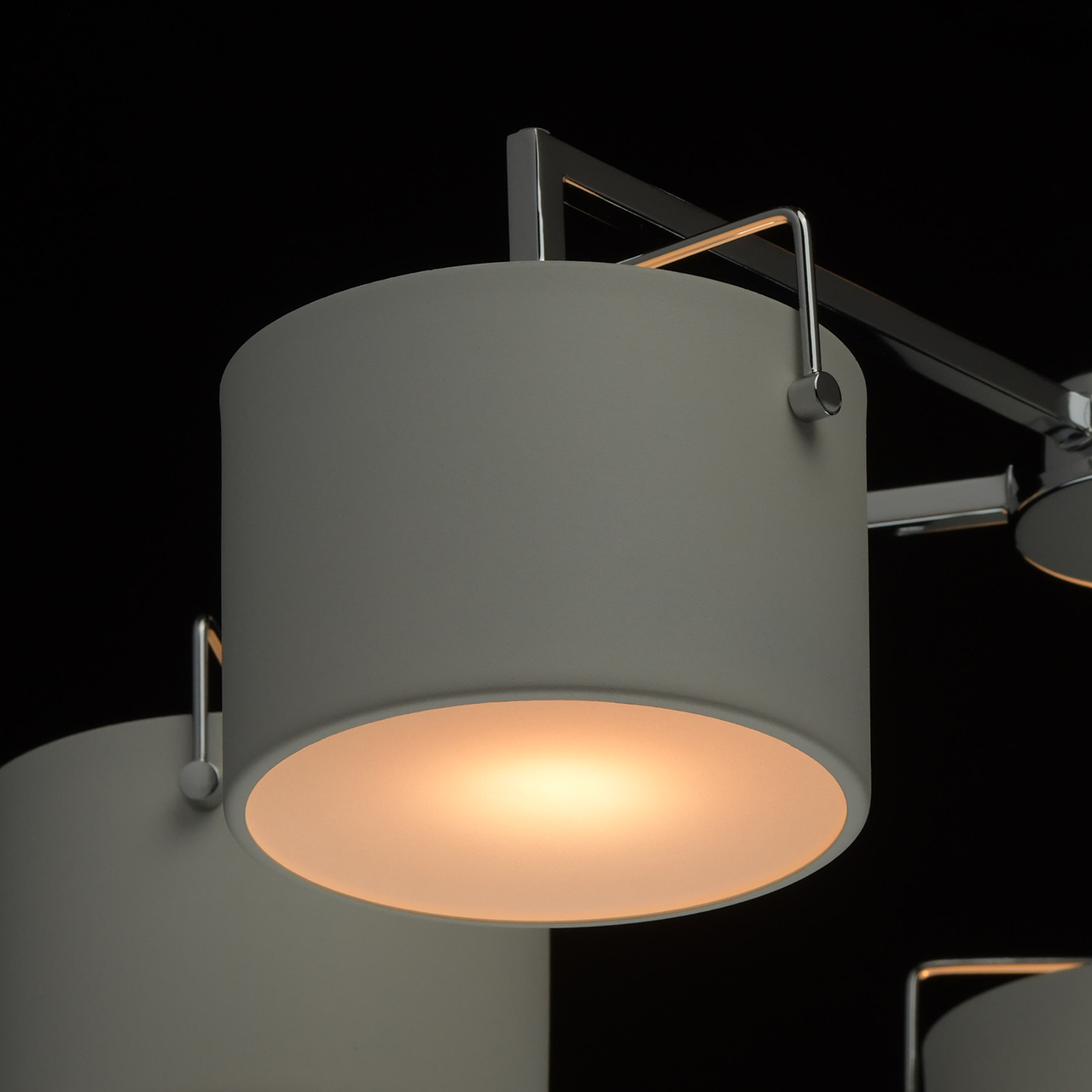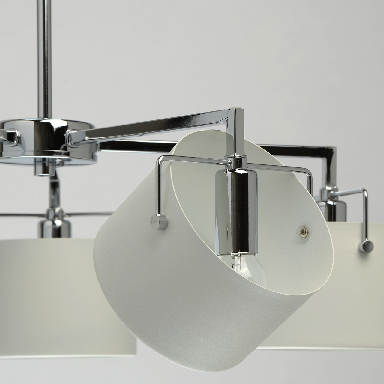 Основание светильника выполнено из металла и гальванизировано в цвет хрома. Металлические плафоны обработаны по технологии порошкового окрашивания в белый цвет. Источники света закрыты белым матовым акрилом.Тип помещения
