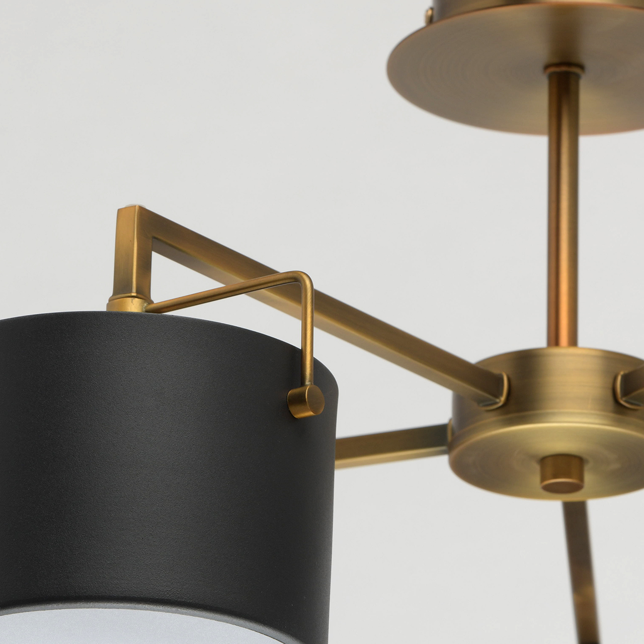 Металлическое основание цвета античной бронзы. Металлические плафоны черного цвета. Матовый акрил.Технология производства